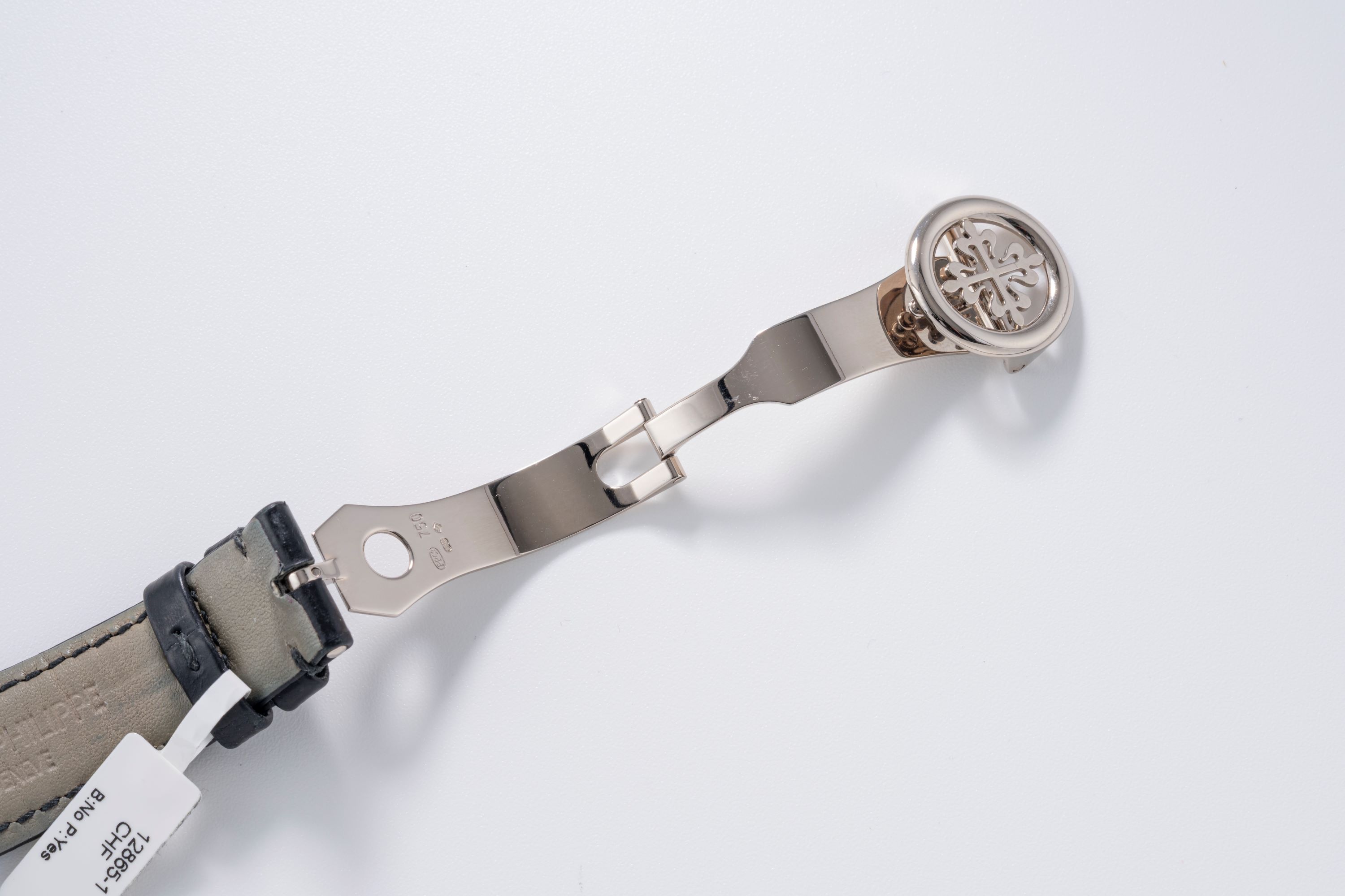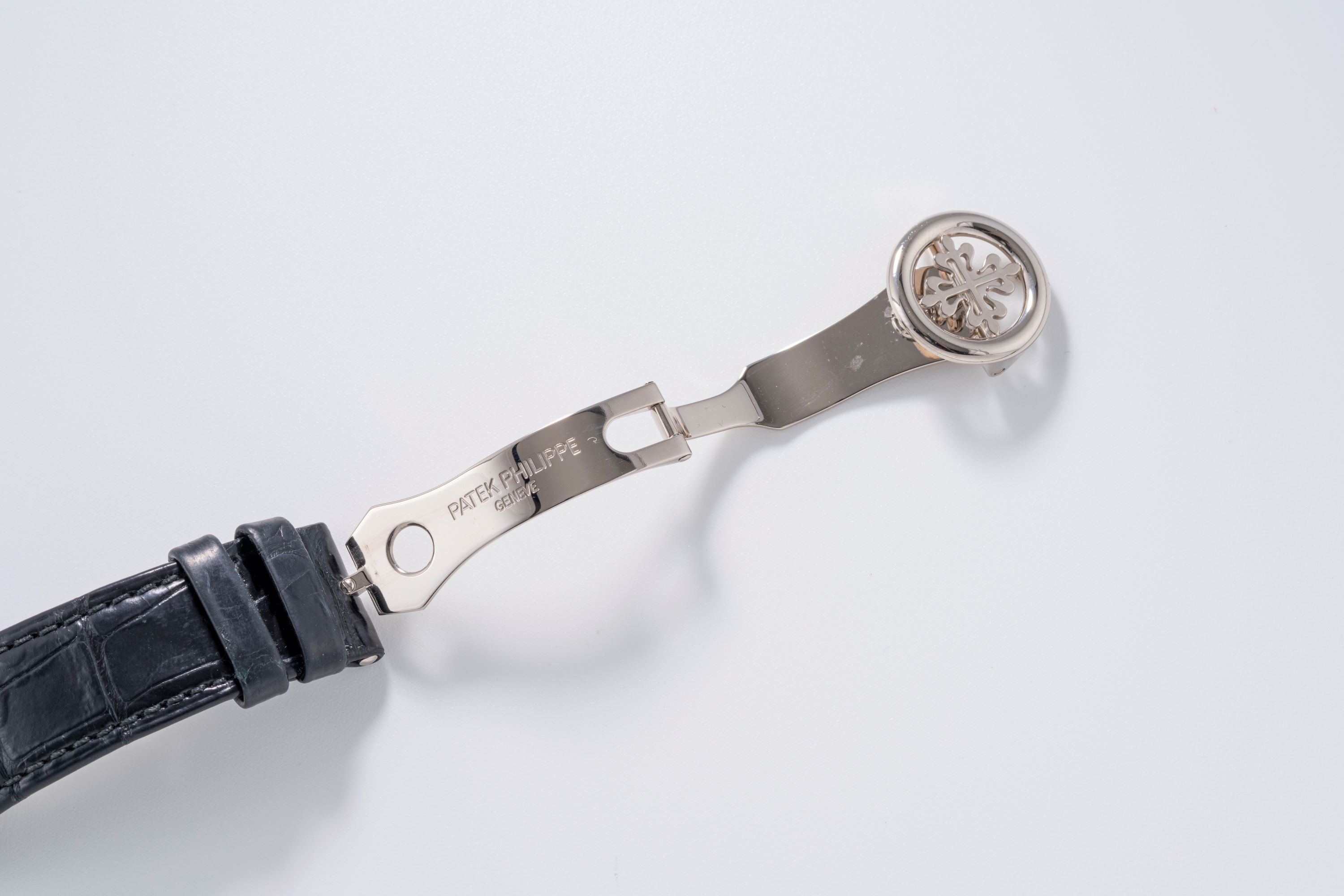 StrapBlack alligator leather strap with Patek Philippe deployant clasp in 18k white gold