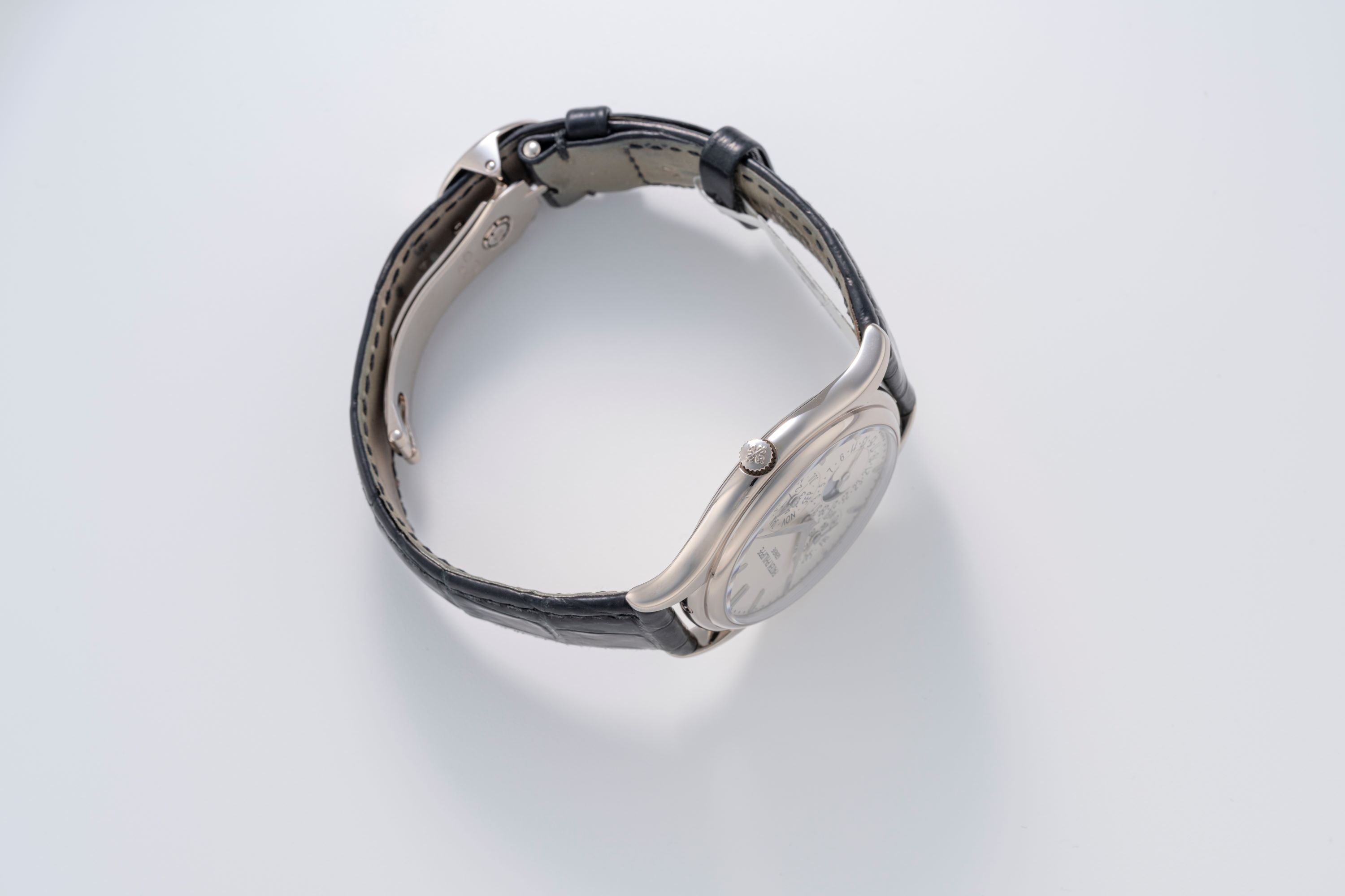 As the successor to the beloved Perpetual Calendar Ref. 3940, the 5140 has considerable expectations to match while receiving a subtle modernization overall. The case diameter was increased to 37mm, catering more towards 21st century taste, while the dial text was slightly increased in size for better legibility of the calendar complications. The proportions remain impeccably balanced, retaining the refinement and comfort that define Patek Philippe’s formal watches. The subtle silver dial enhances the aesthetic with superb legibility and a colour palette that complements the precious-metal case. Beneath the dial, the 5140G is powered by Patek’s automatic micro-rotor Caliber 240 Q. Its ultrathin architecture facilitates the slim case height and ensures the perpetual calendar mechanisms (day, date, month, leap year, moon-phase) are all packed in an extremely slim profile.