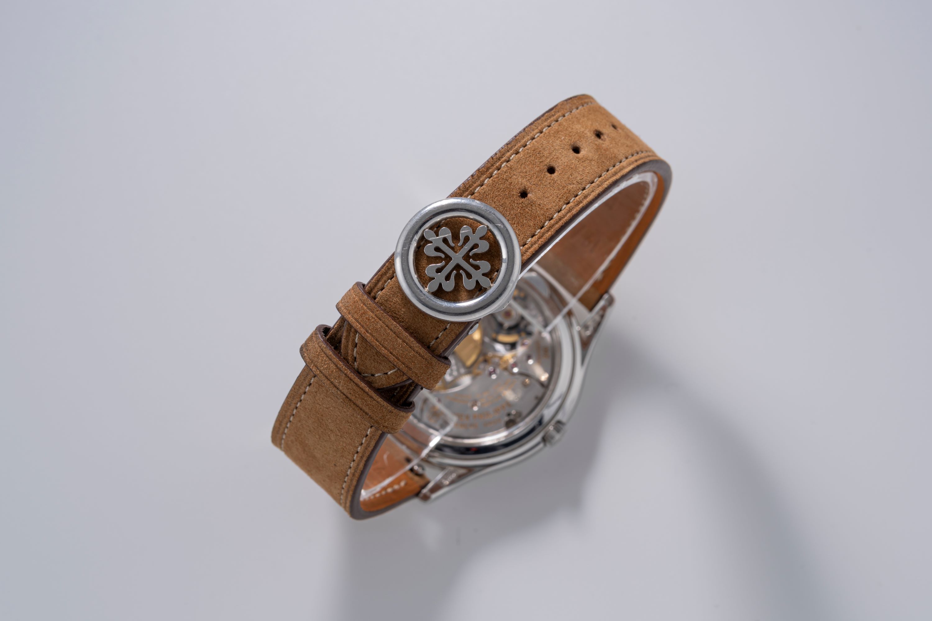 StrapBrown suede strap with Patek Philippe deployant clasp in platinum