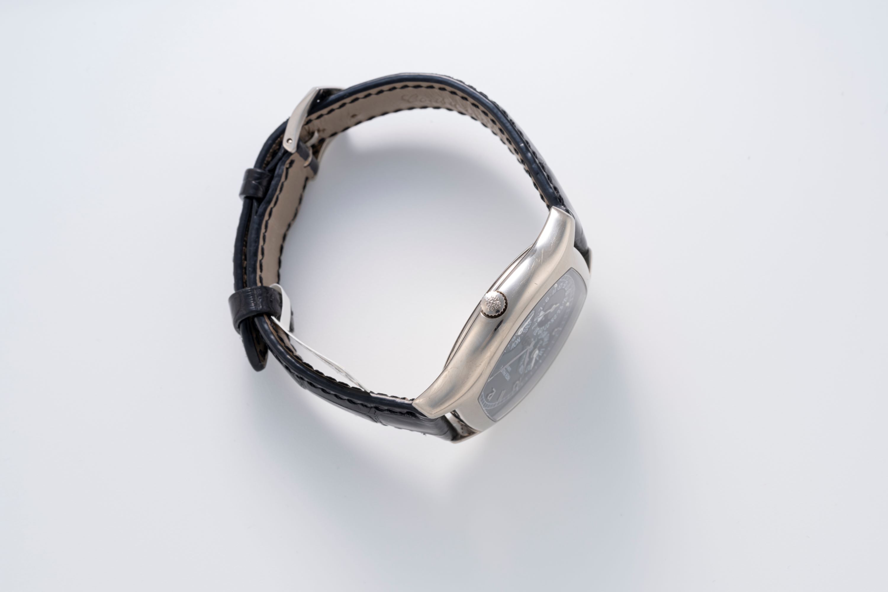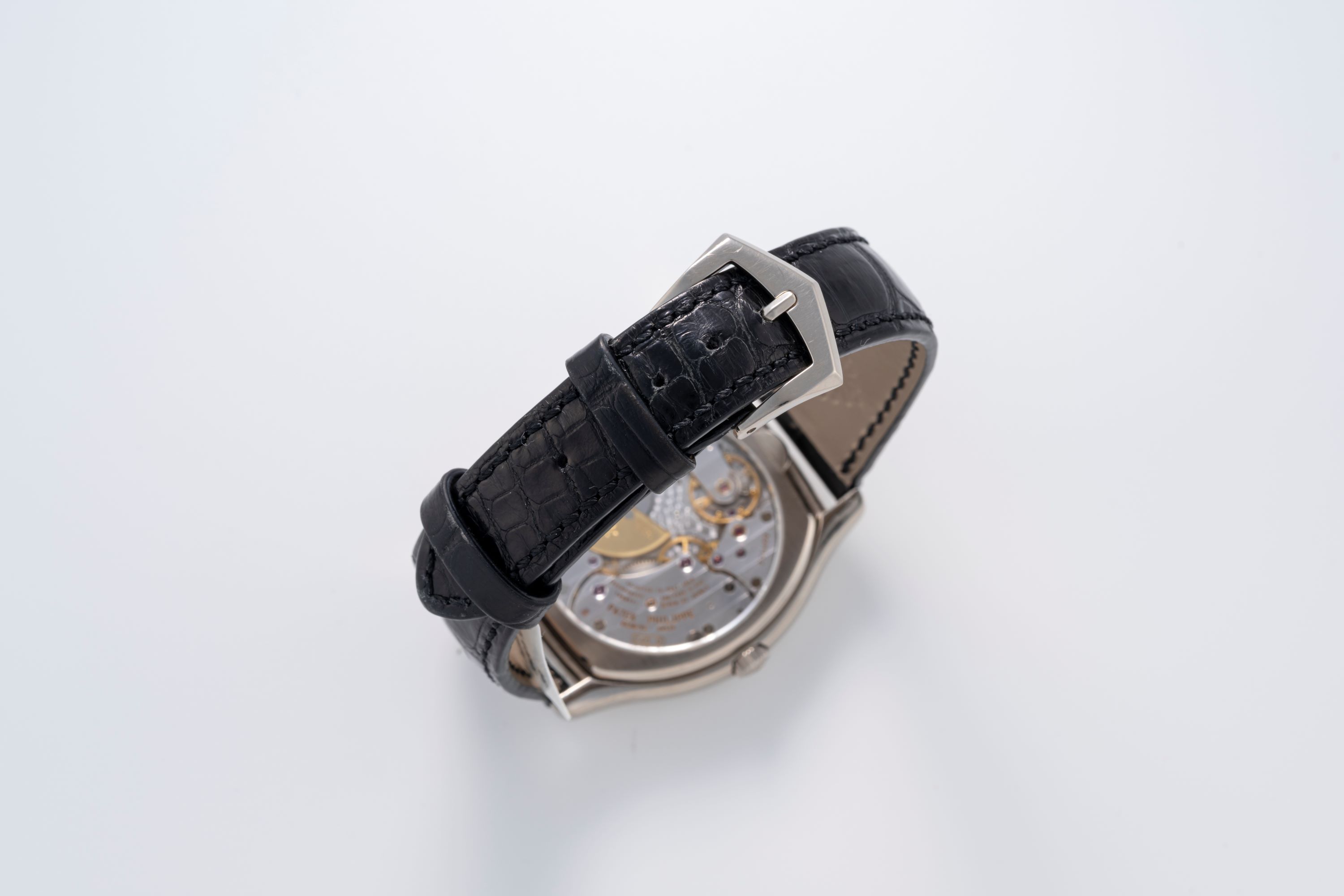 StrapBlack alligator leather strap with Patek Philippe pin buckle in platinum