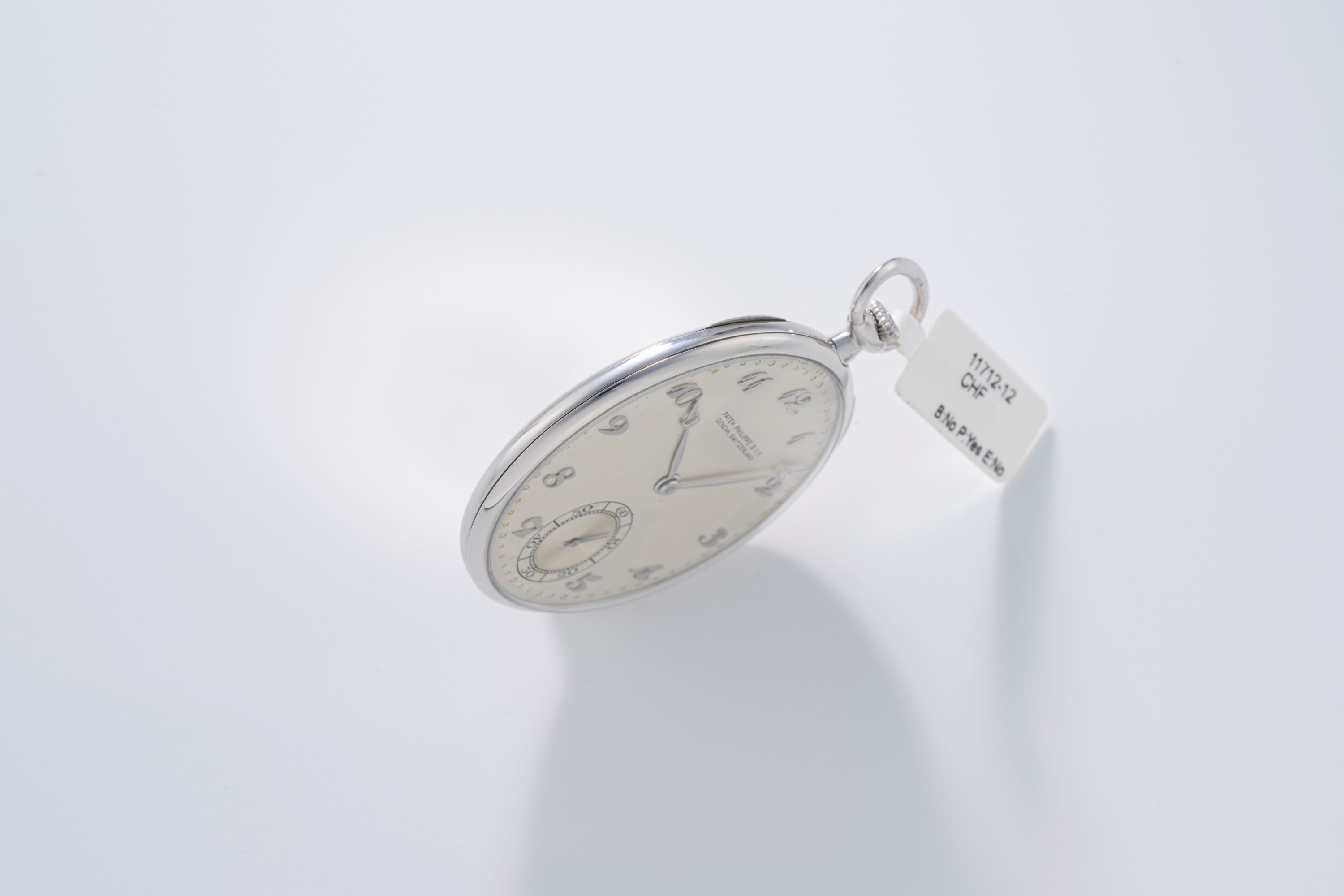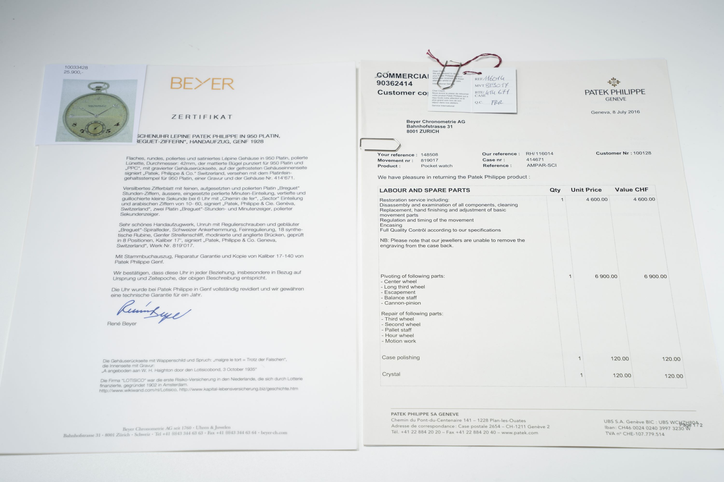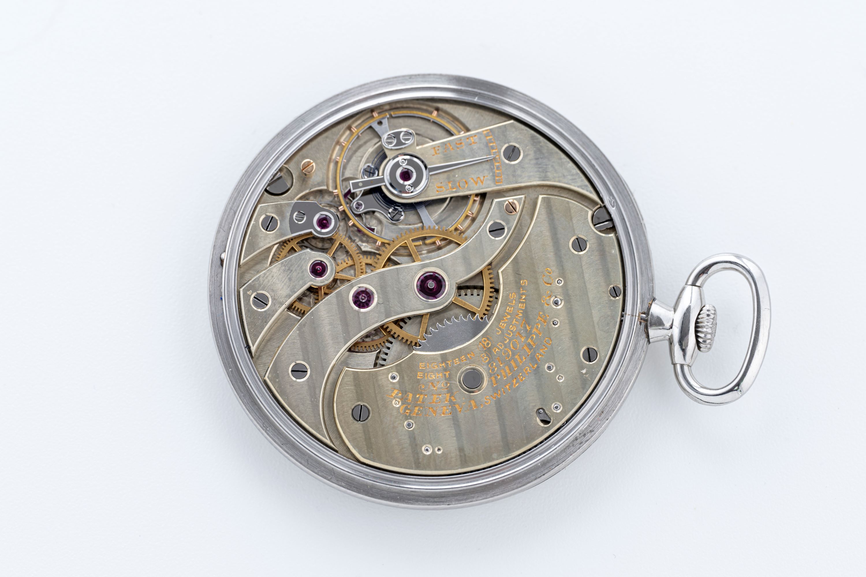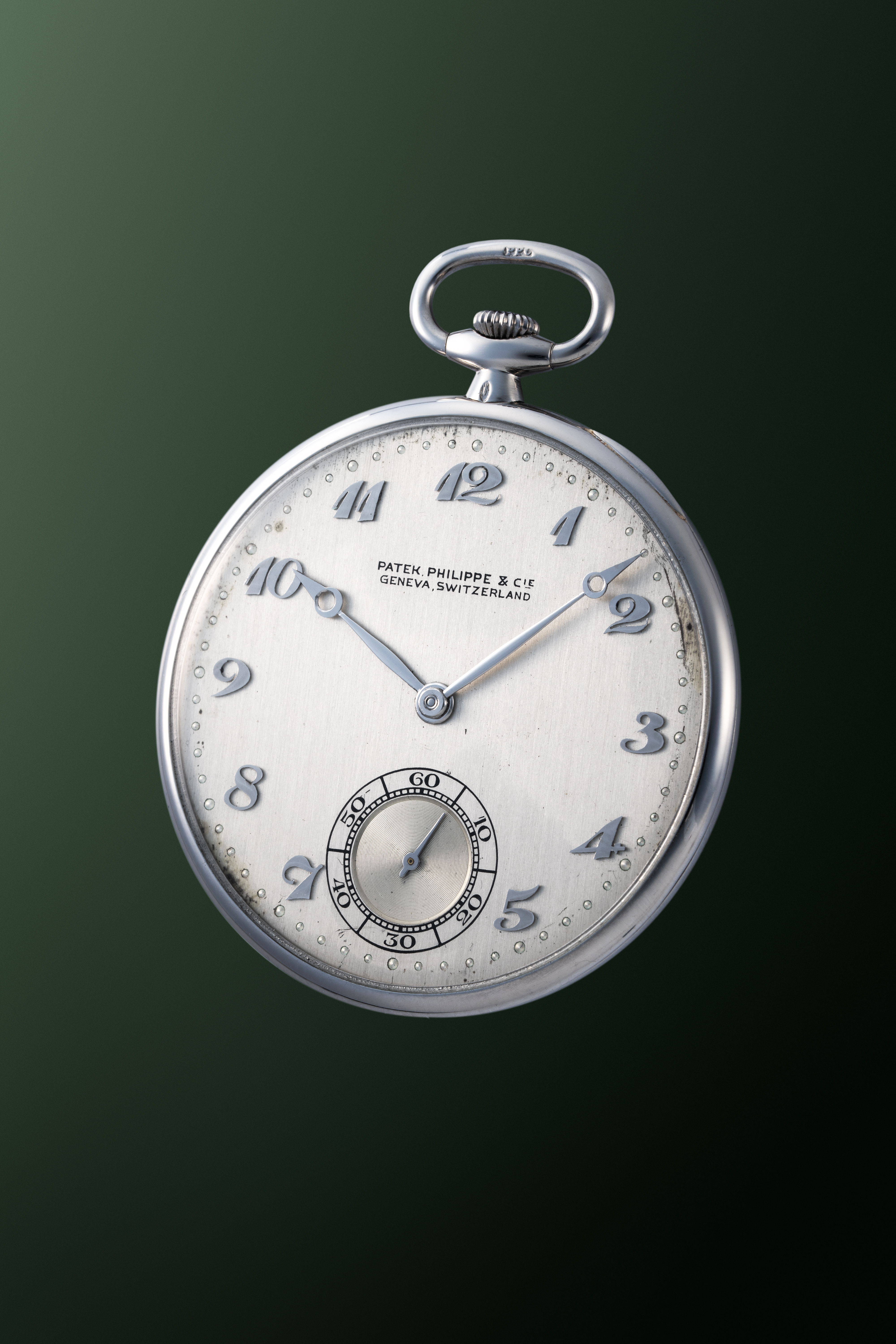 Beautifully preserved for almost 100 years, this Patek Philippe pocket watch has all the desirable design features collectors are looking for today. Featuring a 43mm platinum case, the dial is adorned by applied Breguet numerals and Breguet hands, which is one of the most attractive and sought-after combinations. Furthermore, the brushed silver dial with its period-correct long signature (Patek, Philippe & Cie) keeps the silver color-scheme unified and elegant. On the caseback there is a sharply engraved crest combined with the popular French slogan ‘Malgré le tort’ (despite the wrong) that lends additional character to this piece.