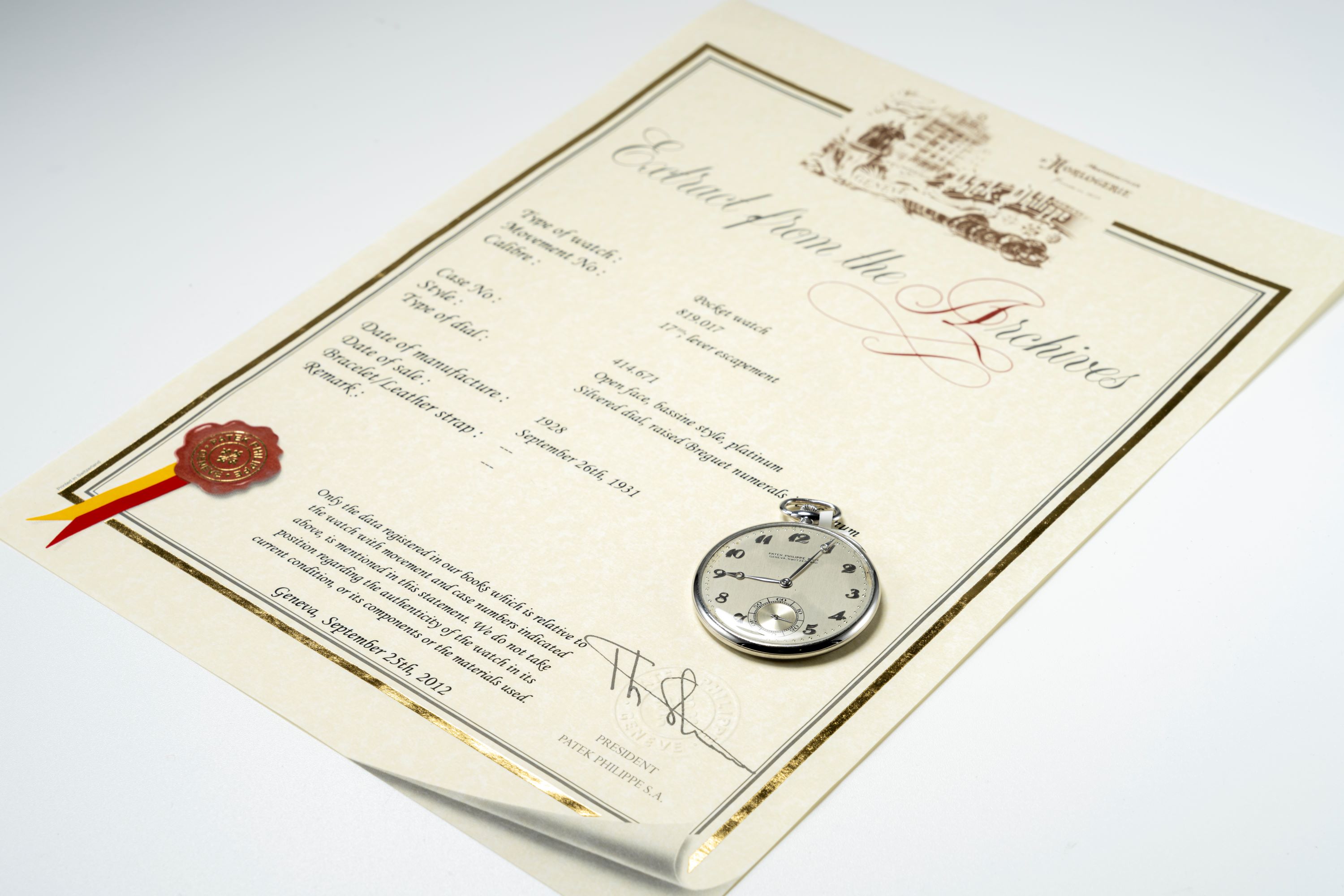 DialVertically brushed silver dial with applied Breguet numerals, Breguet hands, small seconds at 6 o'clock, signed 'Patek, Philippe & Cie.' at 12 o'clock