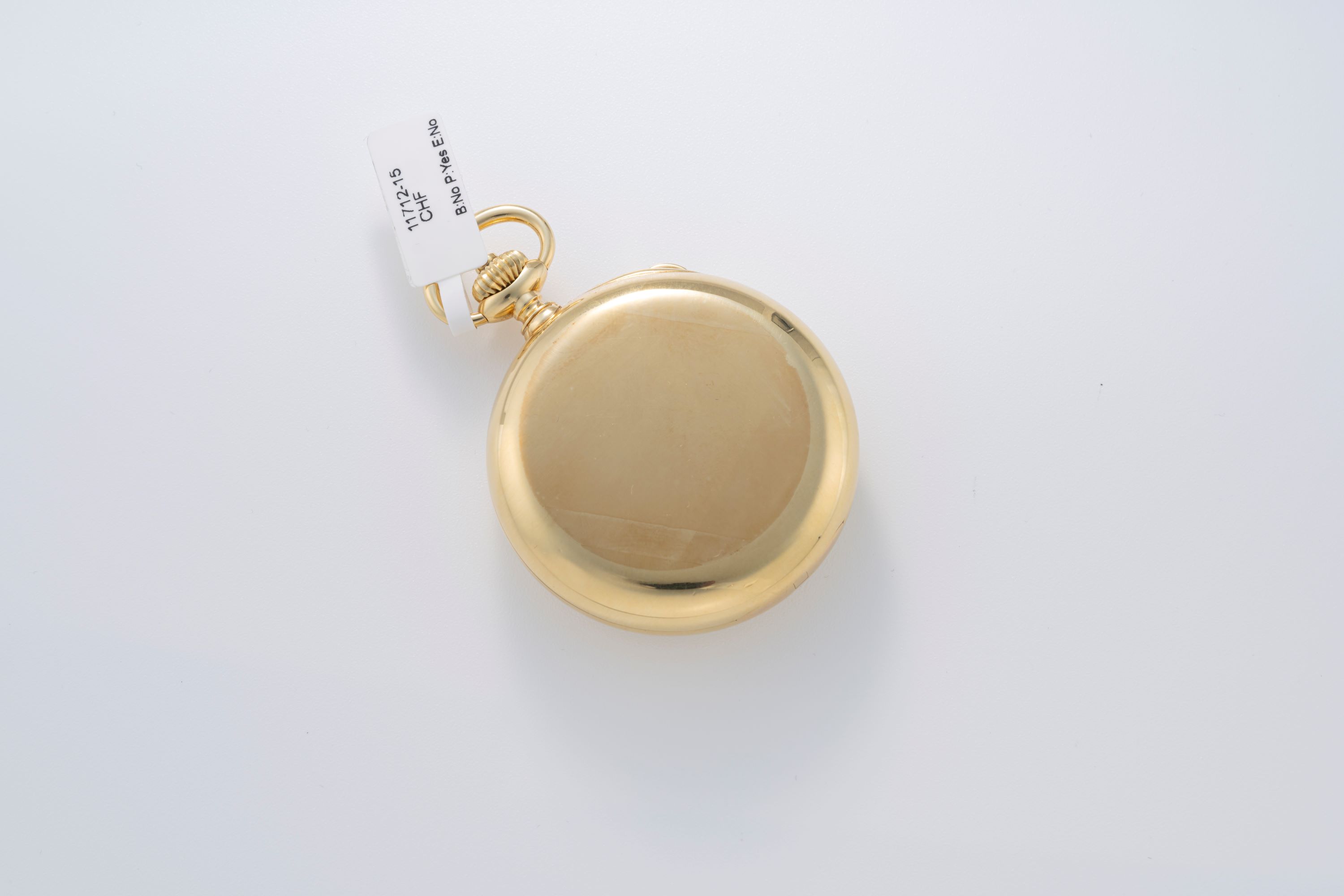 CaseRound case in 18k yellow gold with double lid, chain loop and winding crown at 12 o'clock, pusher for time-setting at 10:30
