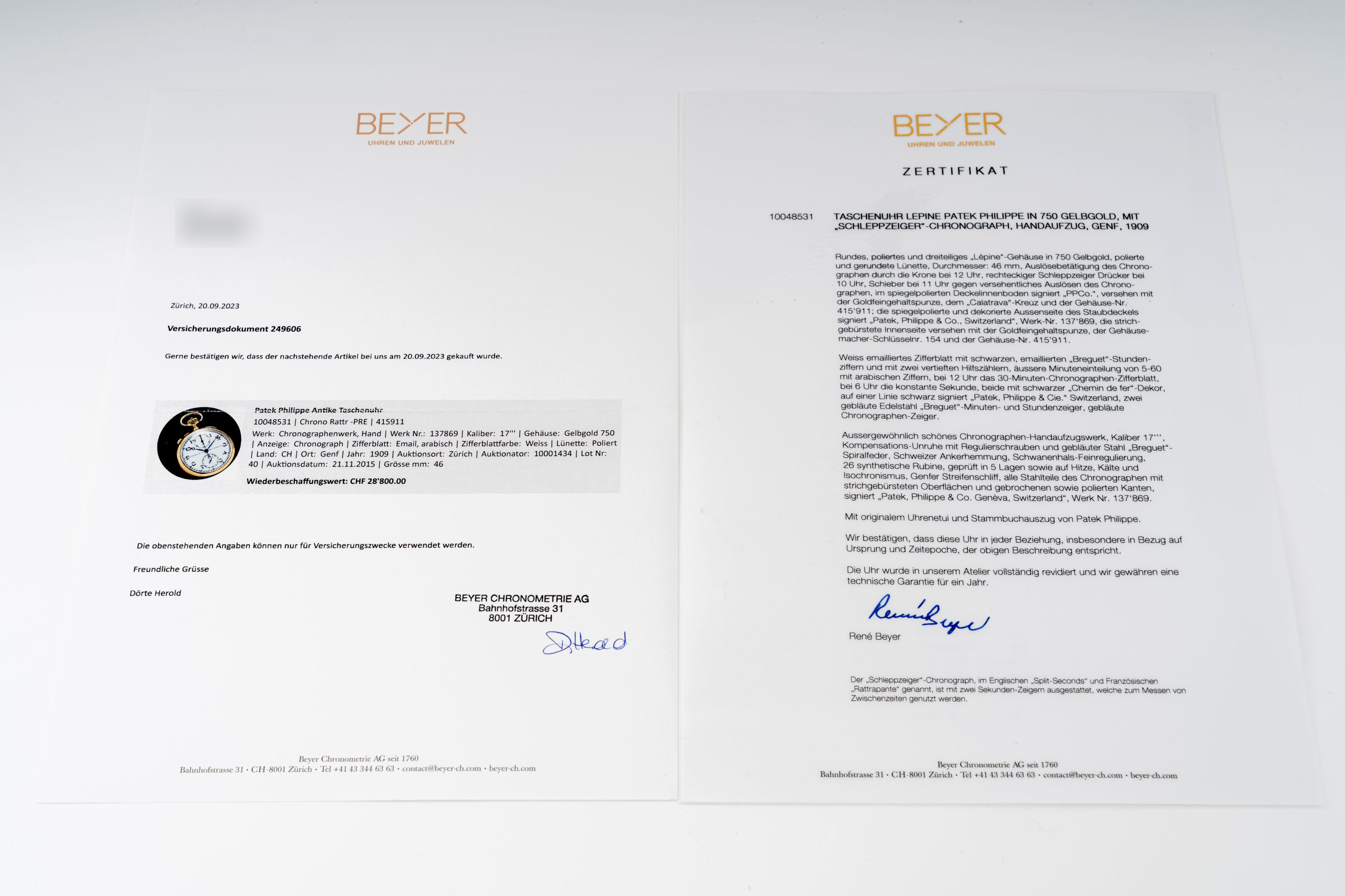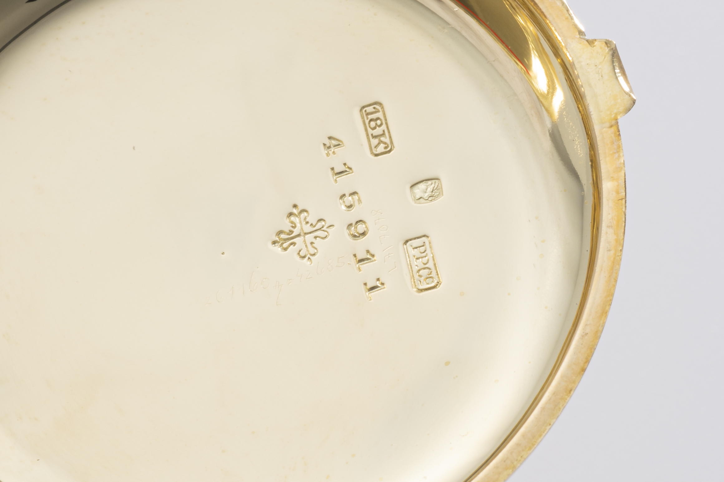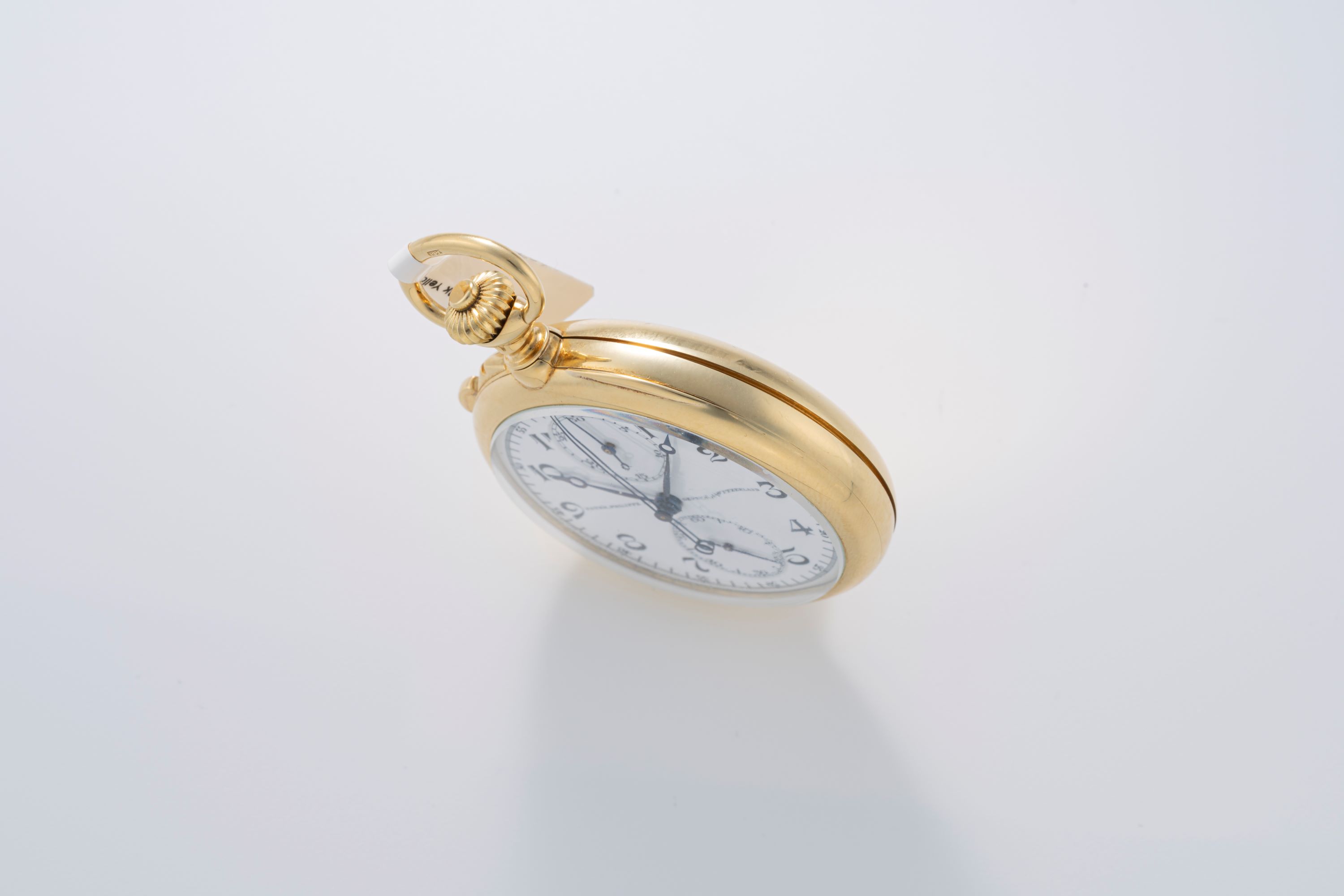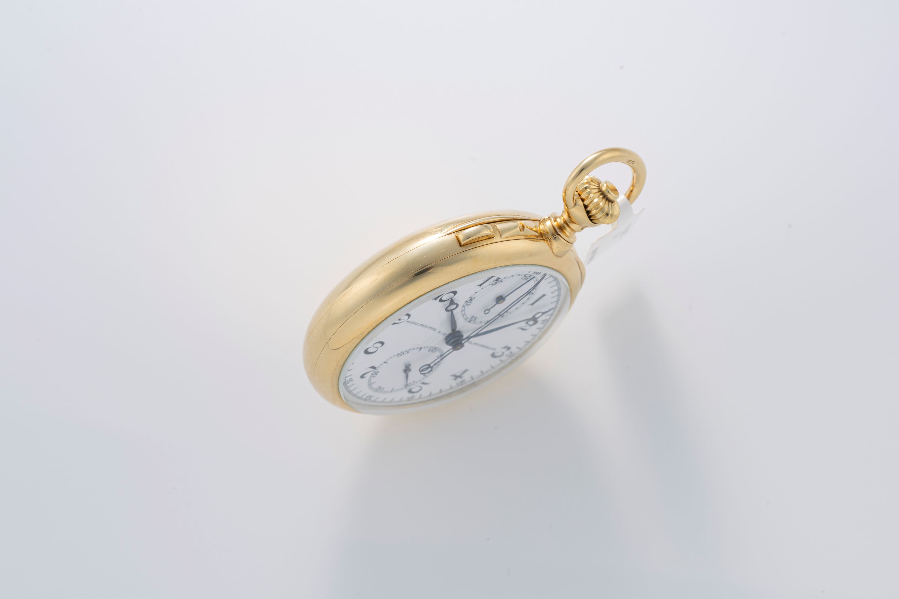 This Patek Philippe split-seconds chronograph pocket watch in 18k yellow gold offers a high level hand-built chronograph from the period in which rattrapante (split-seconds) mechanisms were produced in small numbers and with considerable finishing. The white enamel dial with heat-blued Breguet hands reflects traditional Patek Philippe aesthetics and remains clear and easy to read. The 18k yellow gold case provides both material value and original period presence. As split-seconds chronograph pocket watches were made in far lower quantities than standard chronographs, the piece holds particular interest for collectors of early complications and manually executed movement architecture. The watch offers a stunning example of Patek Philippe’s approach to precision timekeeping and finishing before mass mechanization in watchmaking, making it a meaningful and historically grounded acquisition.