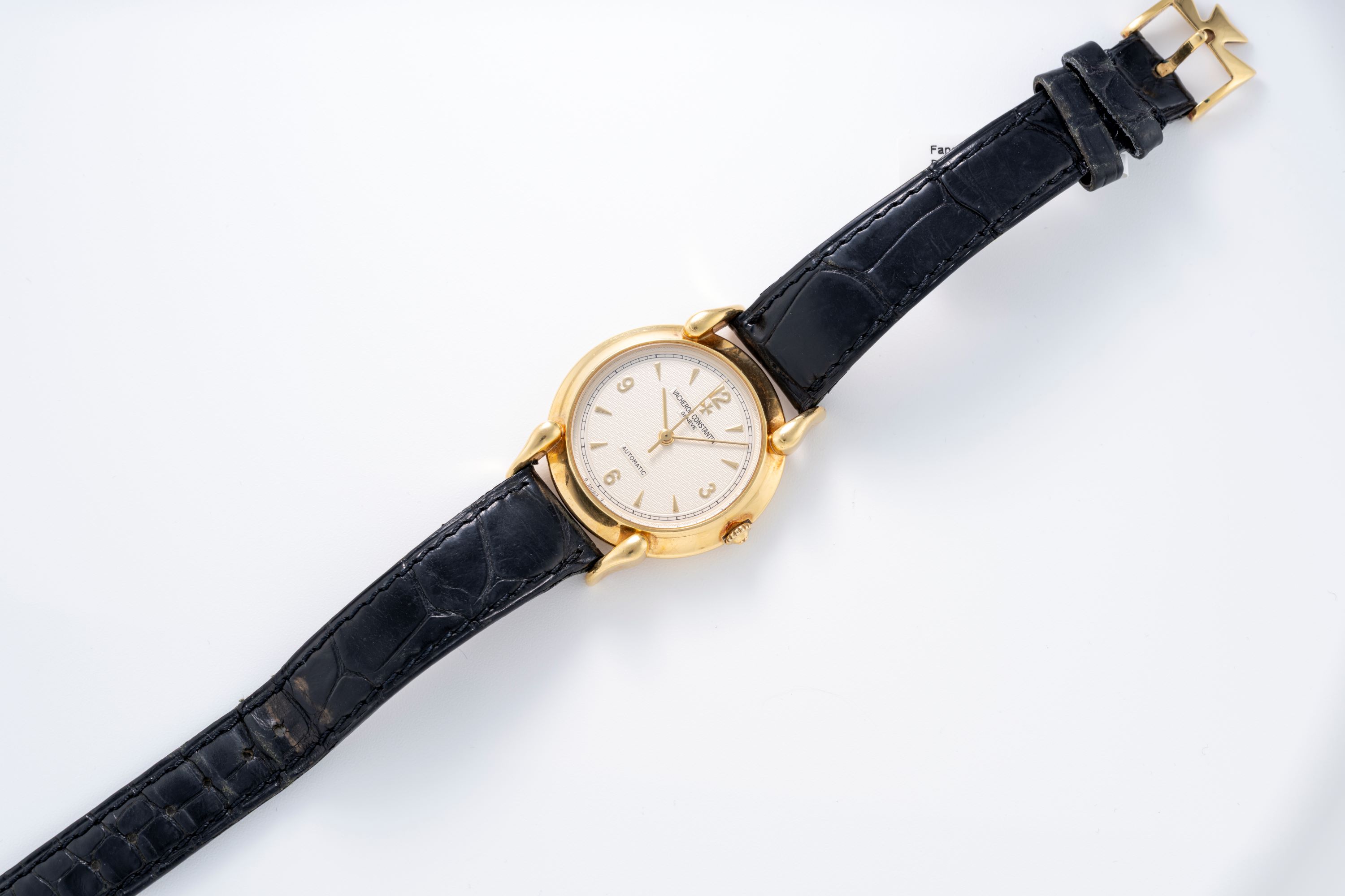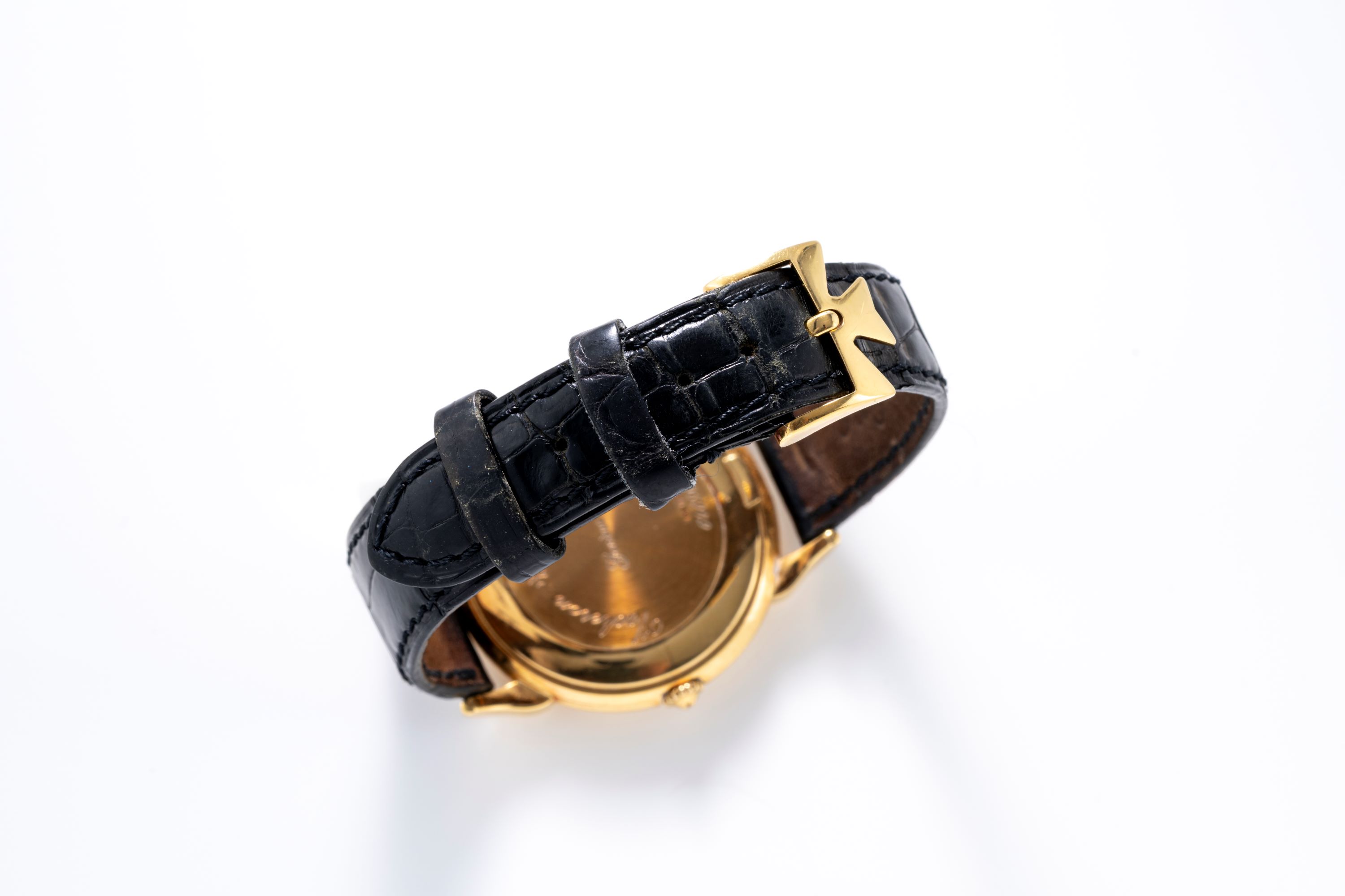 StrapBlack alligator leather strap with Vacheron Constantin pin buckle in 18k yellow gold