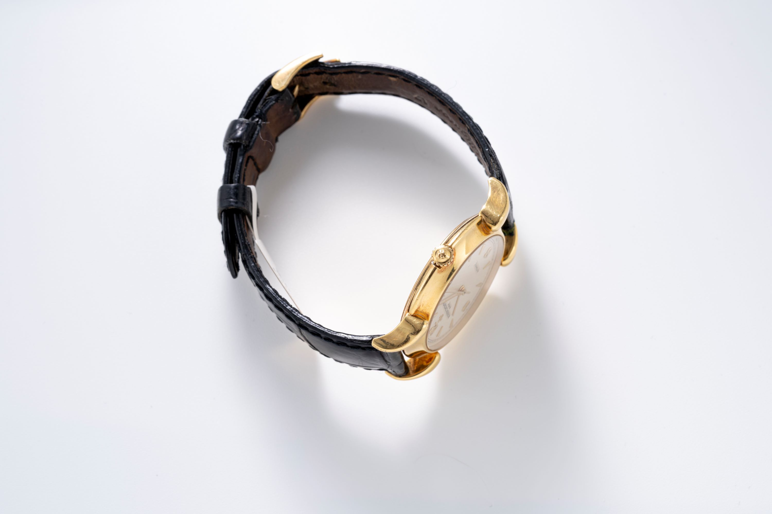 CaseRound case in 18k yellow gold with cornes de vache, winding crown at 3 o'clock, solid caseback