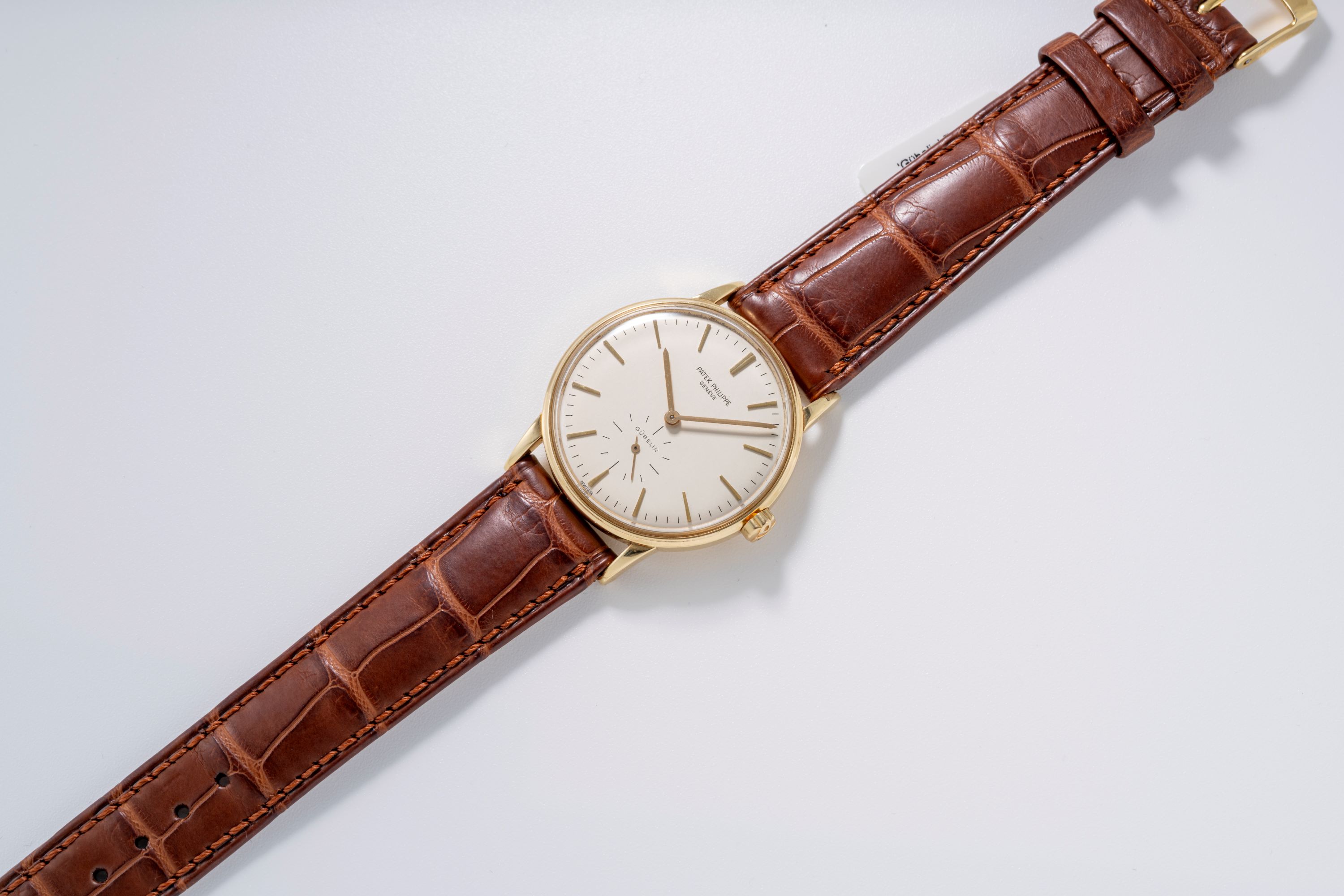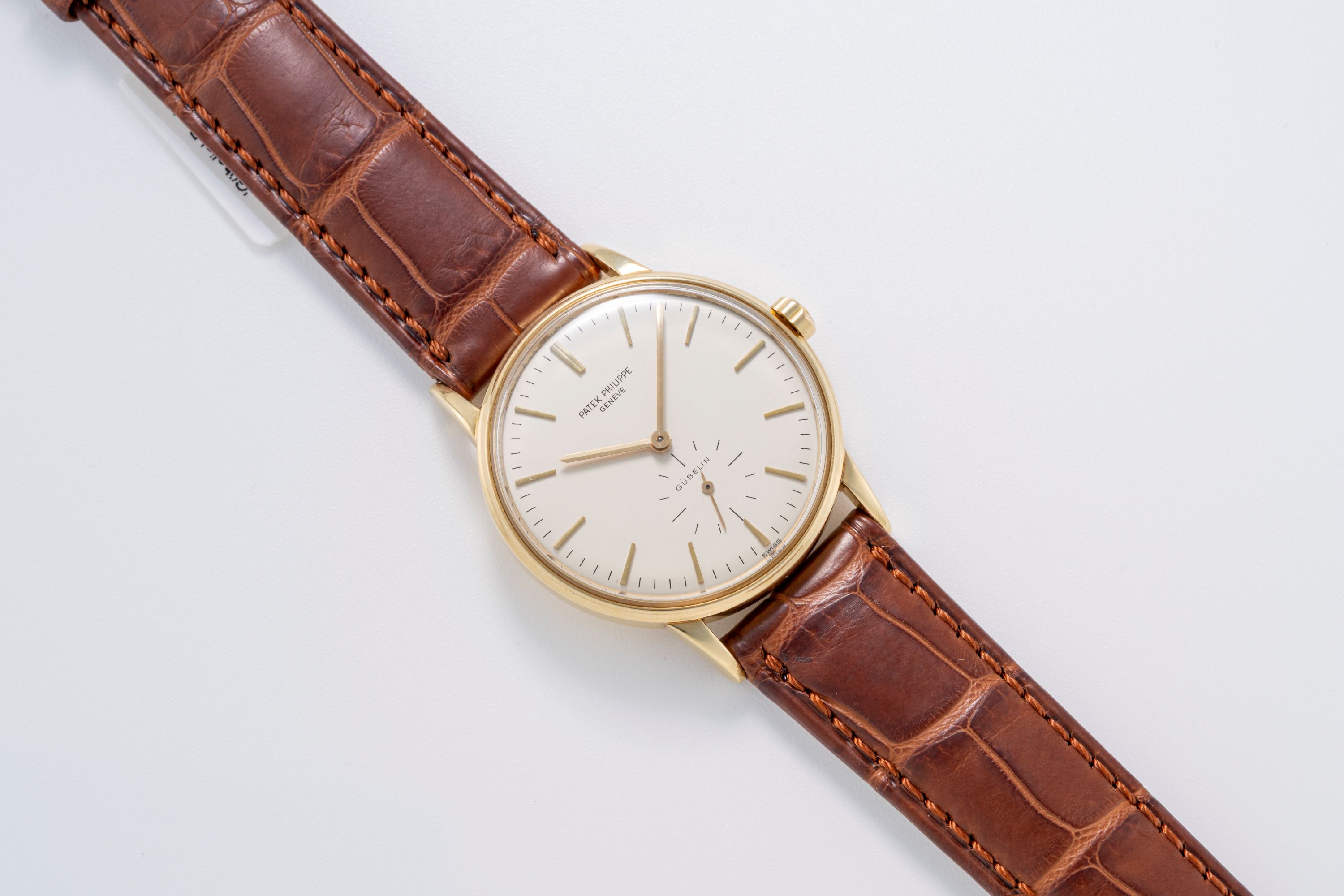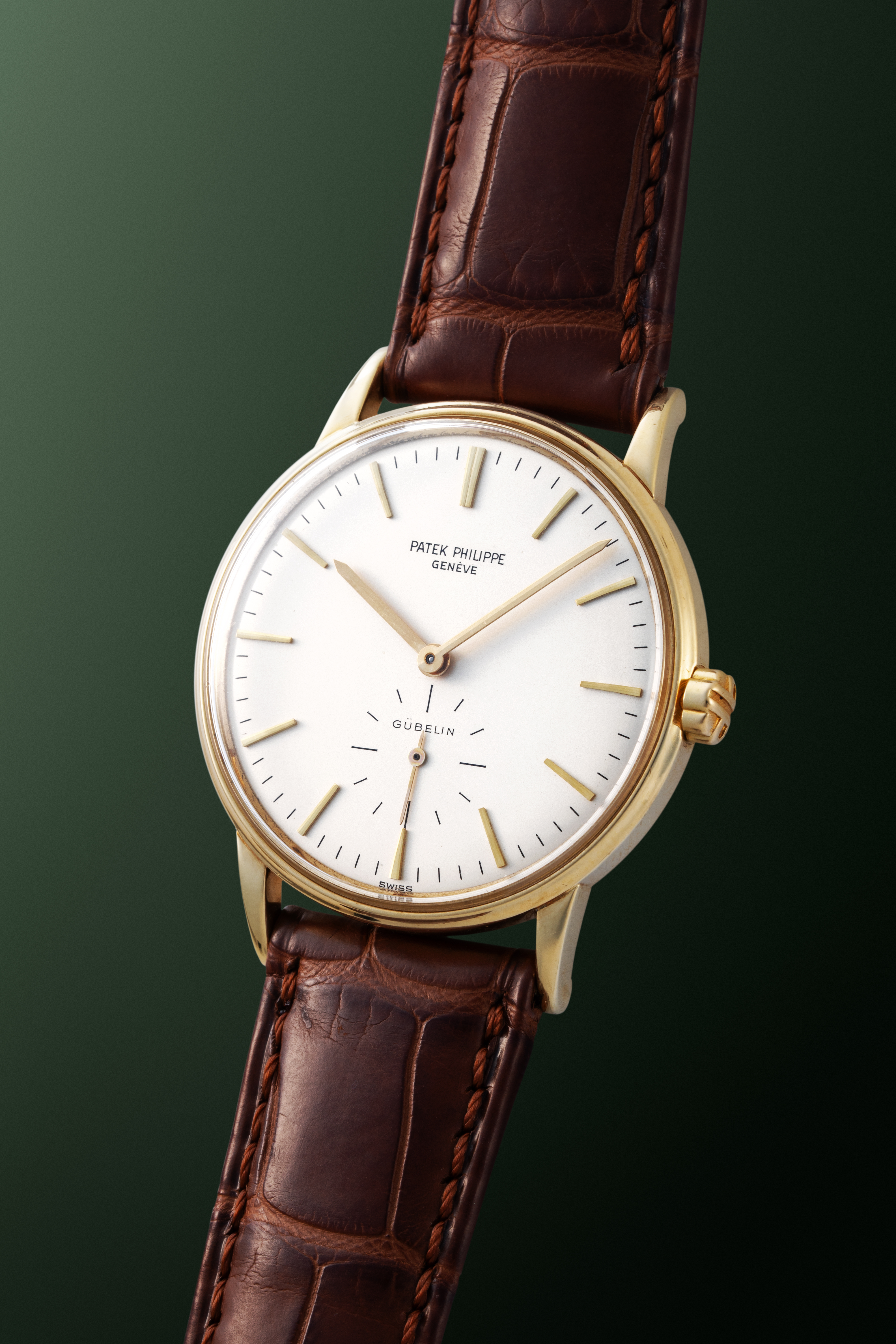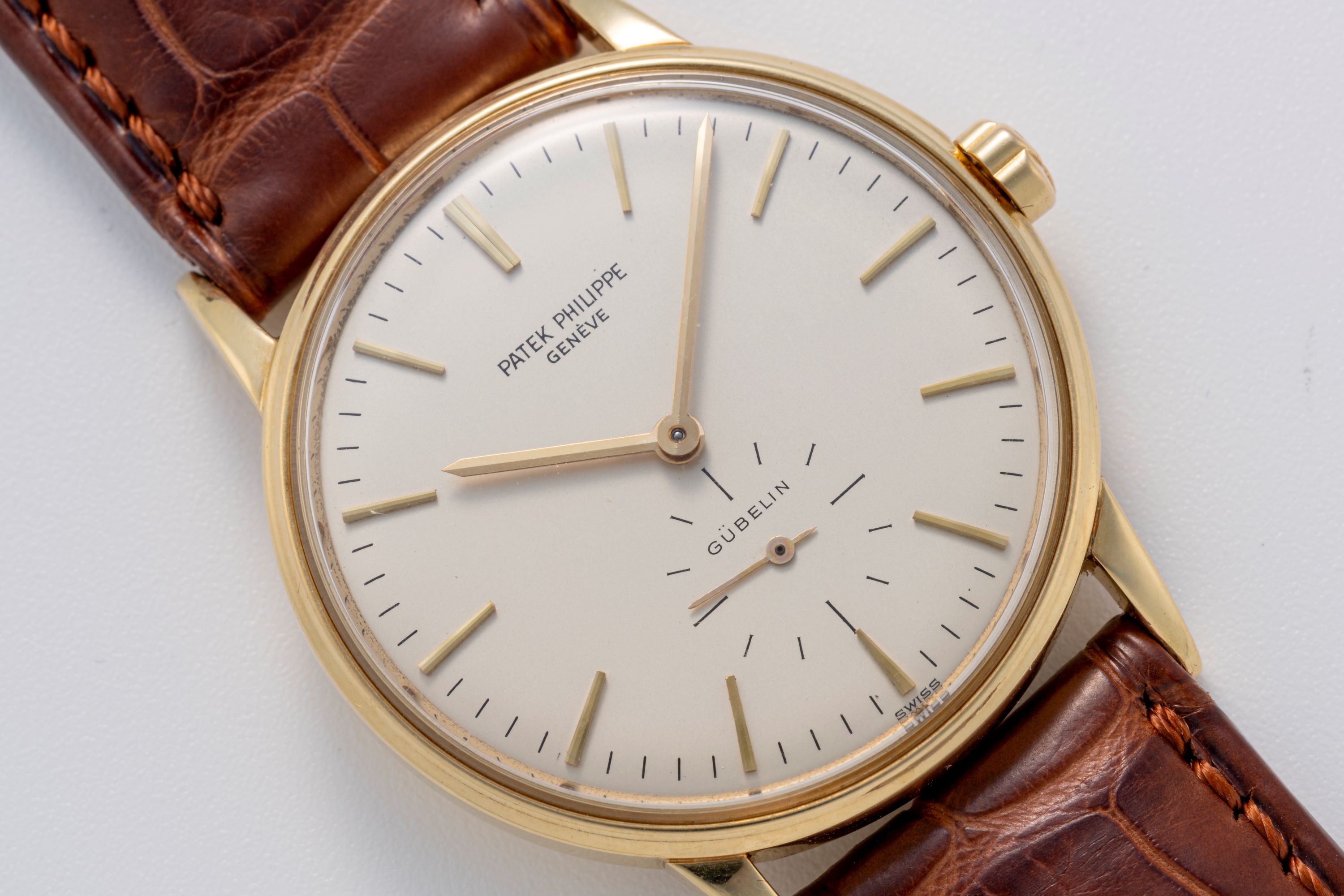 DialSilver dial with applied yellow gold indices, yellow gold hands, small seconds at 6 o'clock, signed 'Patek Philippe' at 12 o'clock, signed 'Gübelin' at 6 o'clock
