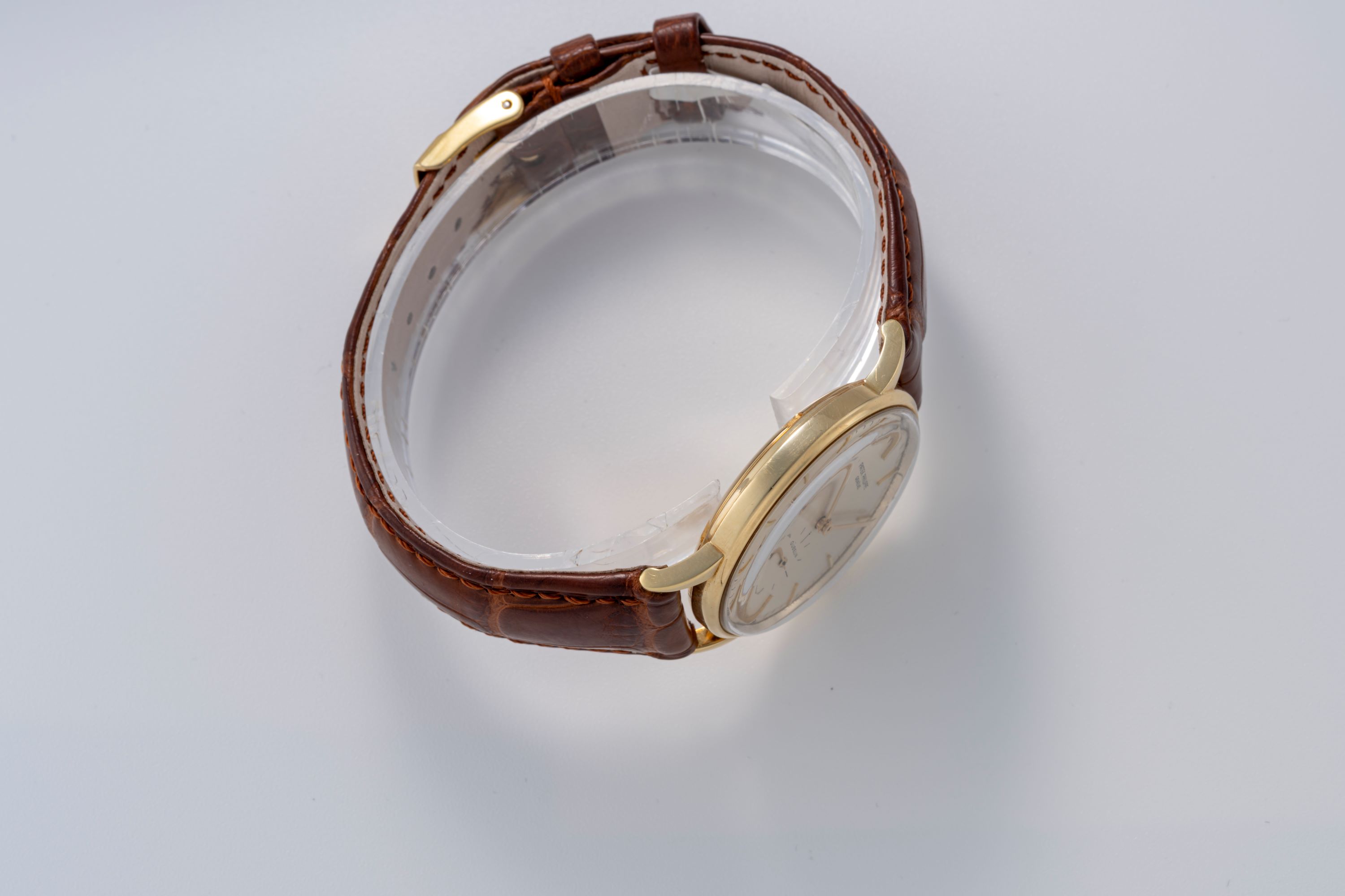 This Patek Philippe ‘Gübelin’ Double-Signed Calatrava Ref. 3425 presents an appealing opportunity for collectors seeking a refined dress watch with strong provenance and added rarity. The reference embodies the clean, balanced design language of mid-20th-century Calatravas, expressed through its 18k yellow-gold case and minimalist dial layout. The double signature from Gübelin, one of Switzerland’s most respected retailers, enhances the watch’s historical value and marks it as a piece that was specially selected and sold through a prestigious house. The automatic movement Caliber 27-460 reflects Patek Philippe’s commitment to mechanical excellence, offering reliable performance in a slim and elegant form. For those who appreciate understated design, retailer-signed dials, and classic Patek Philippe craftsmanship, this Ref. 3425 represents a compelling and collectible example.