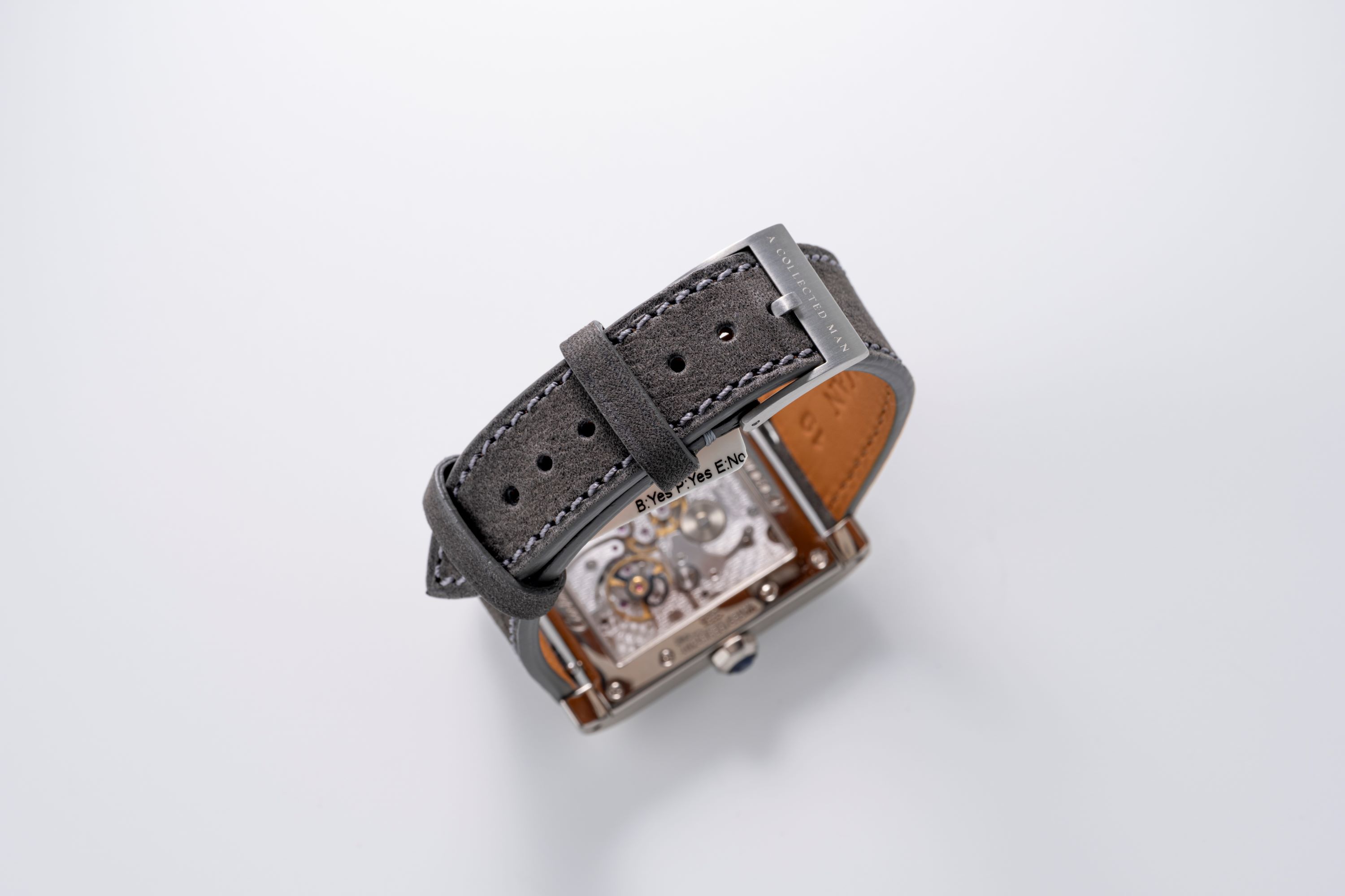 StrapGrey leather strap with stainless steel pin buckle