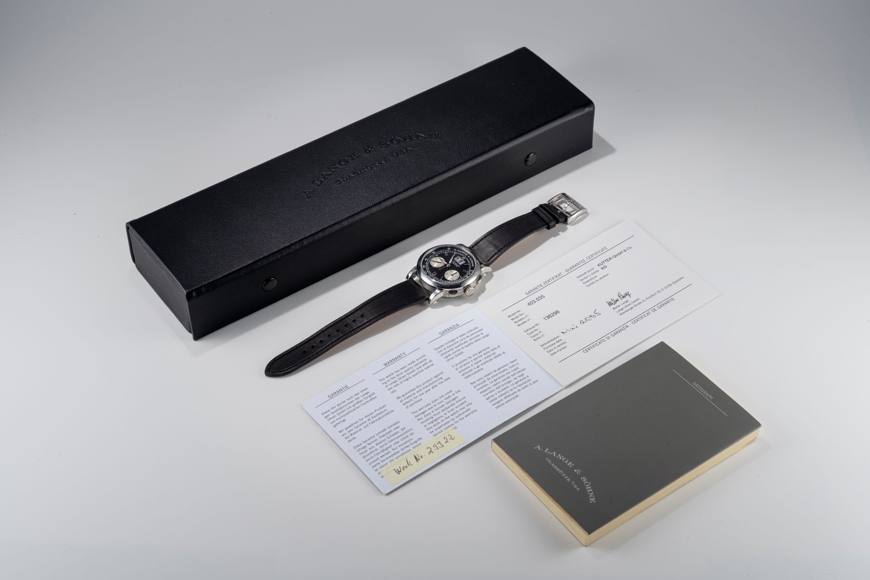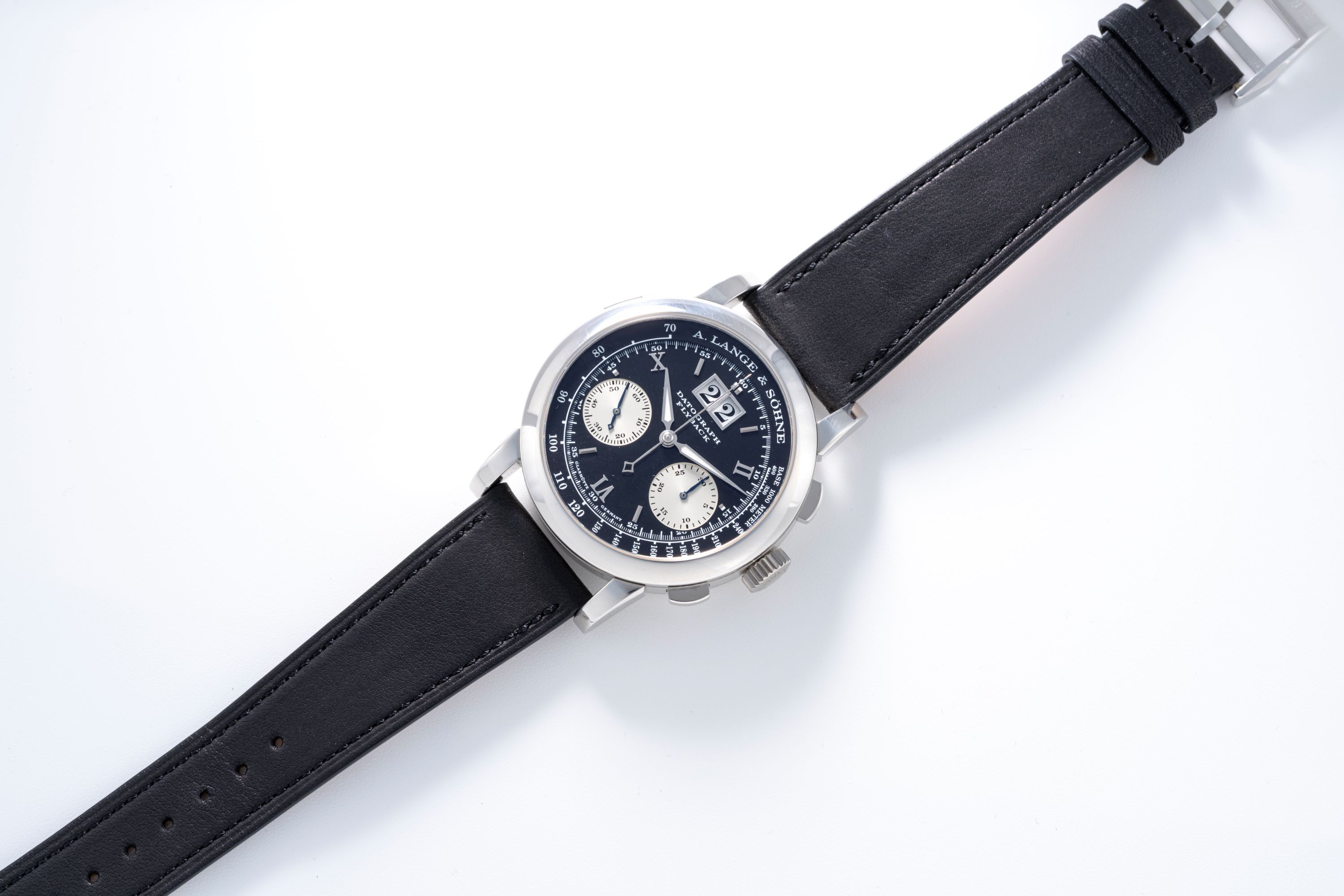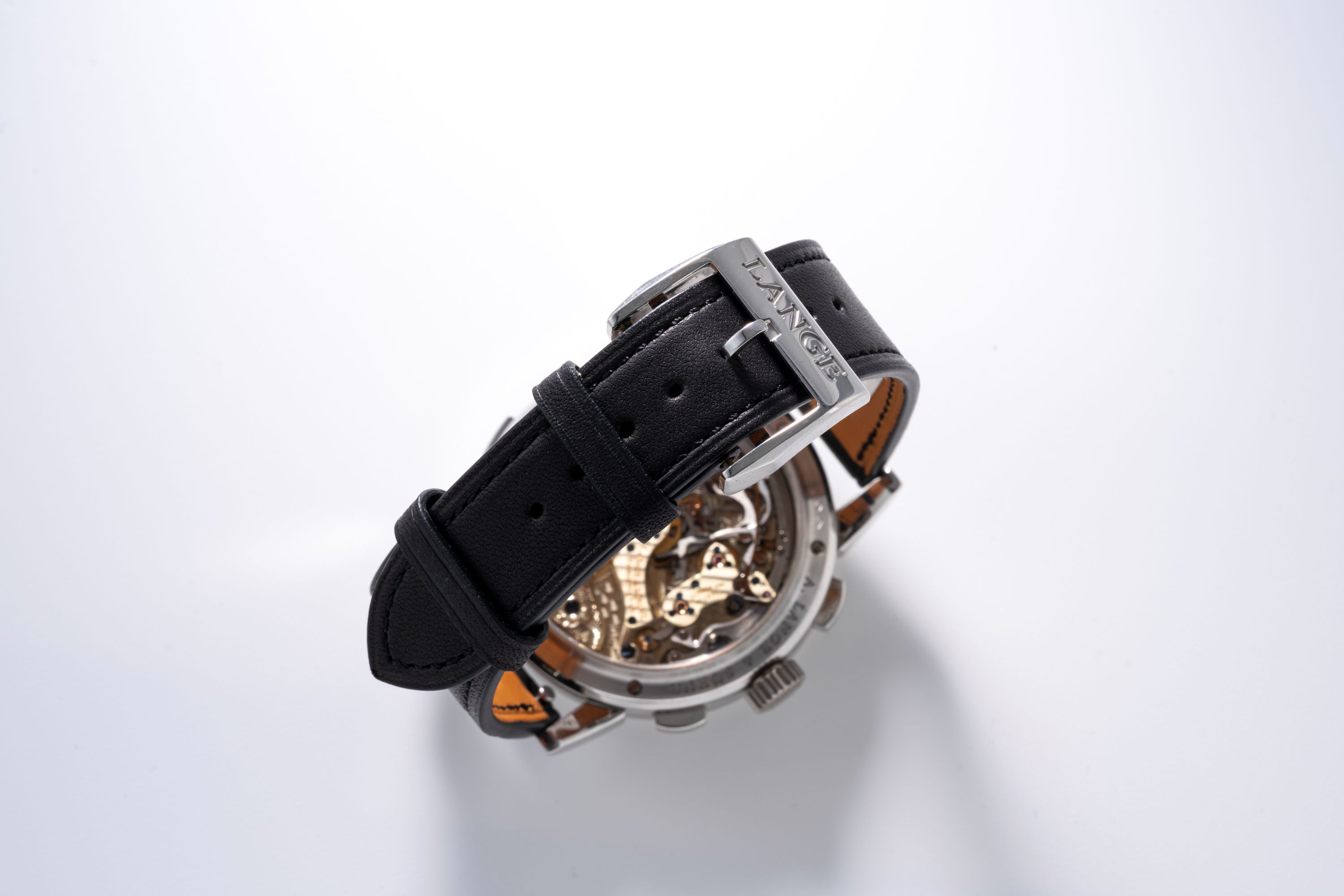 DialBlack dial with silver accents, small seconds at 8 o'clock, 30 minute chronograph counter at 4 o'clock, big date at 12 o'clock, signed 'A.Lange & Söhne' at 12 o'clock
