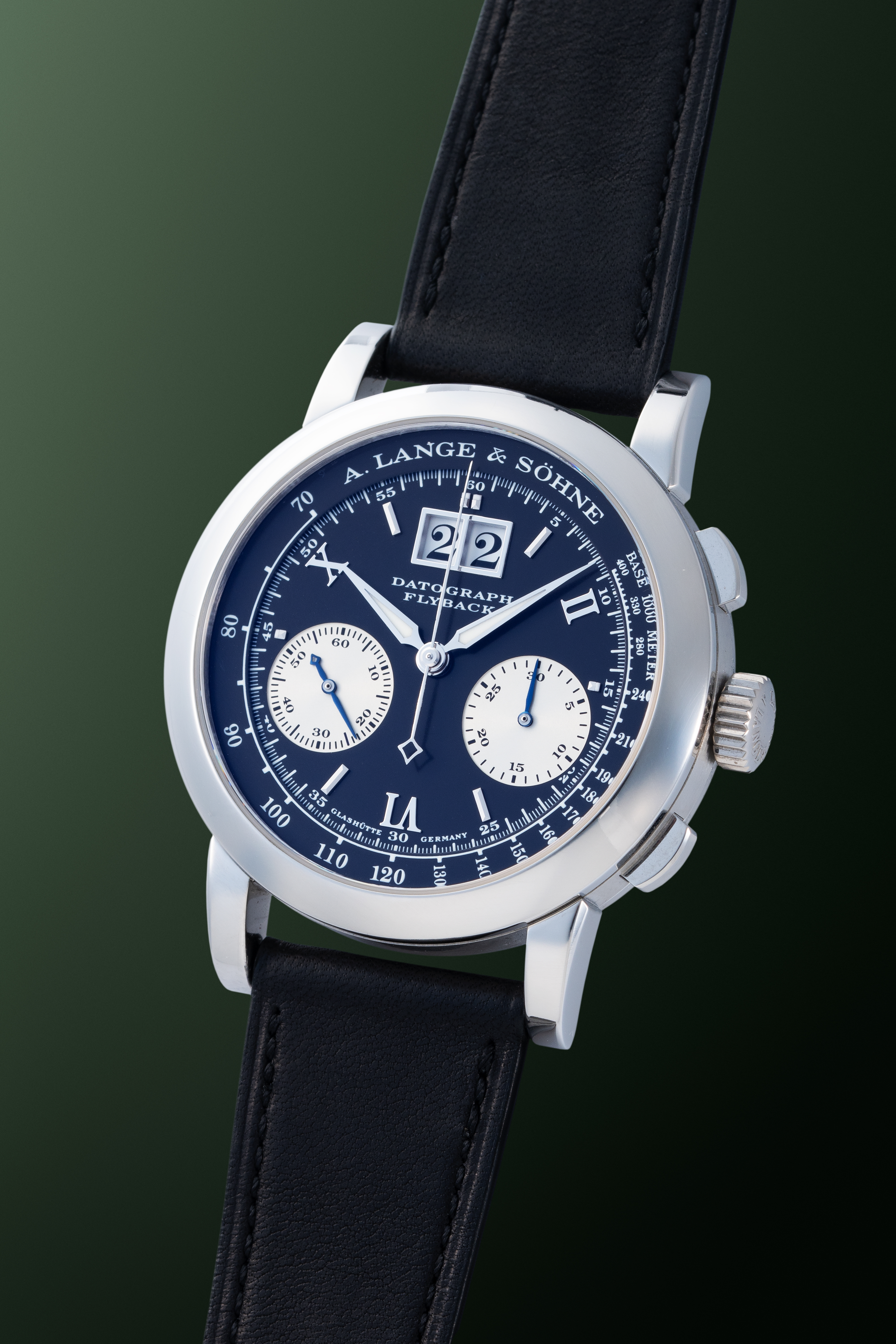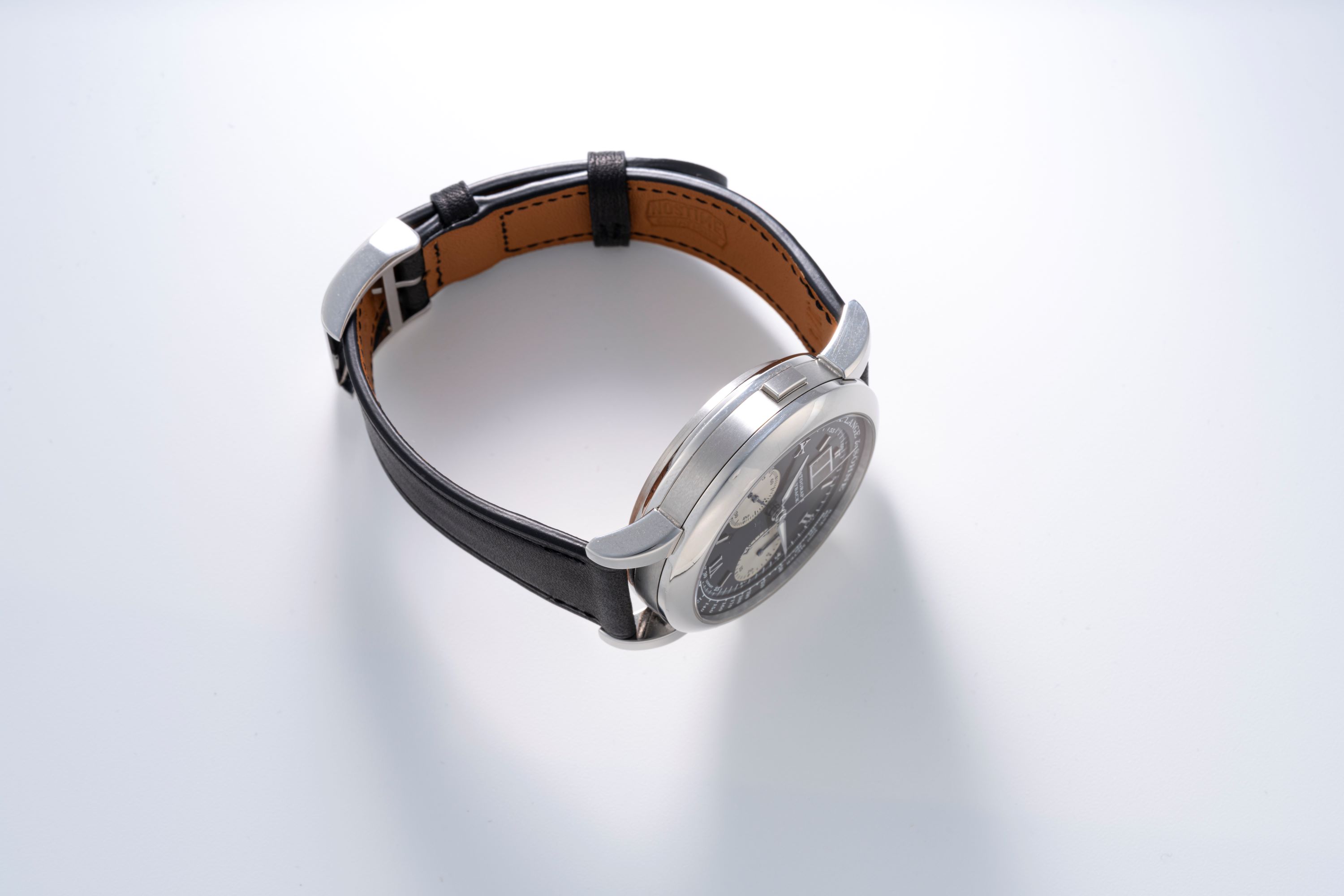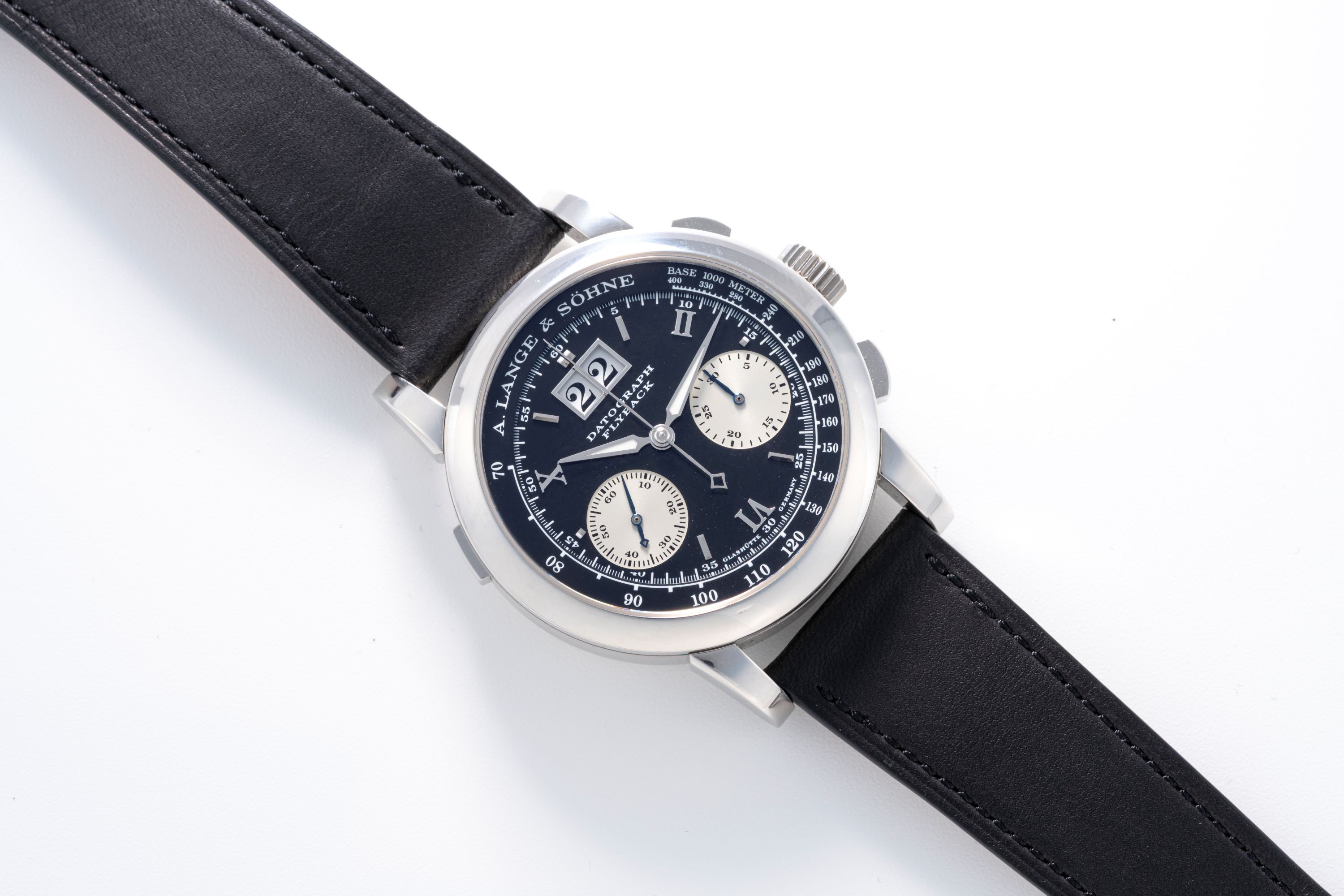 DialBlack dial with silver accents, small seconds at 8 o'clock, 30 minute chronograph counter at 4 o'clock, big date at 12 o'clock, signed 'A.Lange & Söhne' at 12 o'clock