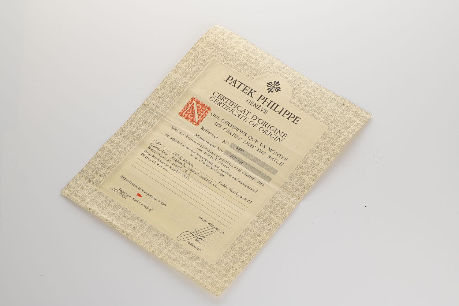 DialSilver-cream dial with applied Breguet numerals, breguet hands, day and 24 hour indicator at 9 o'clock, month and leap year indicator at 3 o'clock, moonphase and date at 6 o'clock, signed 'Patek Philippe' at 12 o'clock