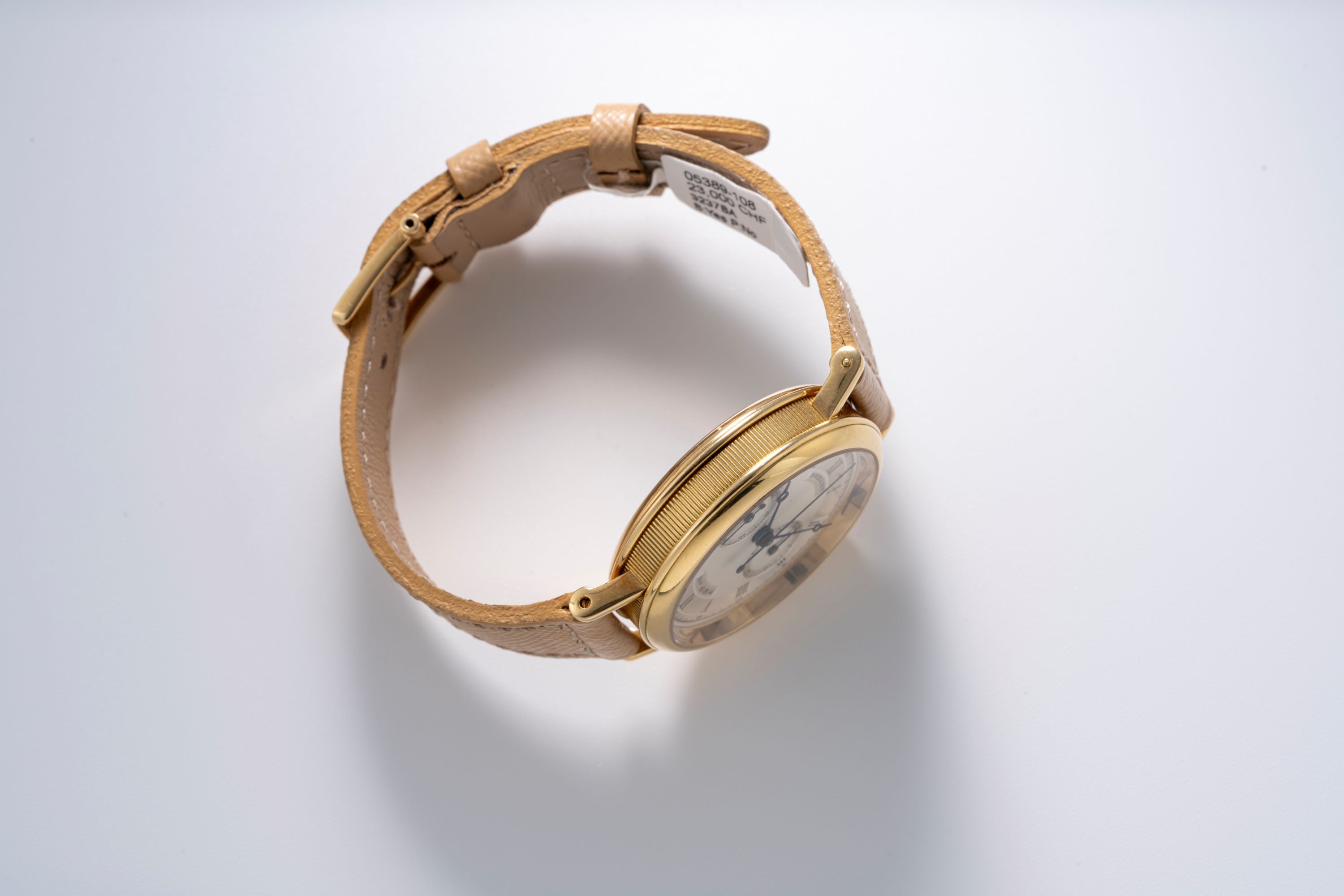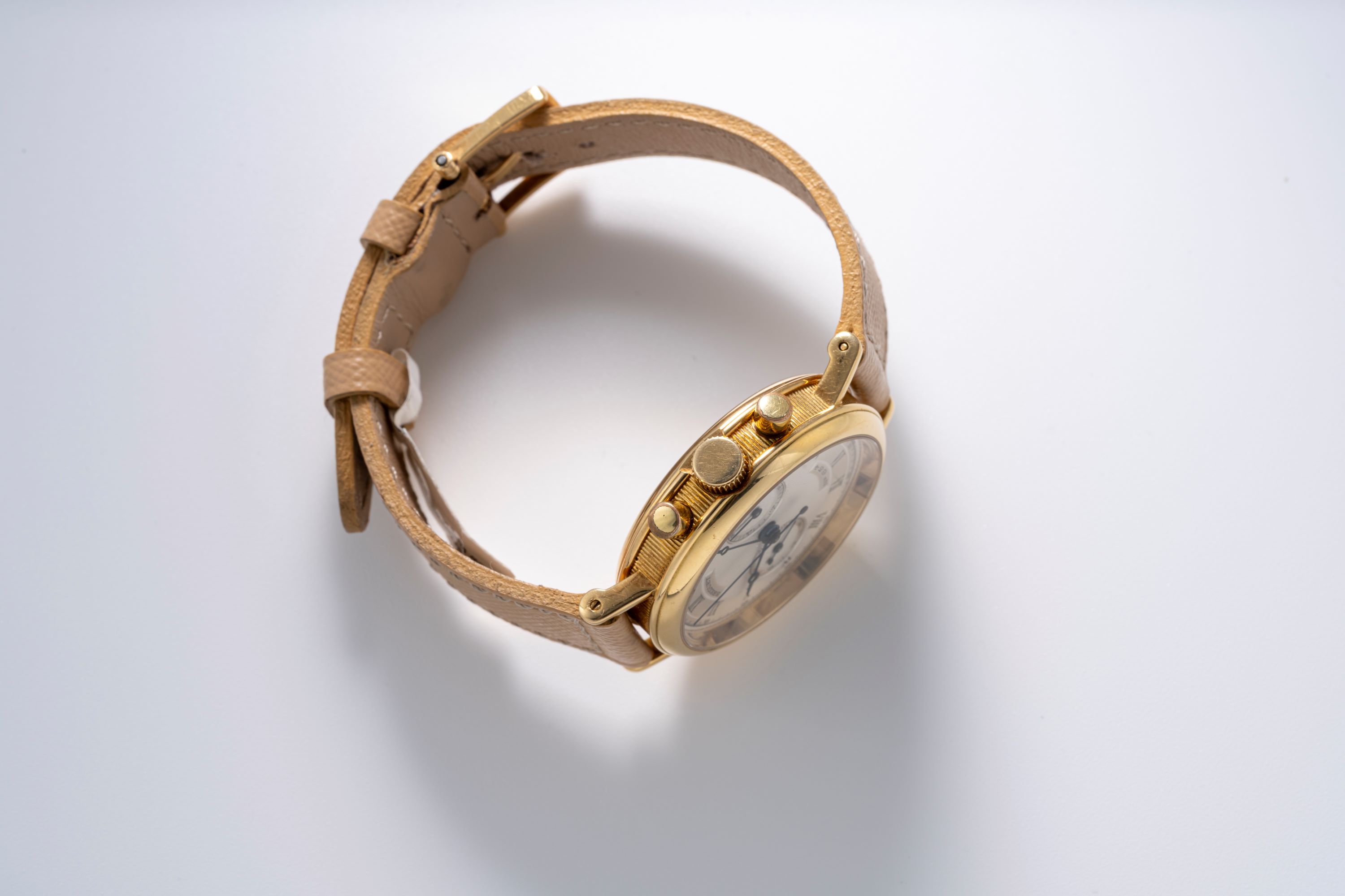 StrapBeige leather strap with Breguet pin buckle in 18k yellow gold