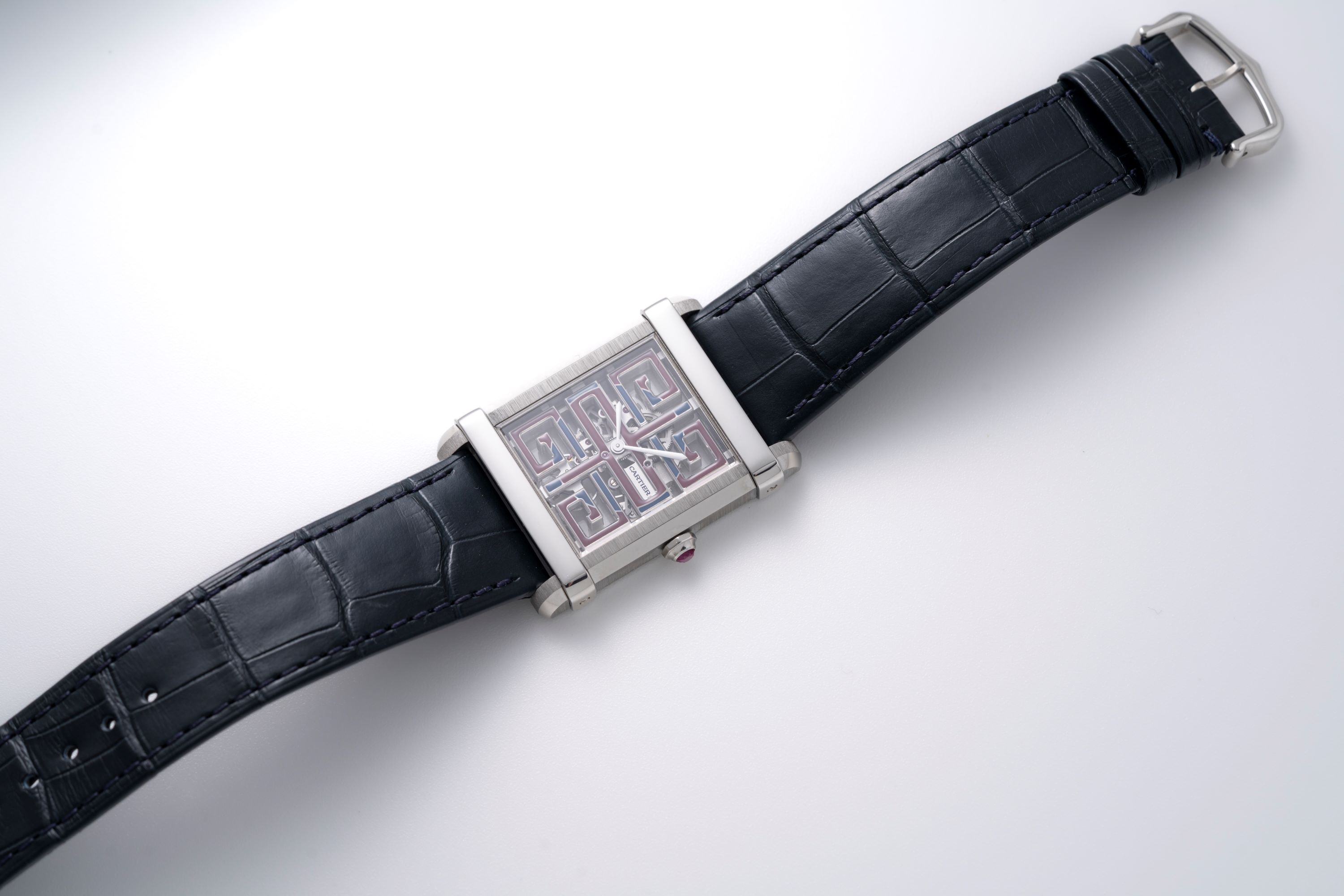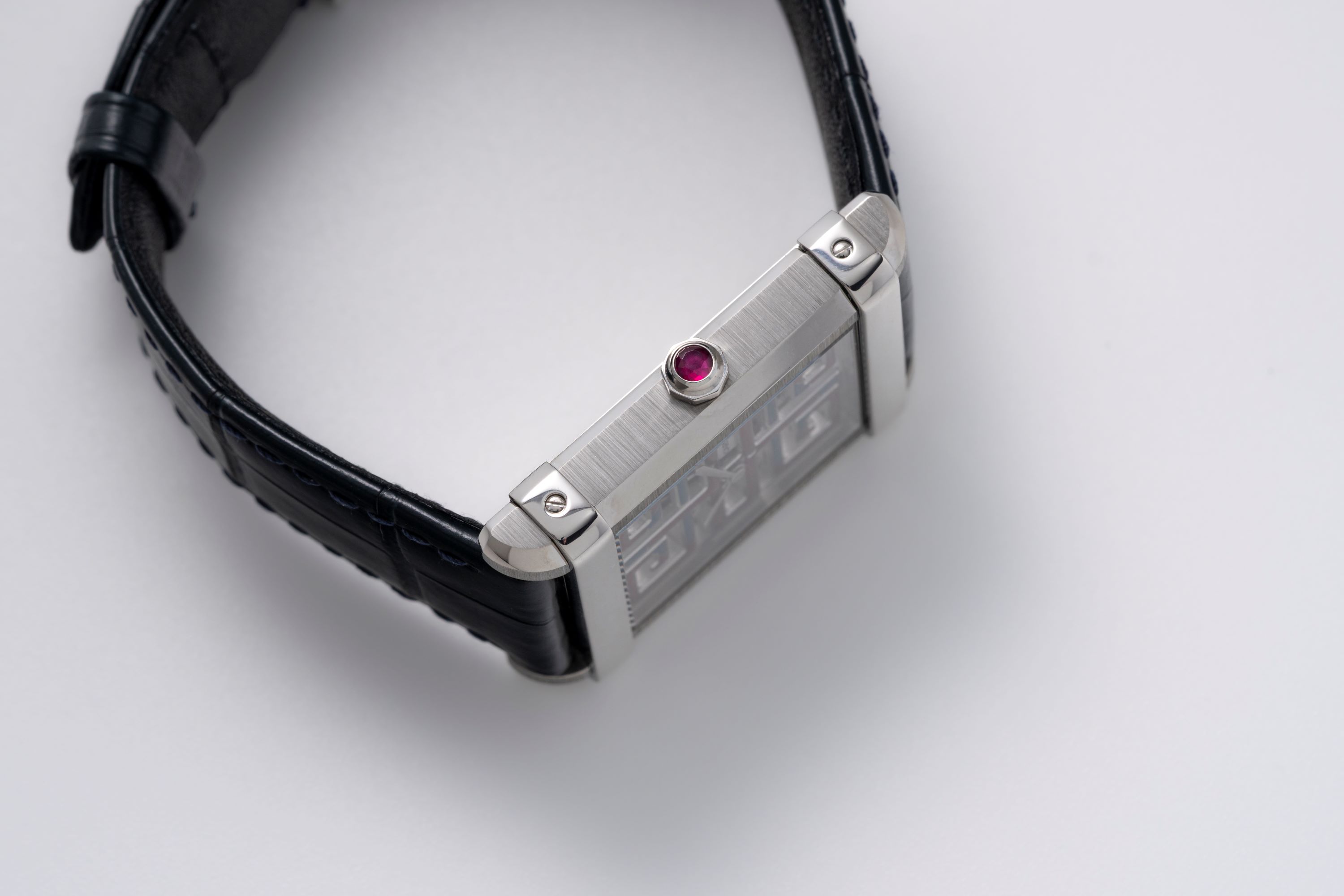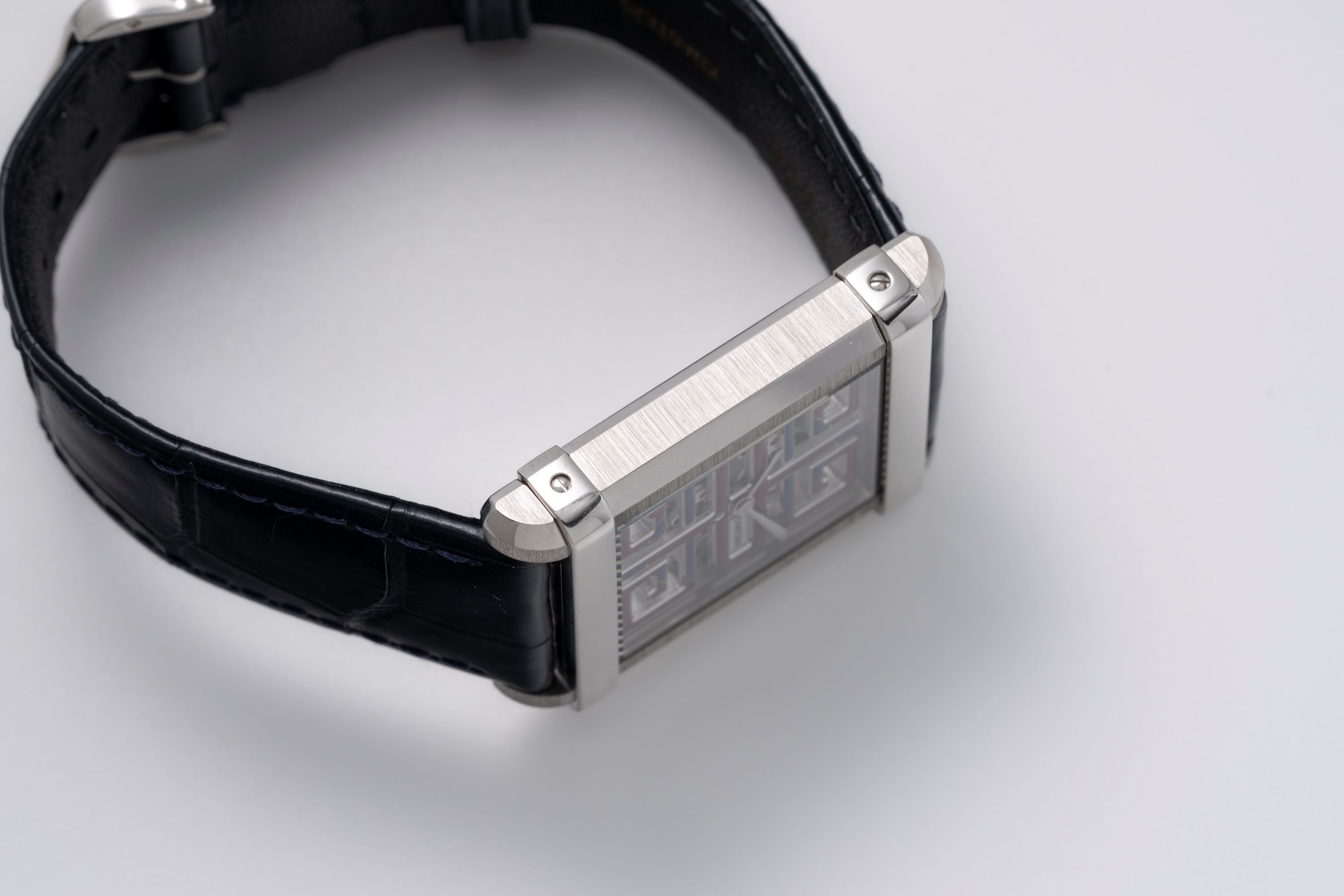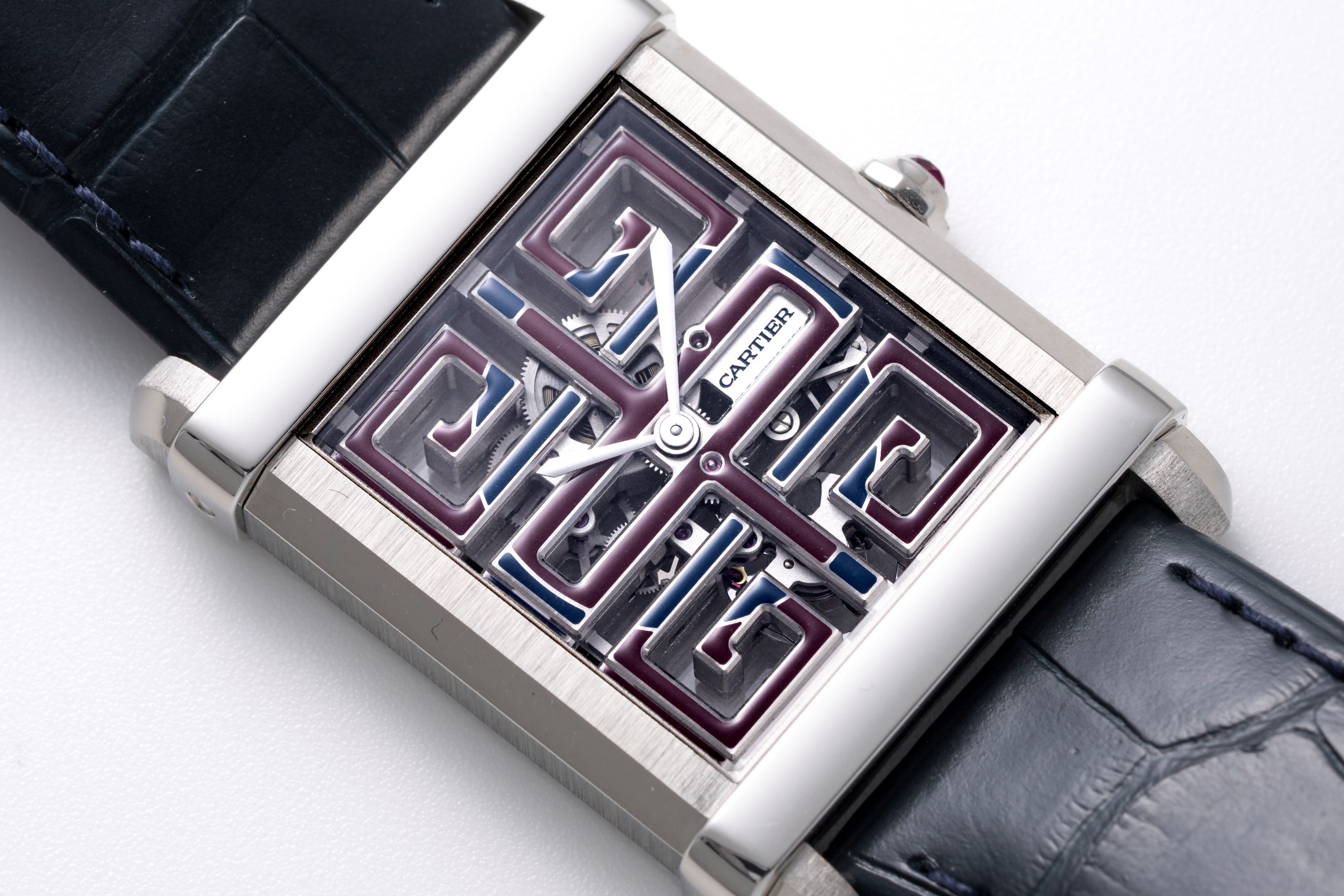 The Cartier Tank Chinoise Skeleton Ref. CRWHTA0015 is a striking contemporary reinterpretation of one of the maison’s most culturally inspired designs. First introduced in 1922, the Tank Chinoise drew from the architectural forms of Ancient Chinese temples and porticos, expressing refinement through geometry and symmetry. The modern skeletonized edition pays tribute to this heritage while showcasing Cartier’s development in mechanical movement manufacturing. The case is entirely made from Platinum and retains the Tank’s iconic shape while reimagining the Chinoise’s signature crossbars with layered horizontal structures that echo the lintels of traditional Chinese gateways. Measuring in at 28 x 39mm, the watch balances presence and elegance, enhanced by brushed and polished surfaces as well as characteristic architectural lines.