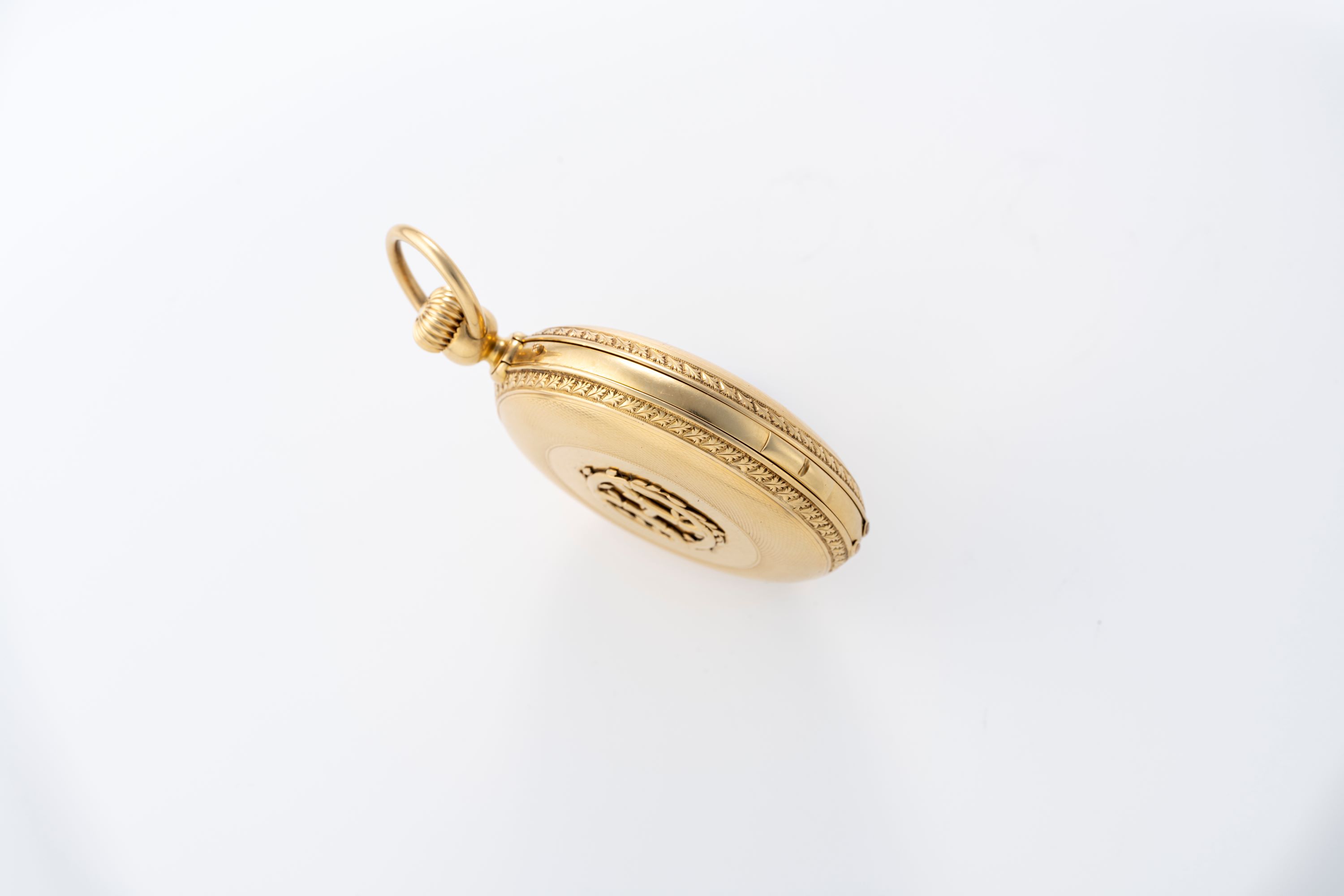This Le Roy & Fils minute repeater with dead-beat seconds, built on a Louis Audemars base caliber and housed in an 18k yellow-gold hunter case, offers an attractive set of specifications. It brings together two admired complications rarely found in a single watch: a minute repeater mechanism that chimes the hours, quarters and minutes on demand, and an independent dead-beat second that showcases high-precision chronometric engineering from the 19th-century. The movement’s Louis Audemars origin adds significant historical value, as the firm was one of the most respected suppliers of complicated ébauches to major maisons of the era. The gold case, with its classic proportions and hand-engraved detailing, reflects the refined aesthetics of high-grade pocket watches of the period. Its enamel dial with Roman numerals and central seconds maintains excellent legibility and period charm. As a whole, the watch combines mechanical sophistication, historical pedigree, and elegant craftsmanship, making it an attractive acquisition for collectors of early complications and lovers of finely made repeating watches.