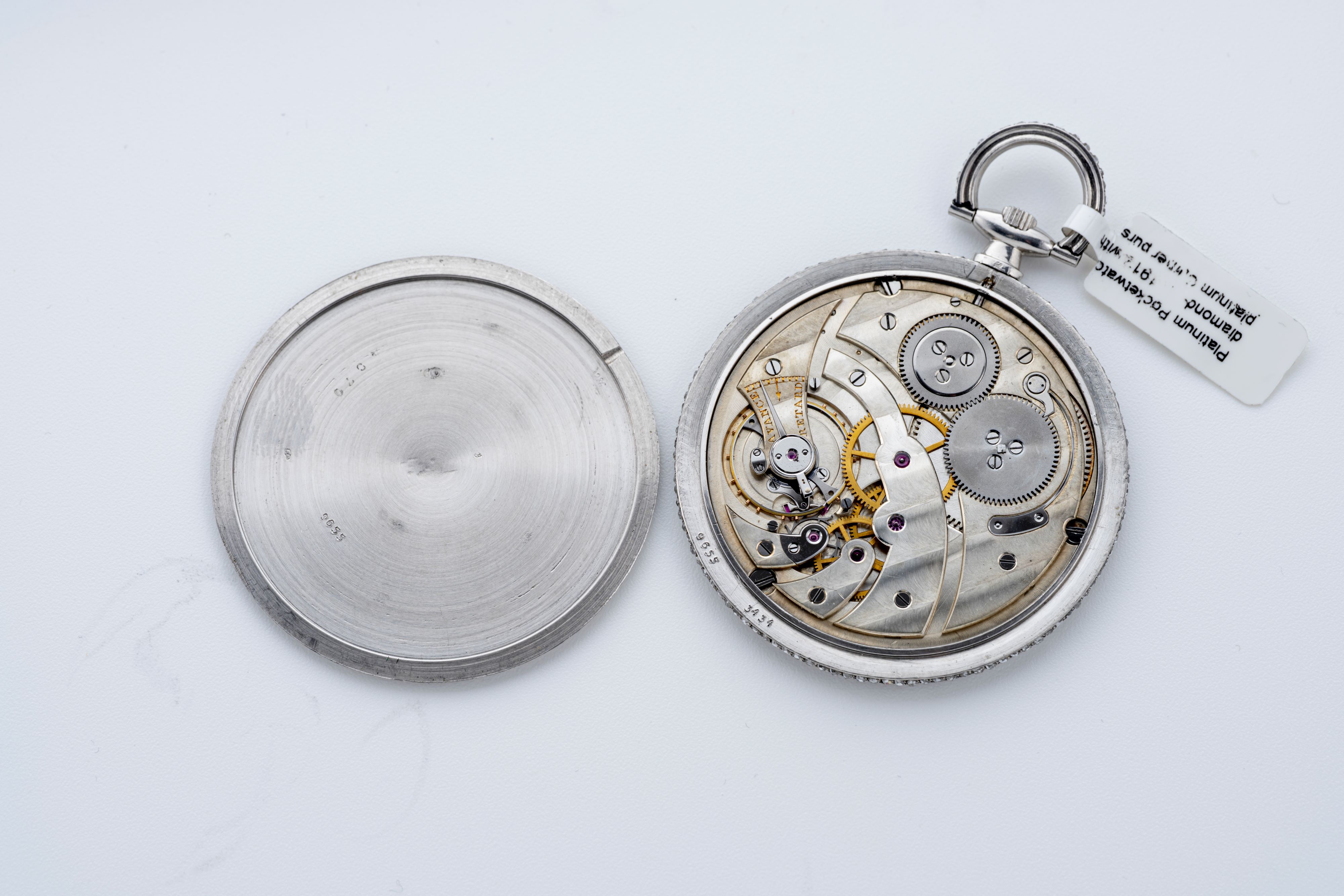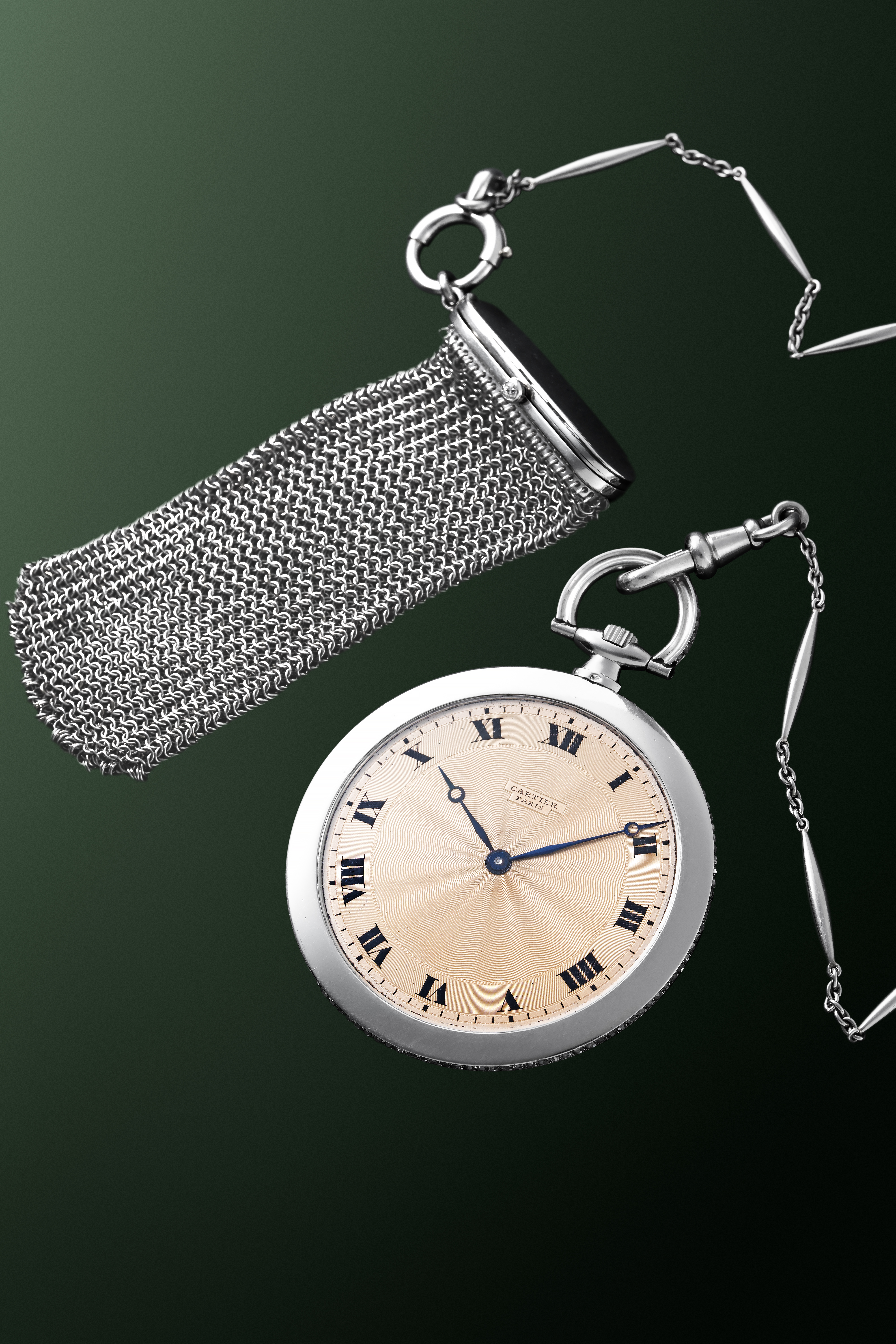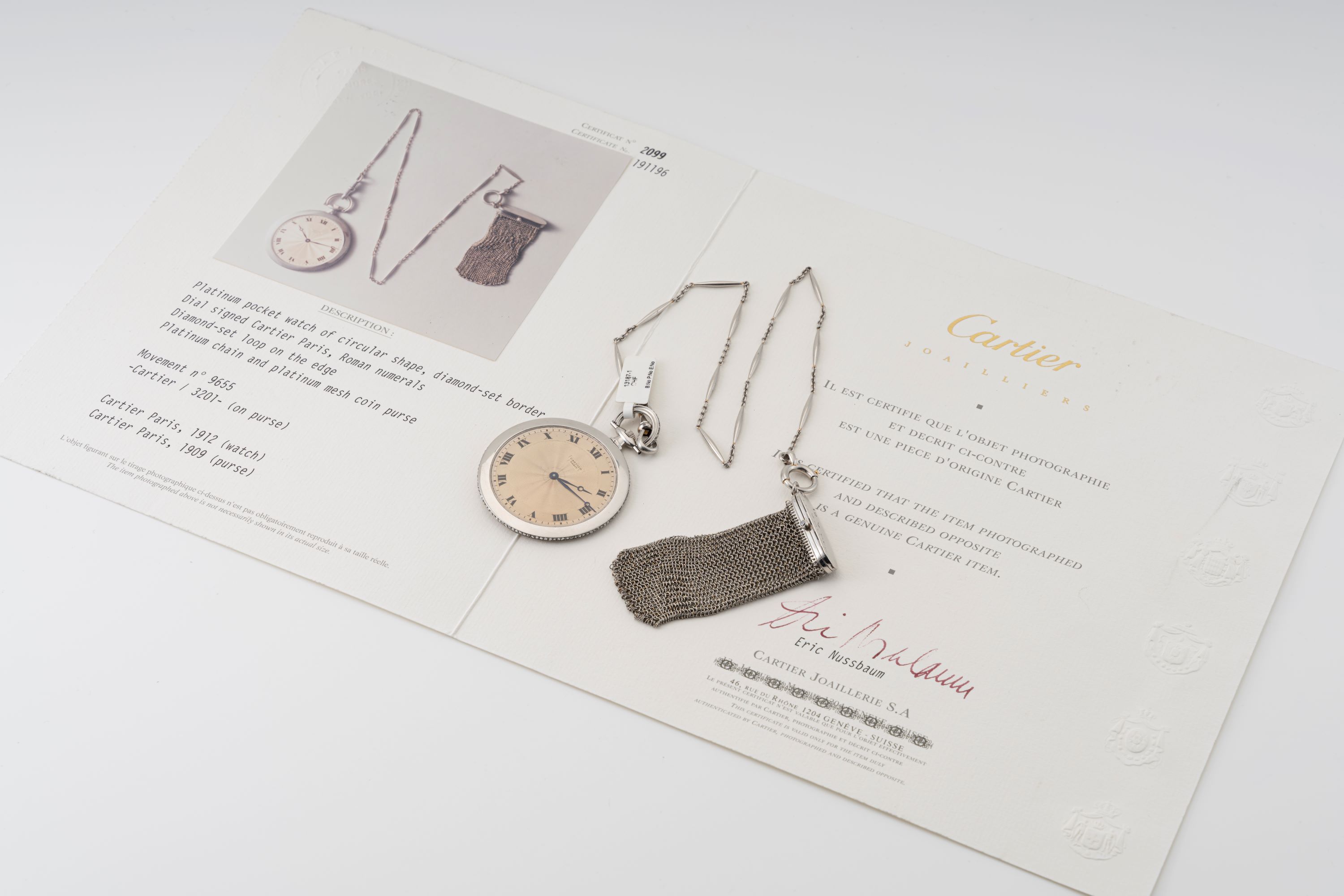 Platinum Pocketwatch diamond-set 1912 with platinum Cartier purse
