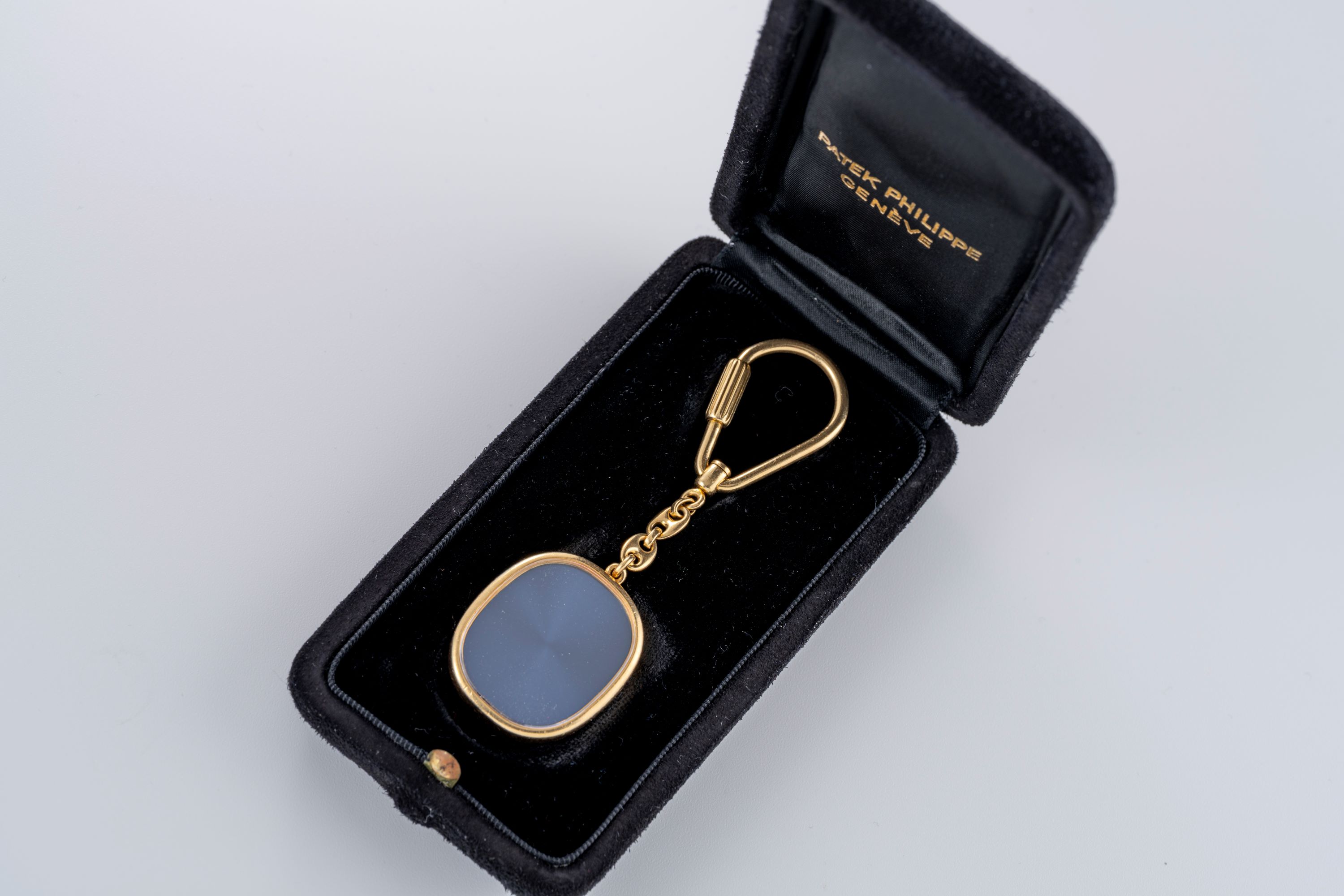 This set of Patek Philippe Ellipse cufflinks and keychain presents a chance to acquire original accessories from one of the most respected Swiss watchmakers to go alongside the famous Ellipse D’Or dress watch line. The Ellipse design follows the same proportions used in the wristwatch, linking the set directly to Patek Philippe’s core design identity. The pieces are made entirely of solid 18k gold, giving them lasting value and durability. Sets like this were produced in limited numbers and are not often found complete. For collectors of Patek Philippe or those looking for a well-made formal accessory set, this one offers a nice opportunity.