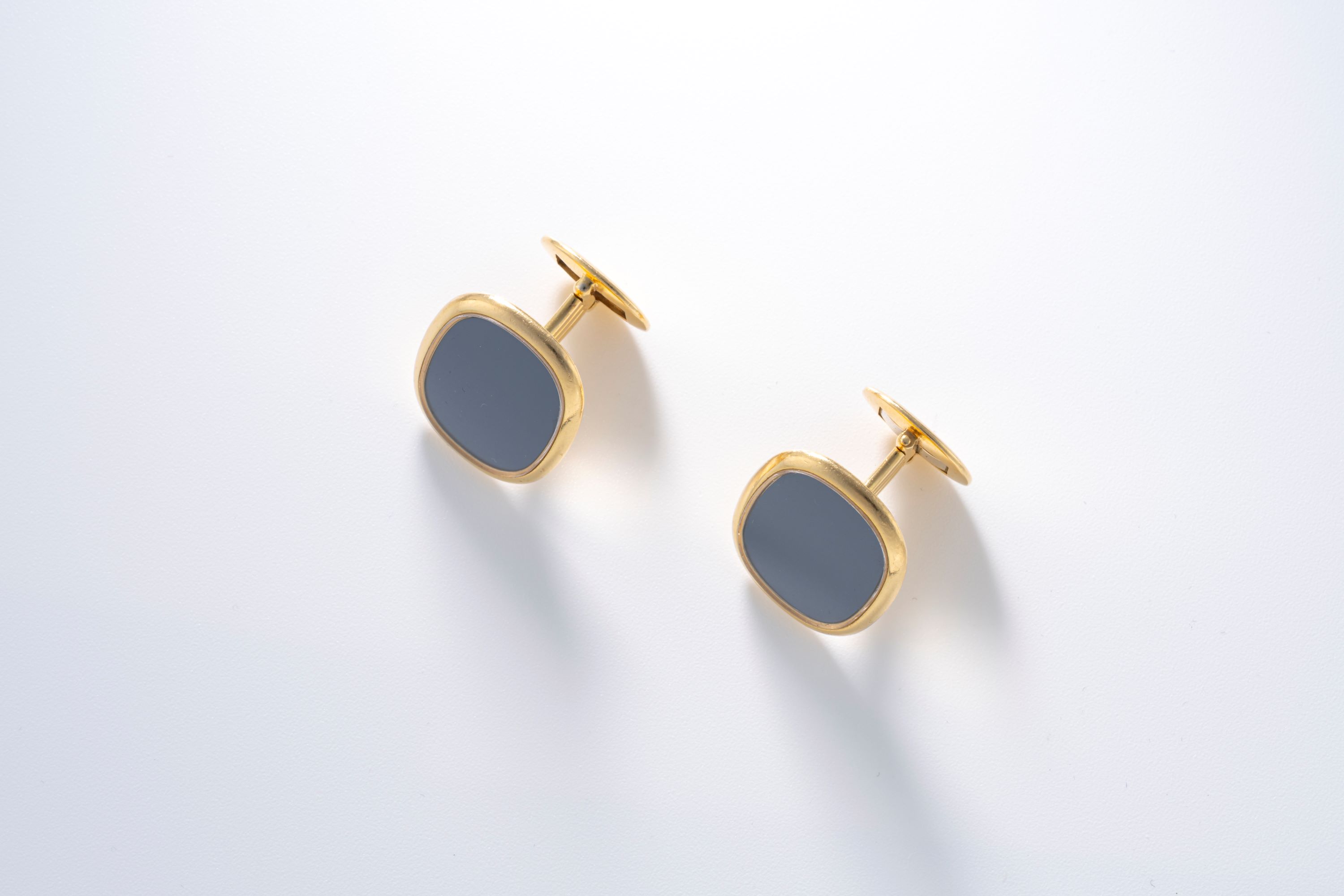 AccessoriesEllipse Cufflinks and Keychain with blue inlays in 18k Yellow Gold