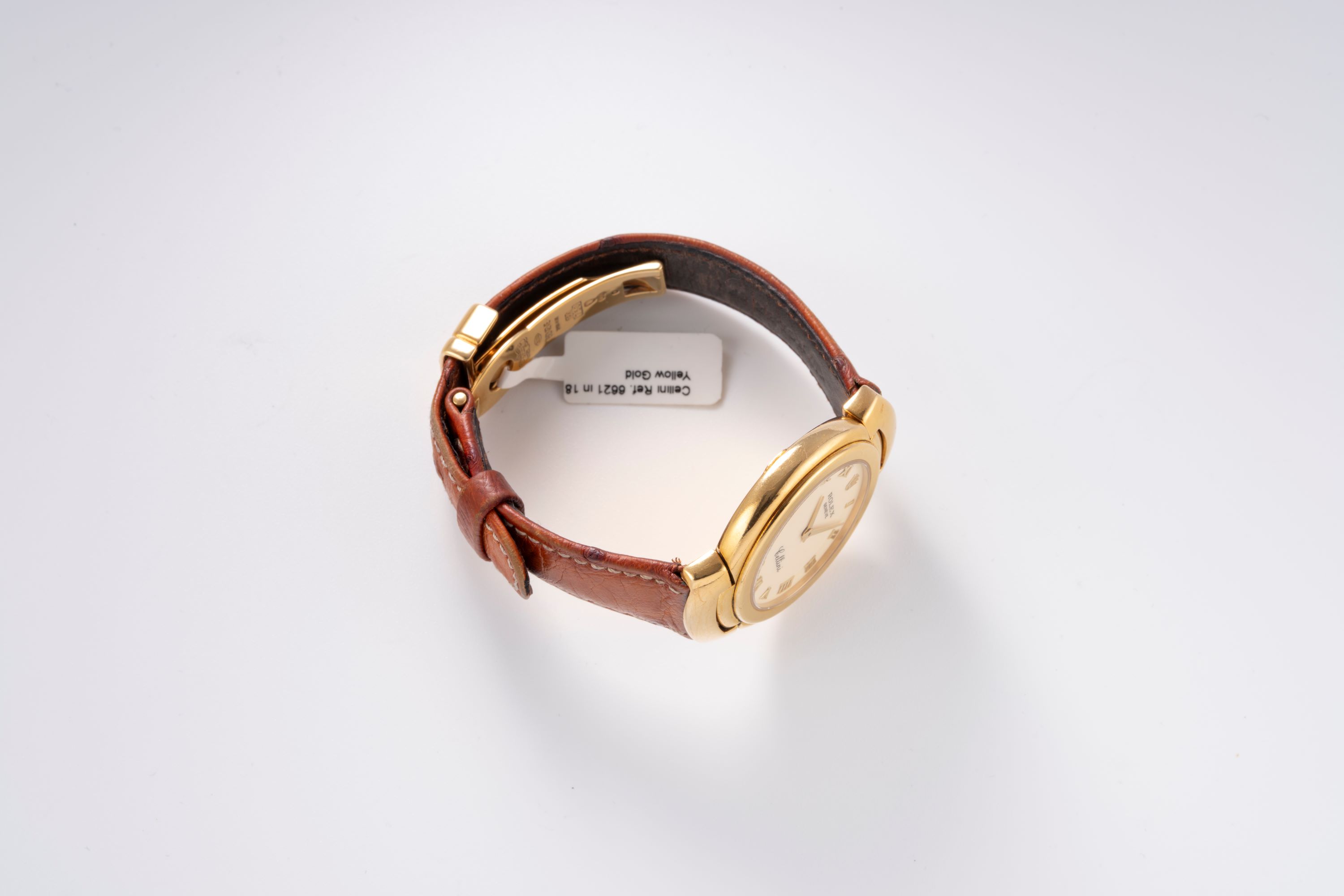 CaseRound case in 18k yellow gold with lug system, crown at 3 o'clock, solid caseback