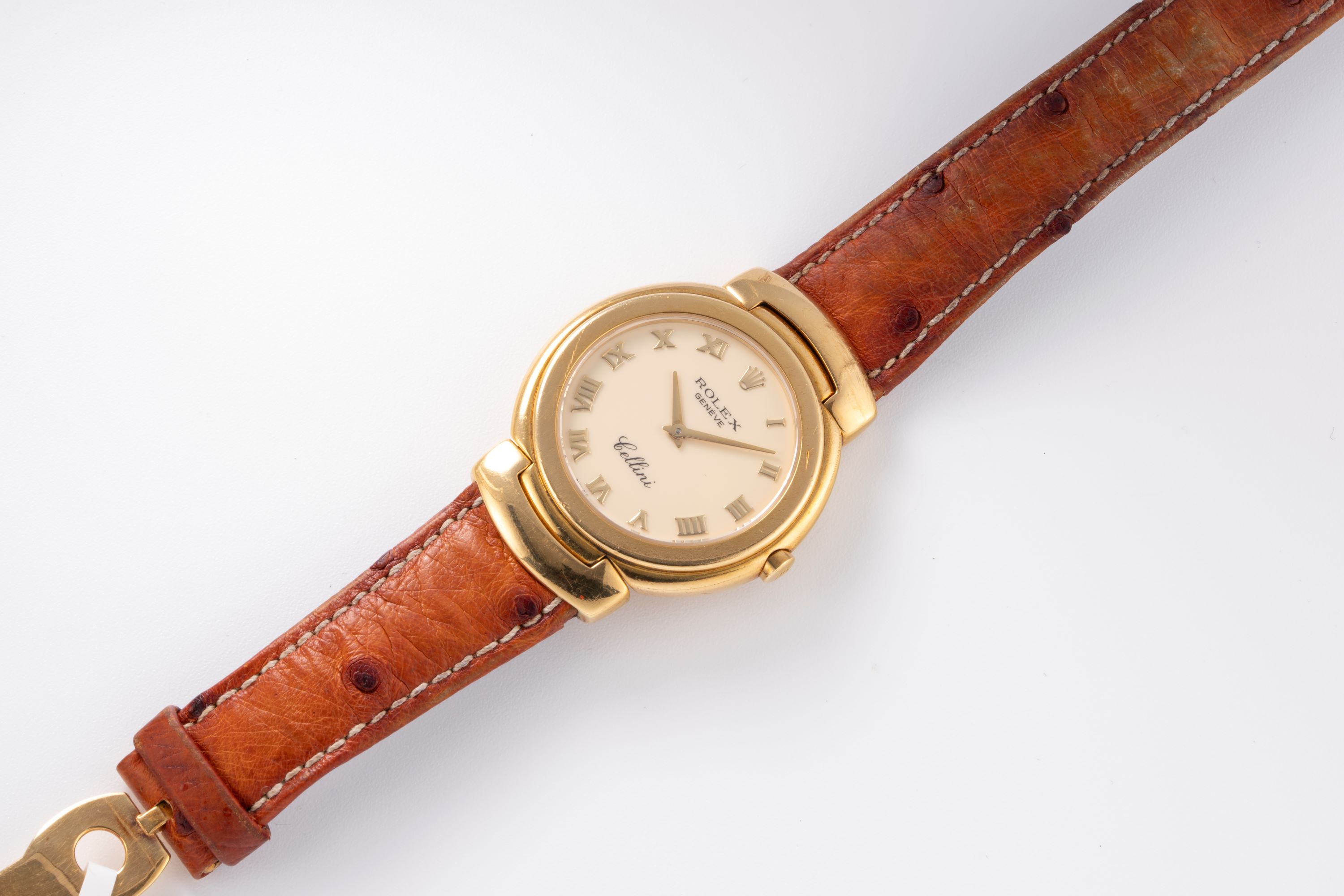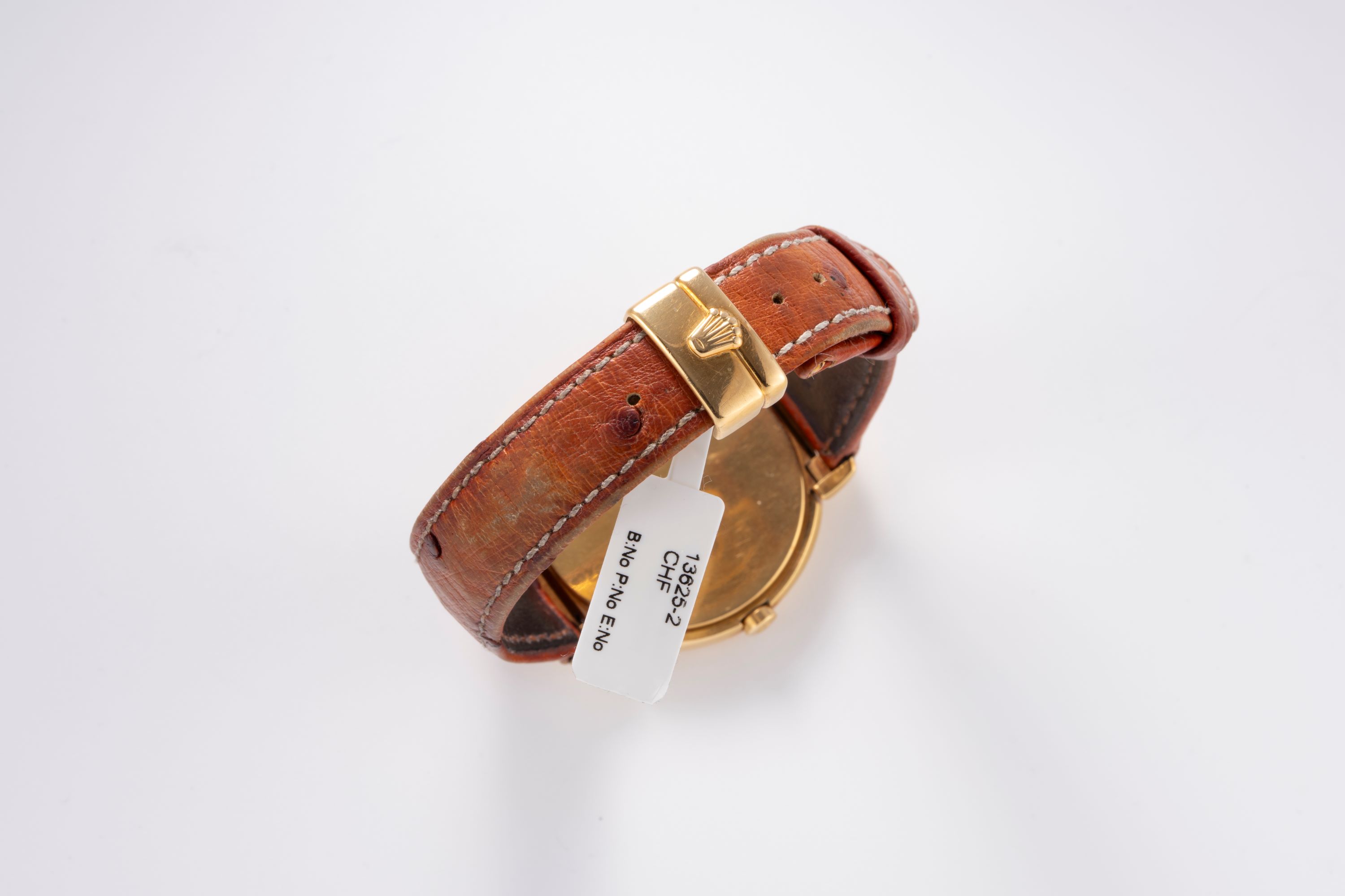DialCream lacquer dial with applied Roman numerals, gold hands, signed 'Rolex' at 12 o'clock