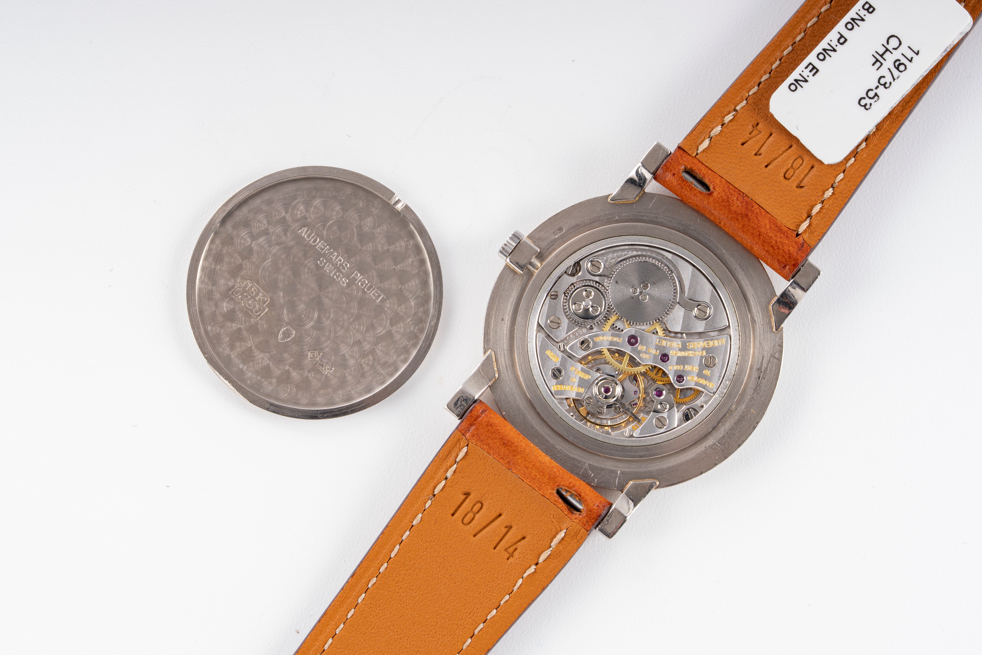 DialSilver-white dial with printed indices, stick white gold hands, signed 'Audemars Piguet' at 12 o'clock