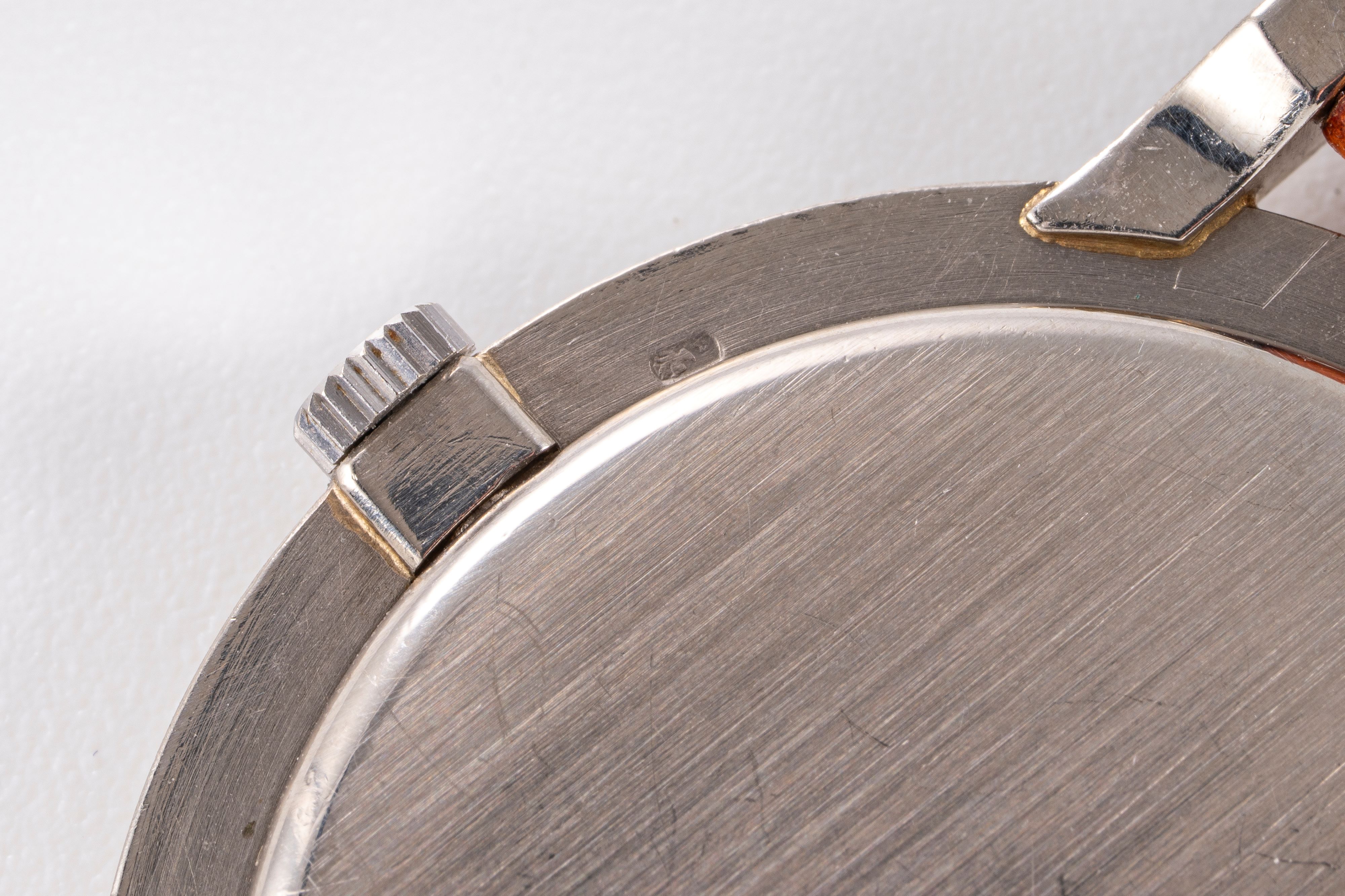 CaseRound case in 18k white gold with winding crown at 3 o'clock, solid caseback