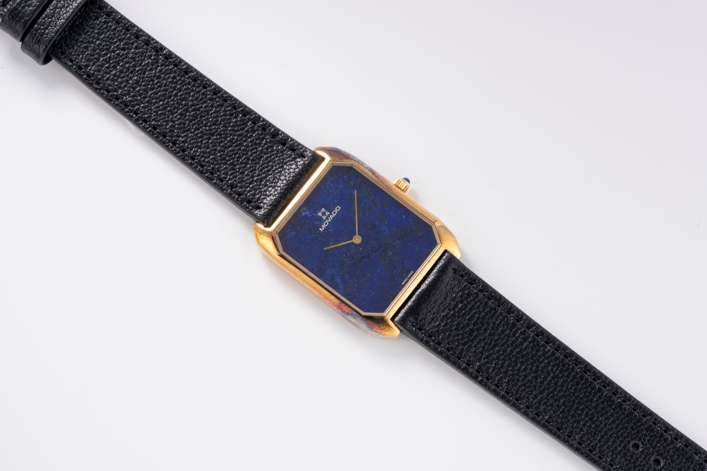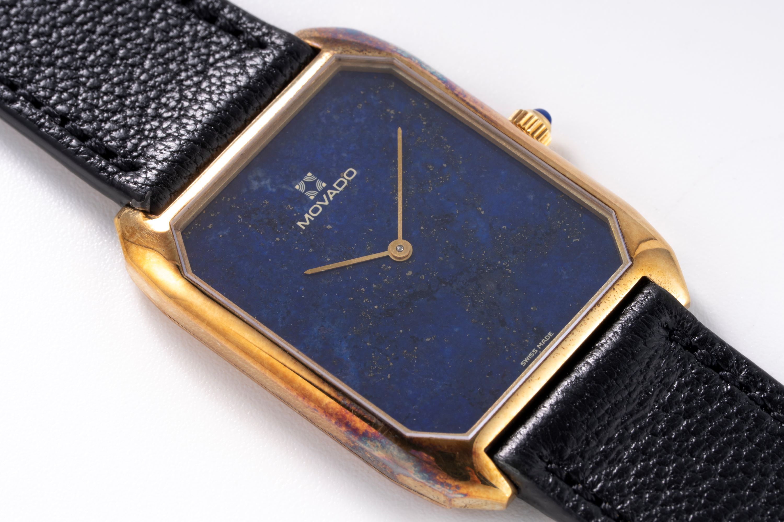 DialLapis Lazuli dial with gold hands, signed 'Movado' at 12 o'clock