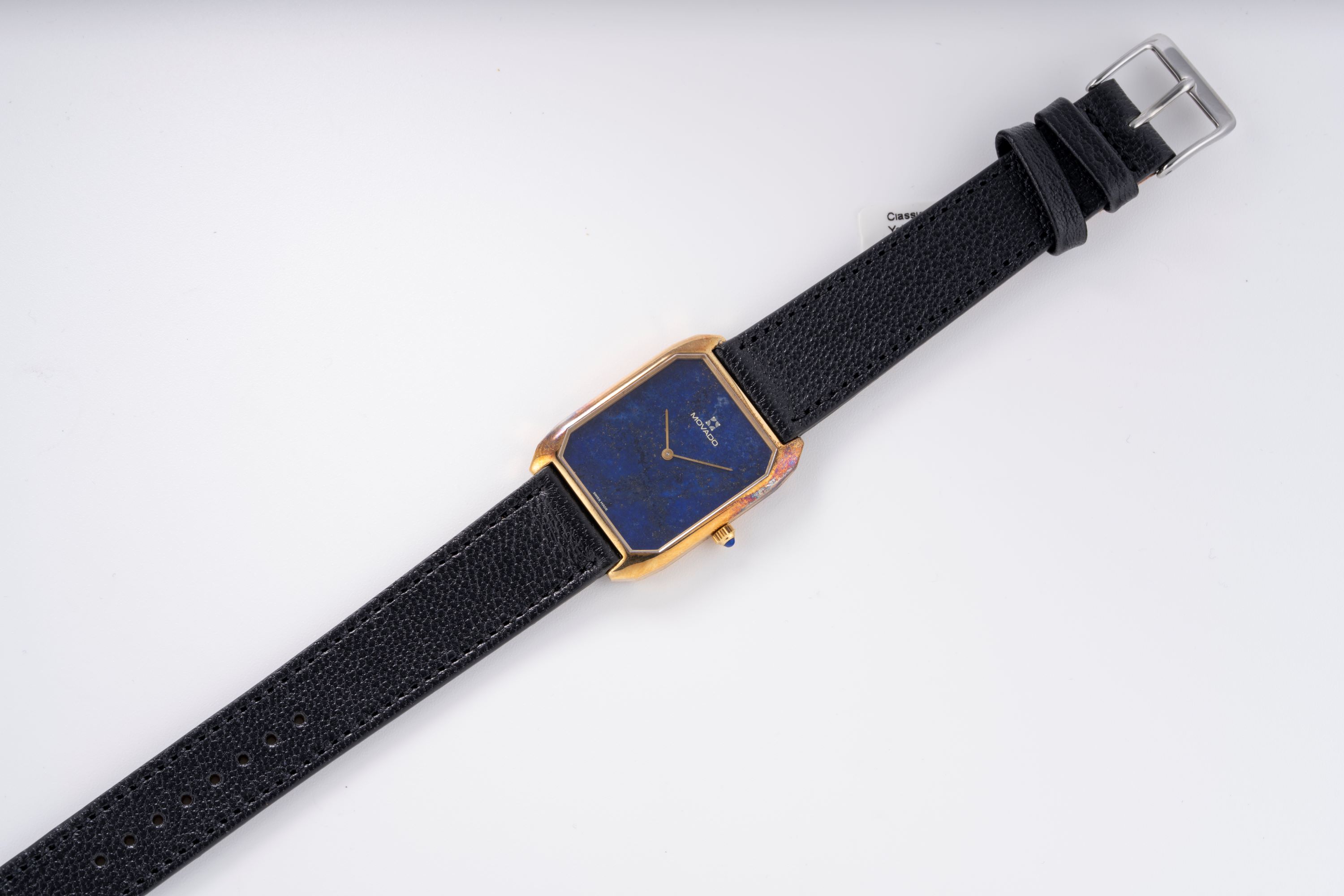 Angular Tank with Lapis Lazuli Dial in 14k Yellow Gold