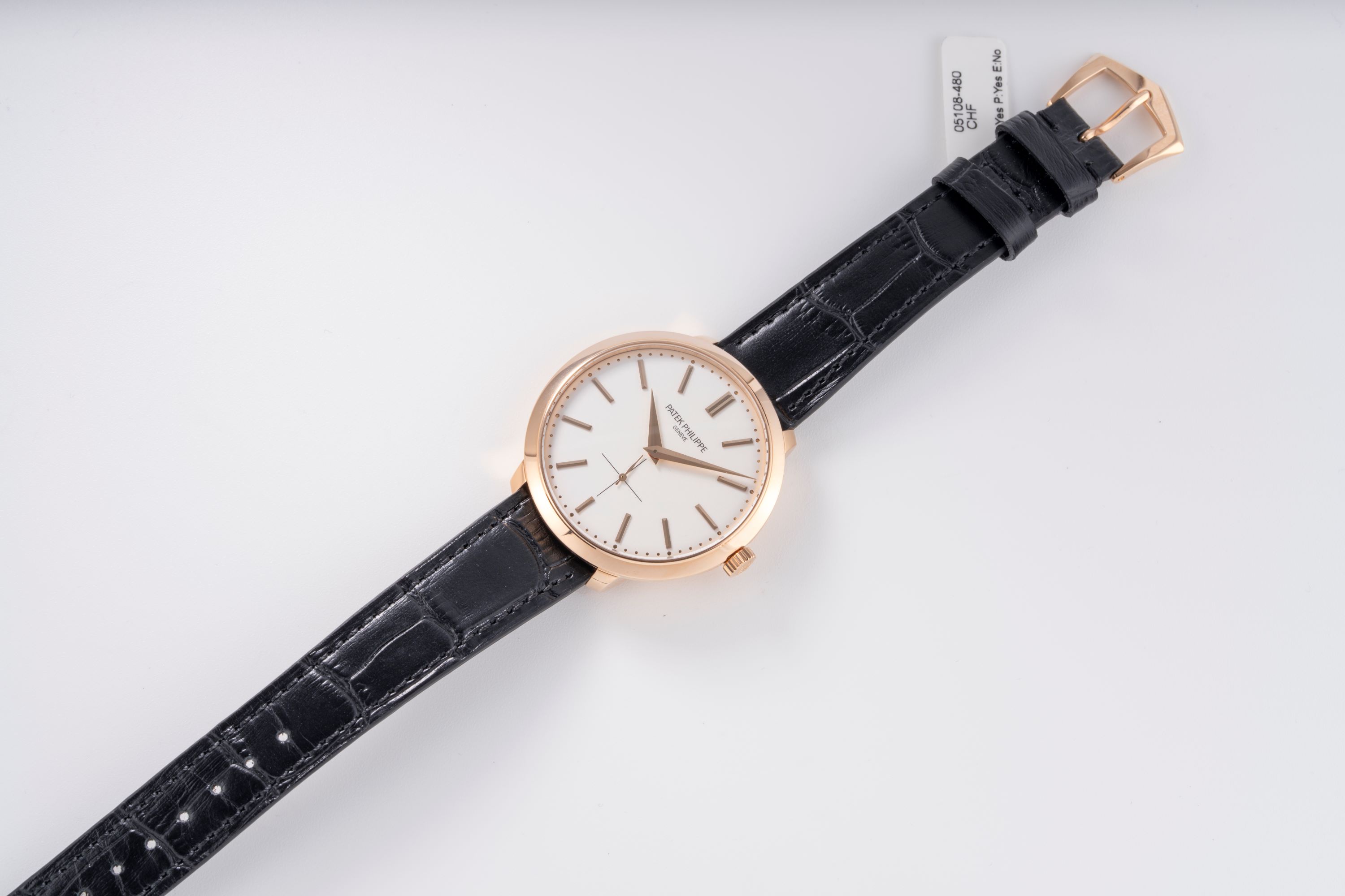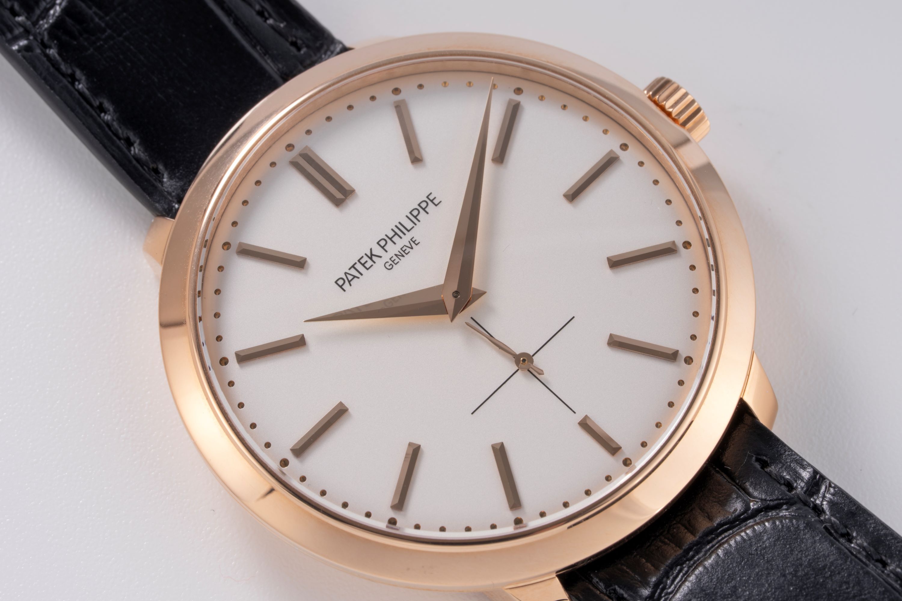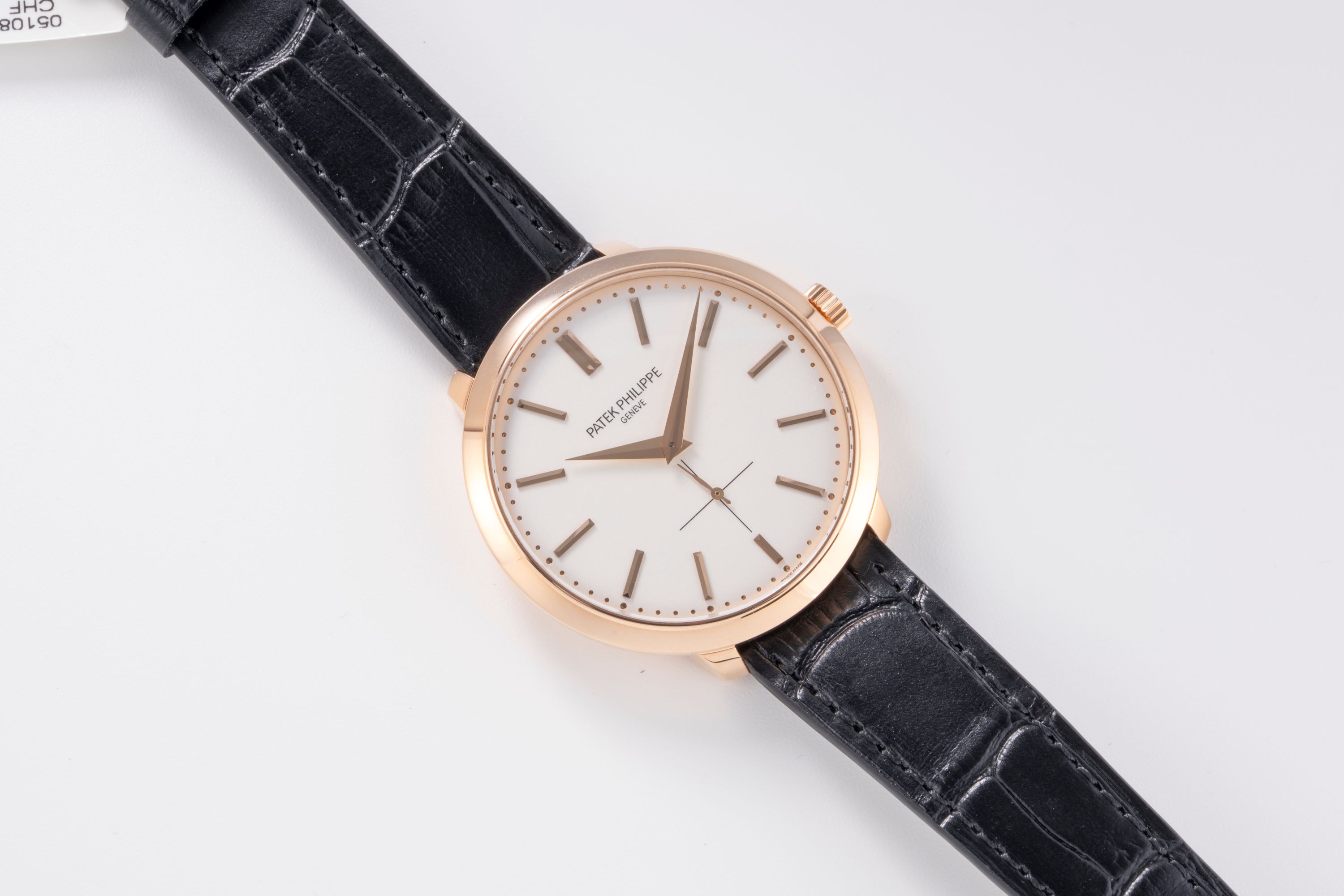 DialSilver dial with applied rose gold indices, rose gold hands, small seconds at 6 o'clock, signed 'Patek Philippe' at 12 o'clock