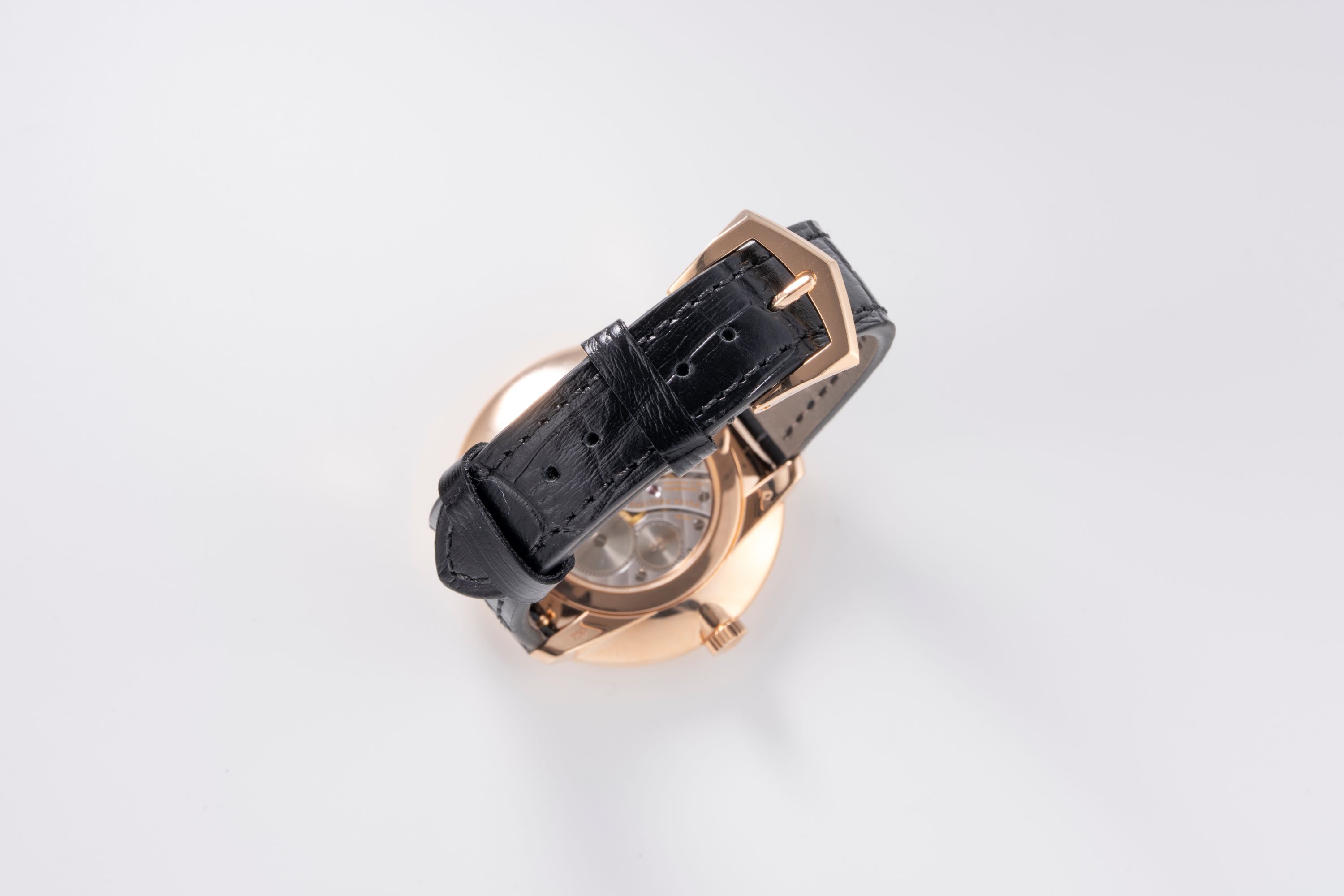 StrapBlack alligator leather strap with pin buckle in 18k rose gold