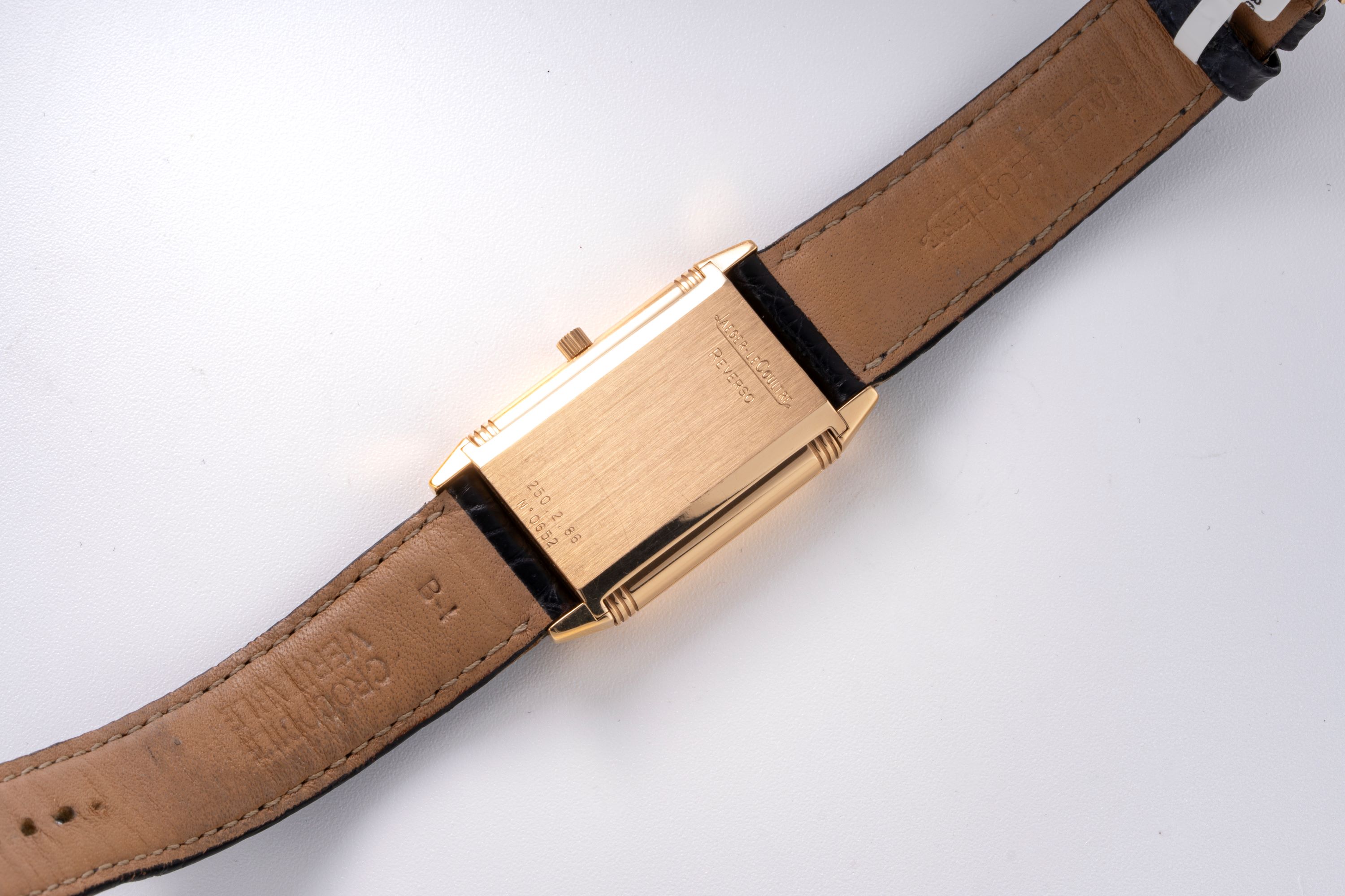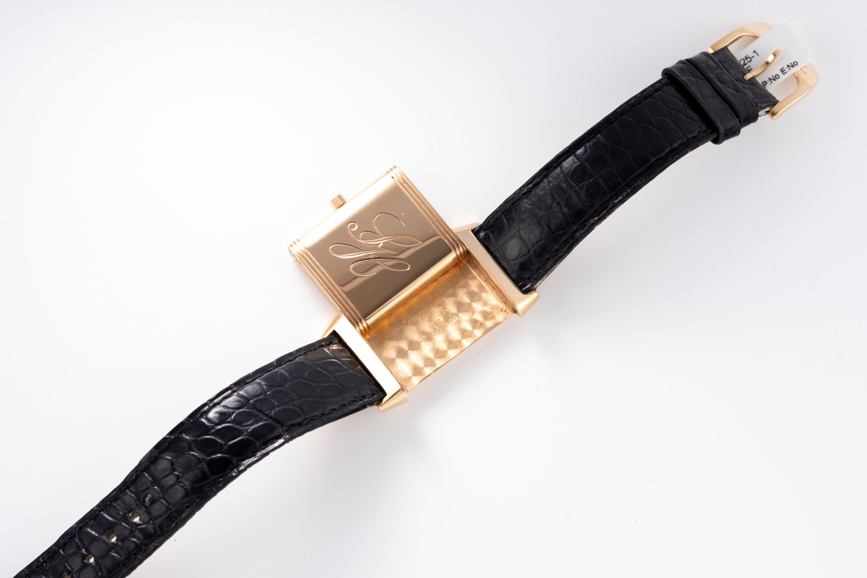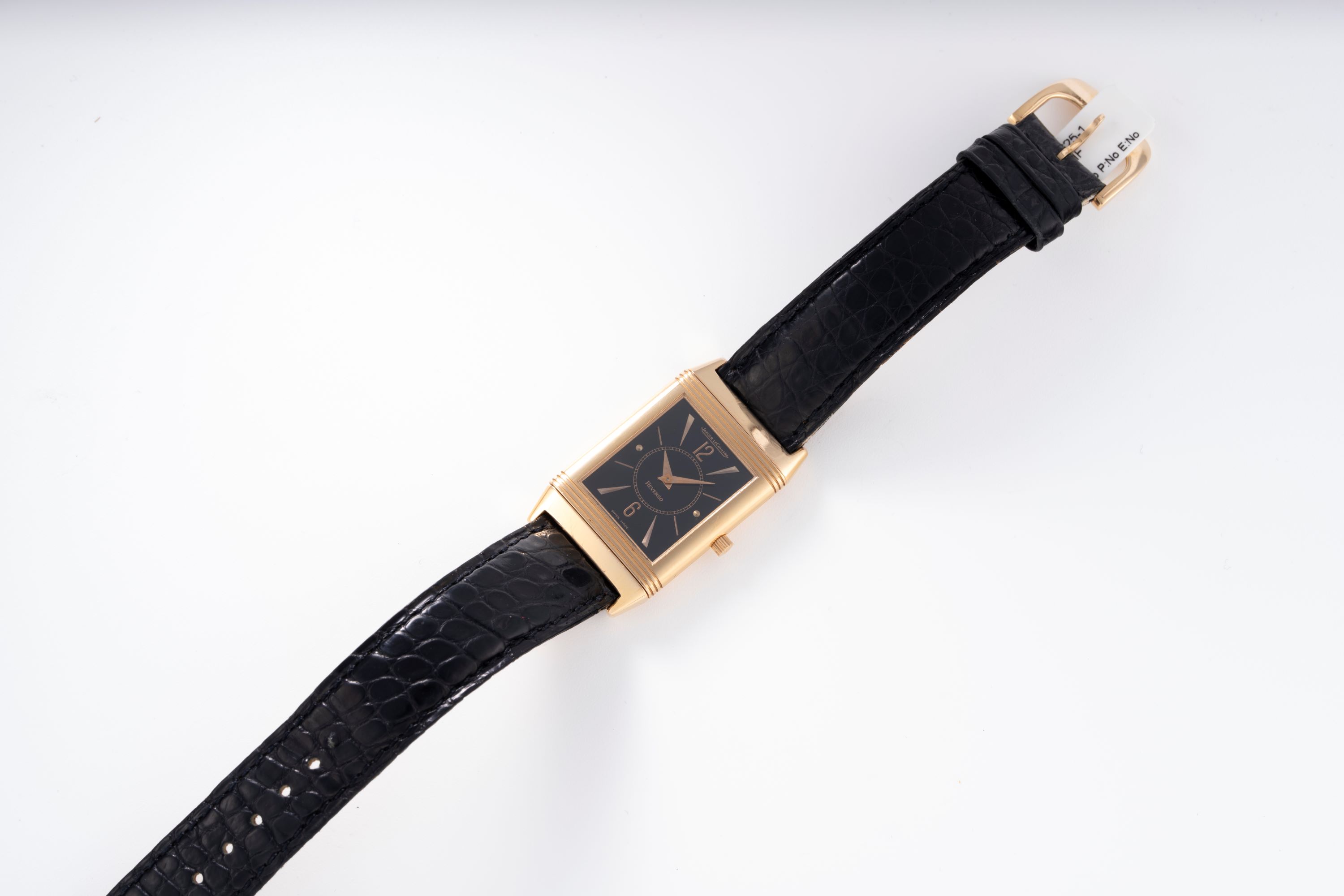 StrapBlack crocodile leather strap with JLC pin buckle in 18k rose gold