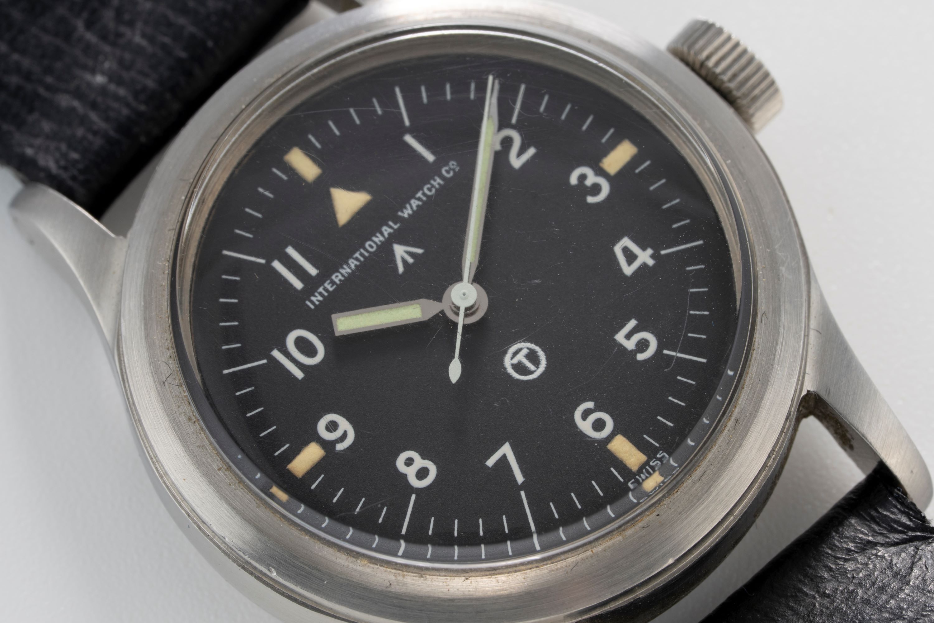 DialMatte black dial with luminous indices and luminous hands (re-lumed), signed 'International Watch Co.' at 12 o'clock, Military symbols printed onto the dial