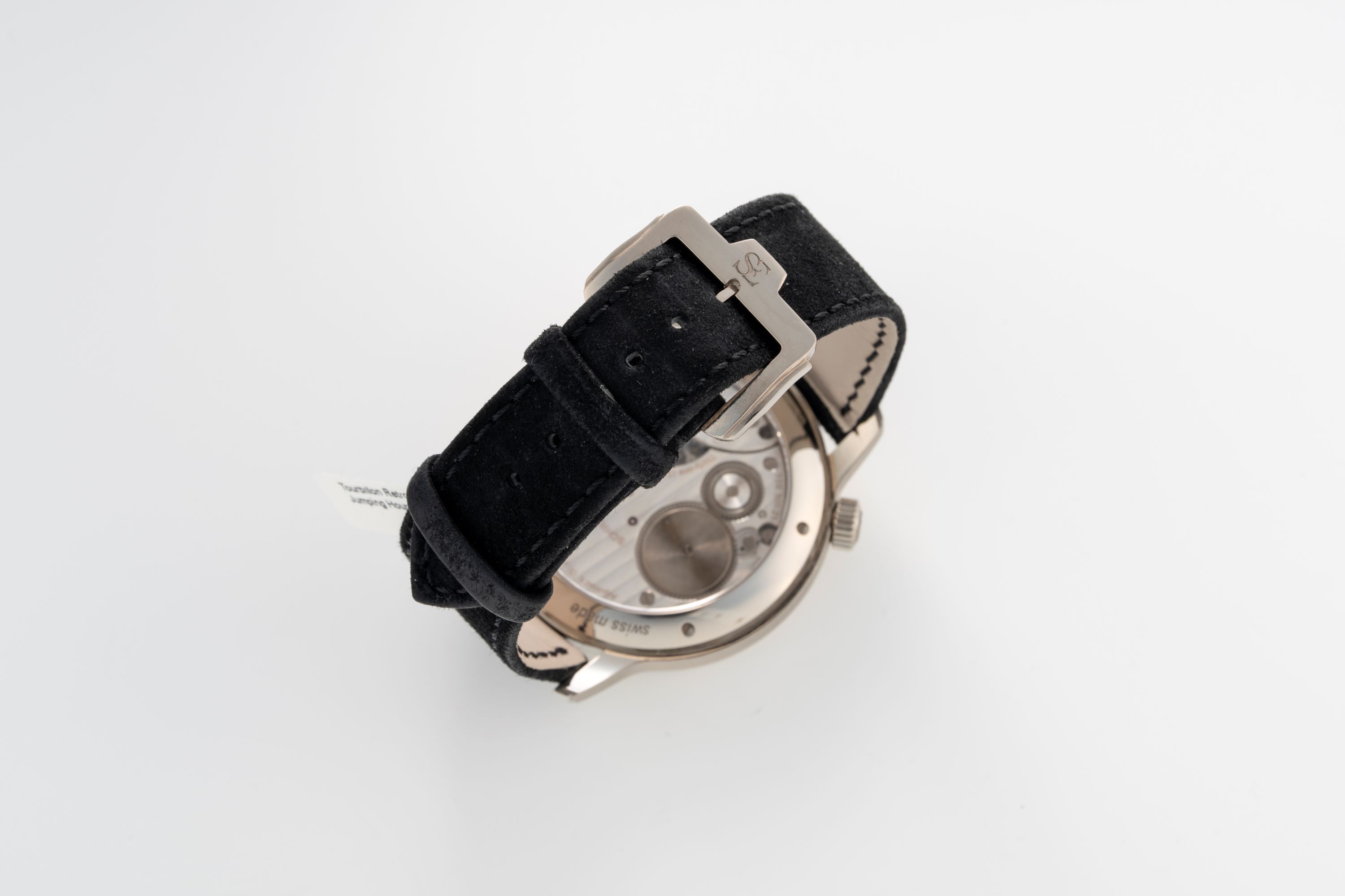 StrapBlack suede leather strap with pin buckle in 18k white gold