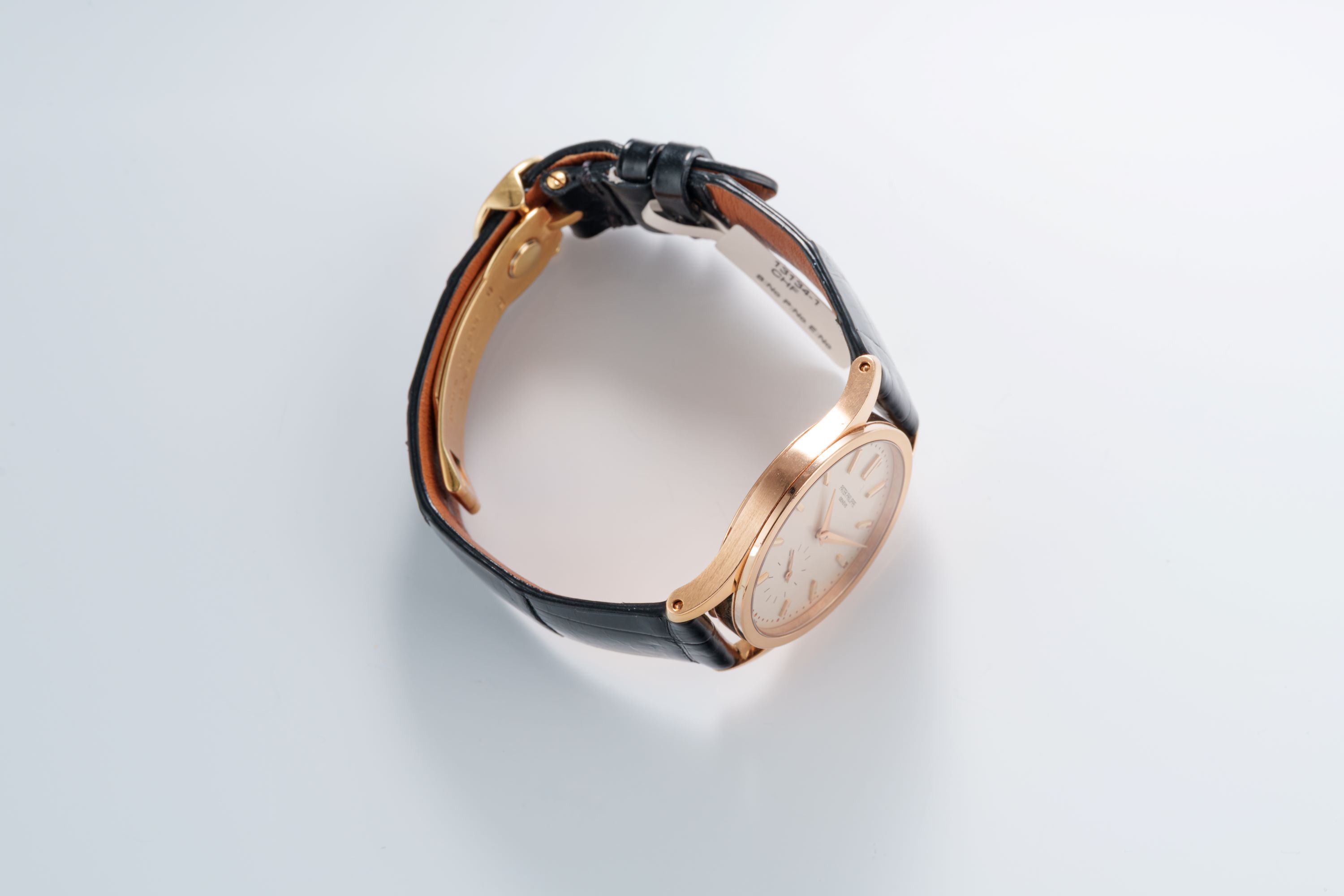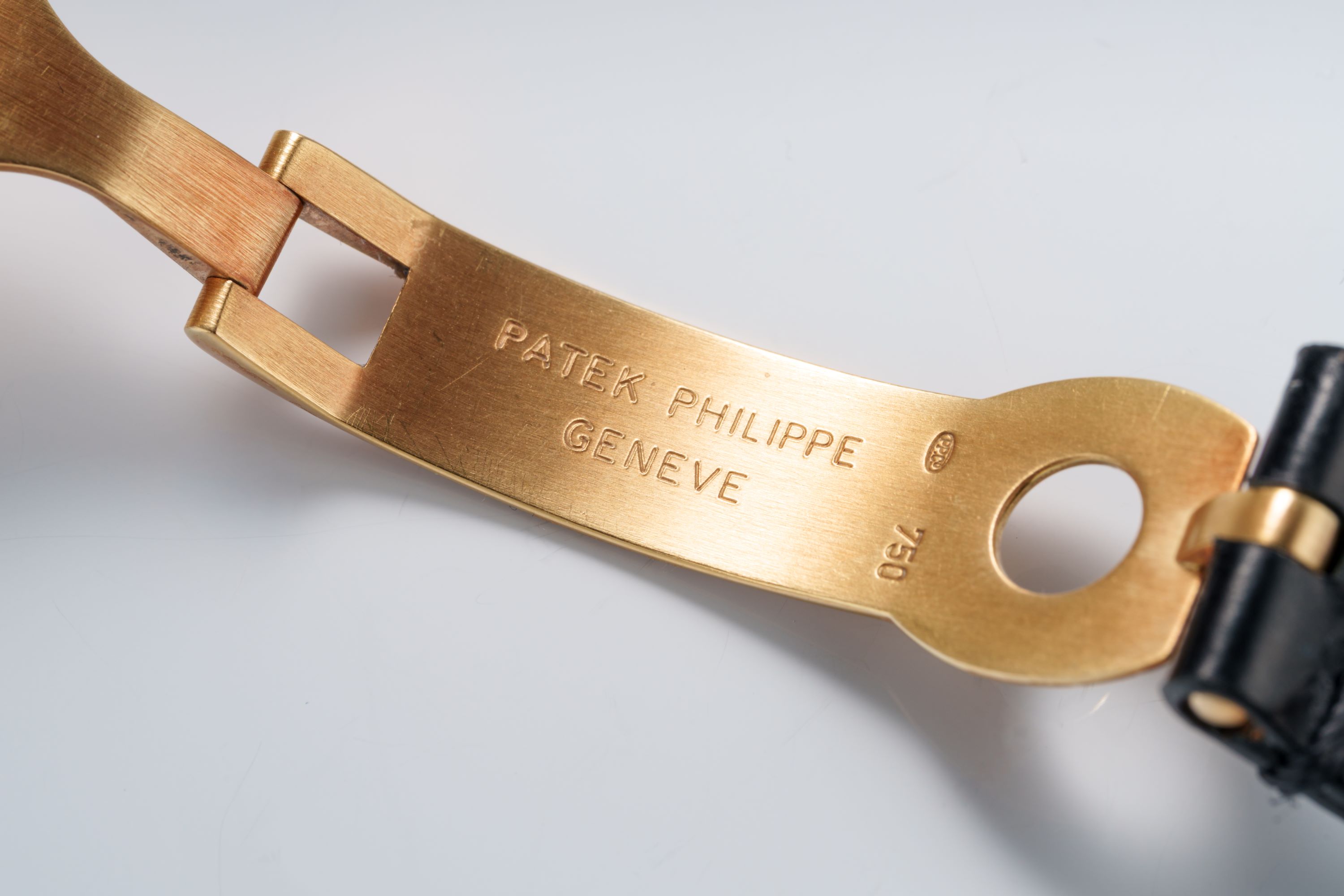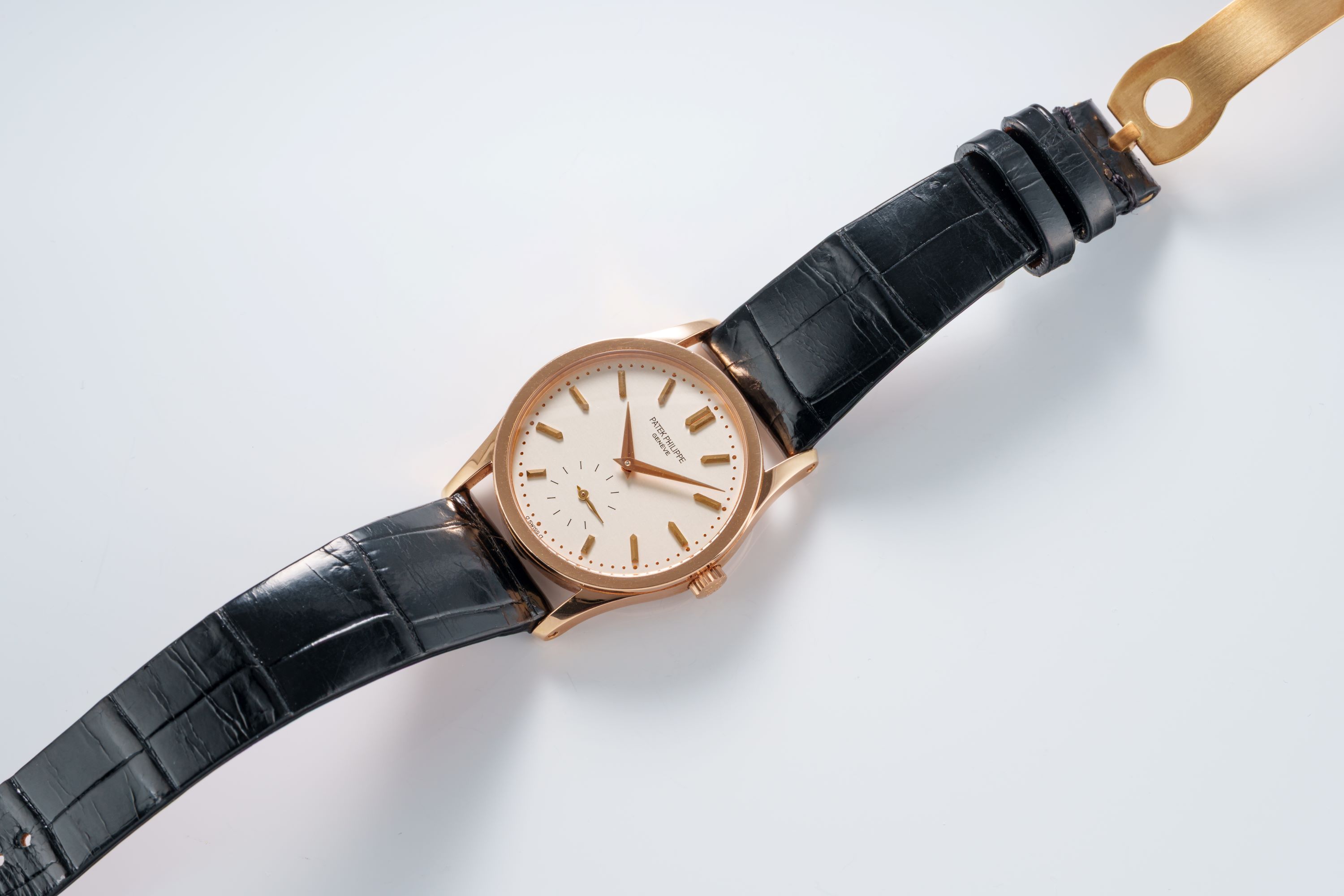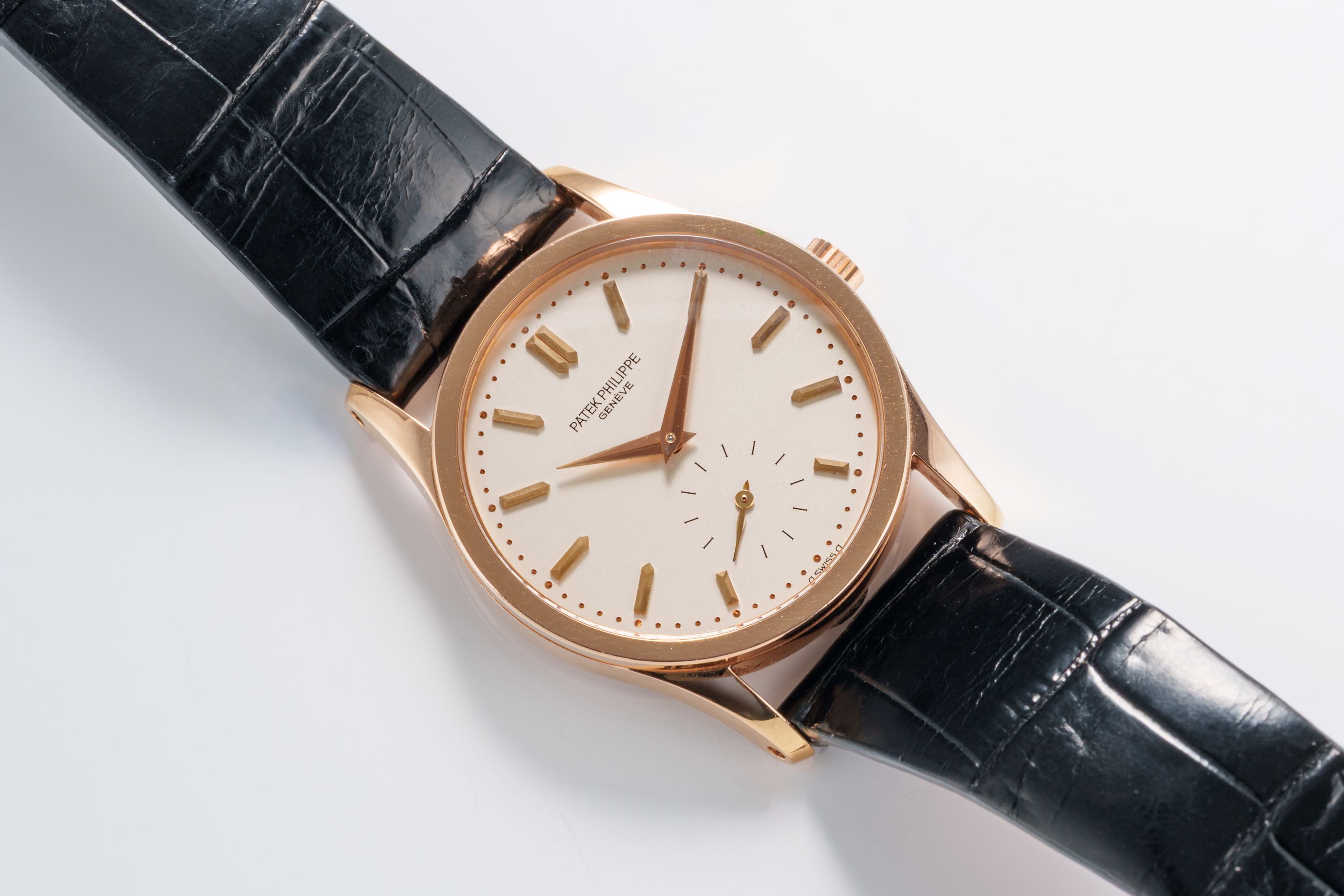 DialSilver-white dial with applied rose gold indices, rose gold dauphine hands, small seconds at 6 o'clock, signed 'Patek Philippe' at 12 o'clock