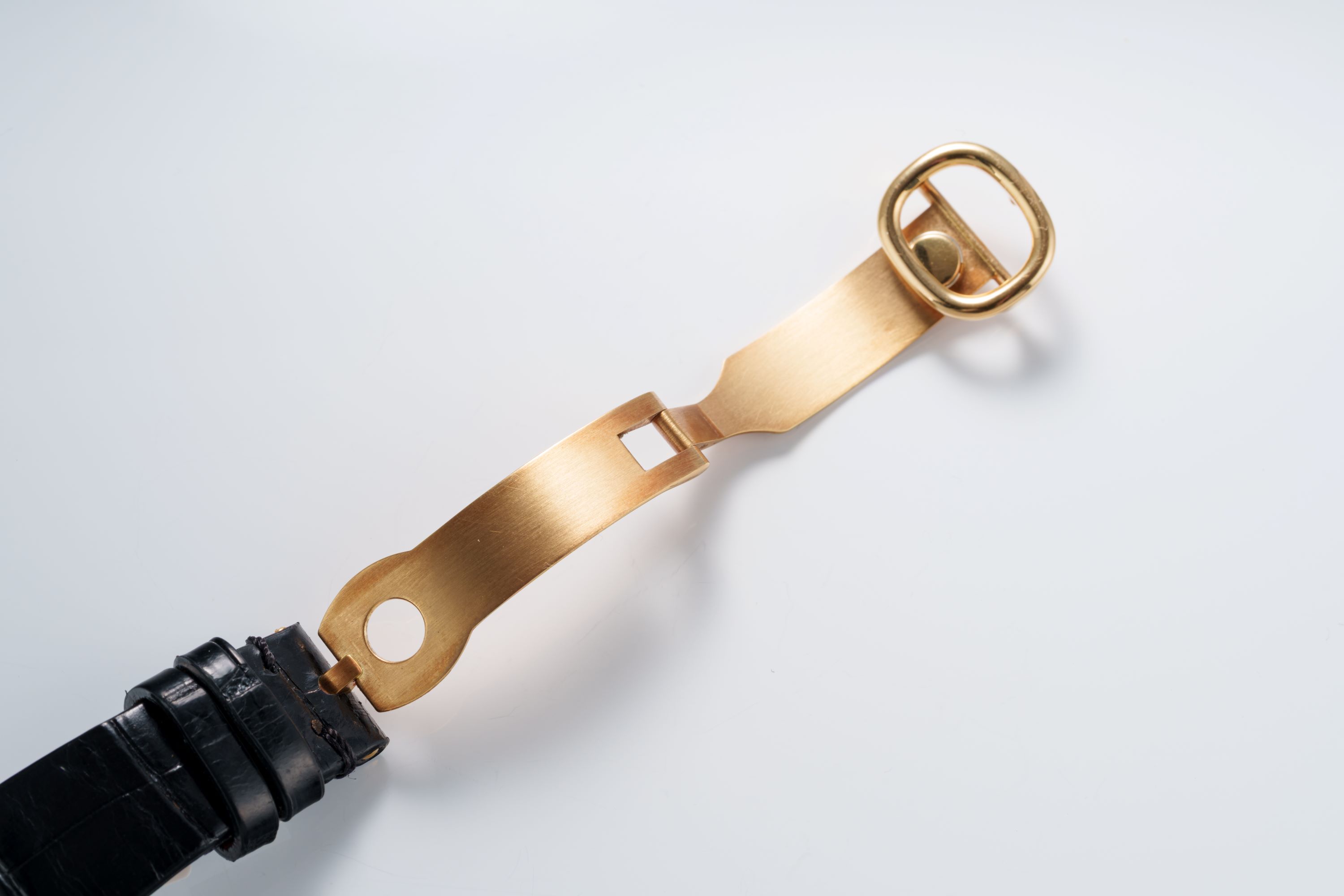StrapBlack alligator leather strap with Patek Philippe Ellipse deployant clasp in 18k yellow gold