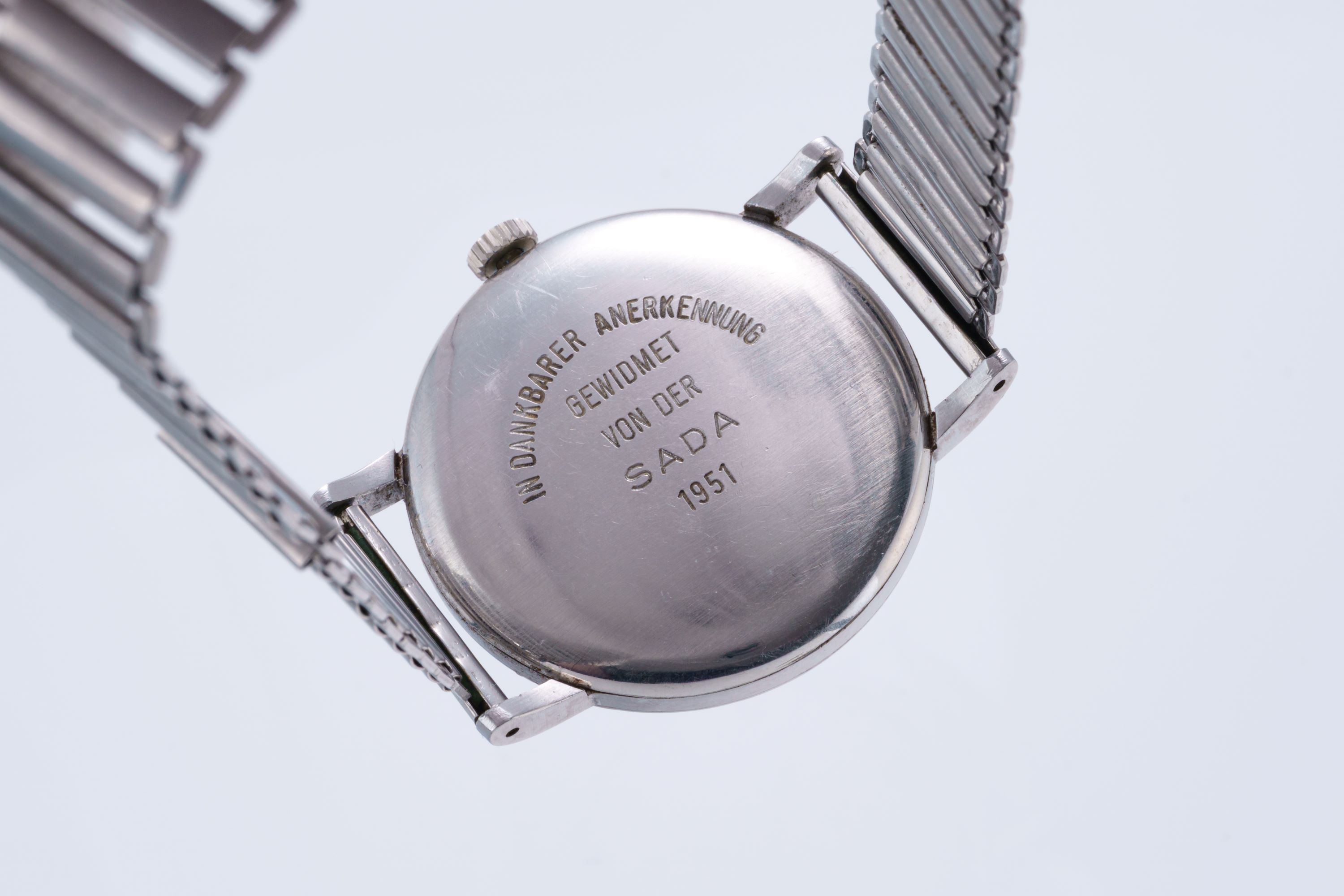 MovementHand-wound mechanical movement, functions: hours, minutes, seconds