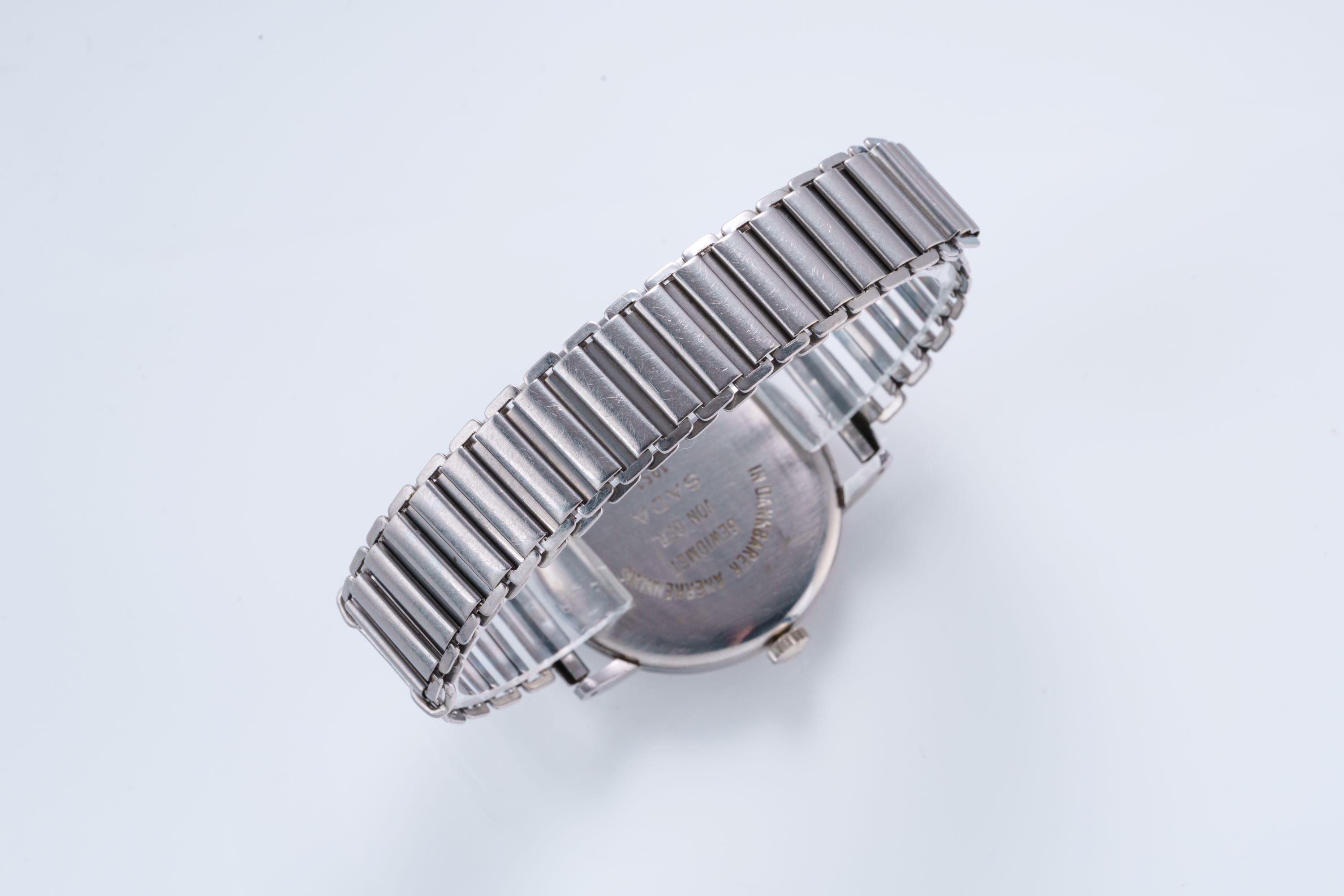 CaseRound case in stainless steel with winding crown at 3 o'clock, solid caseback