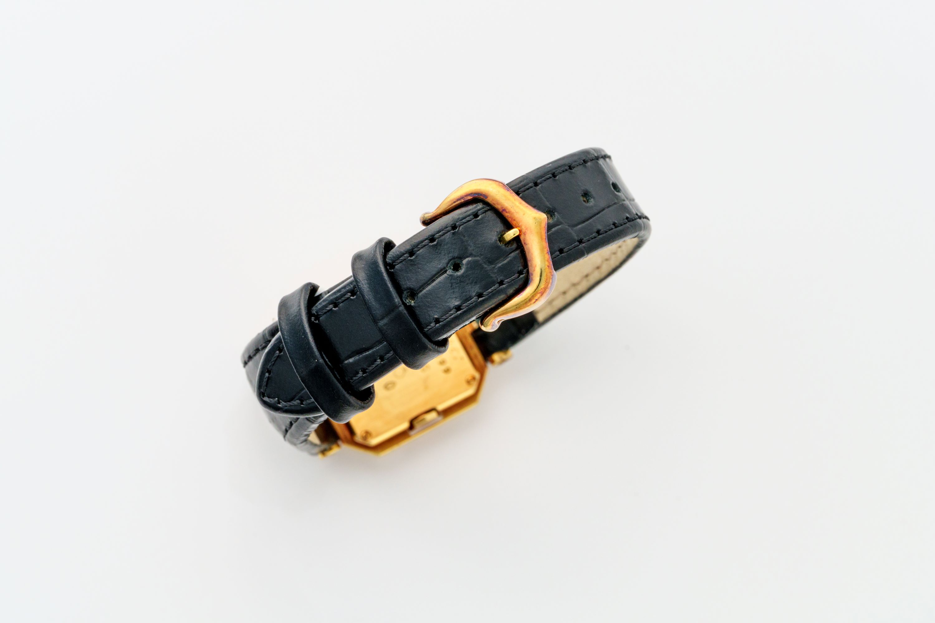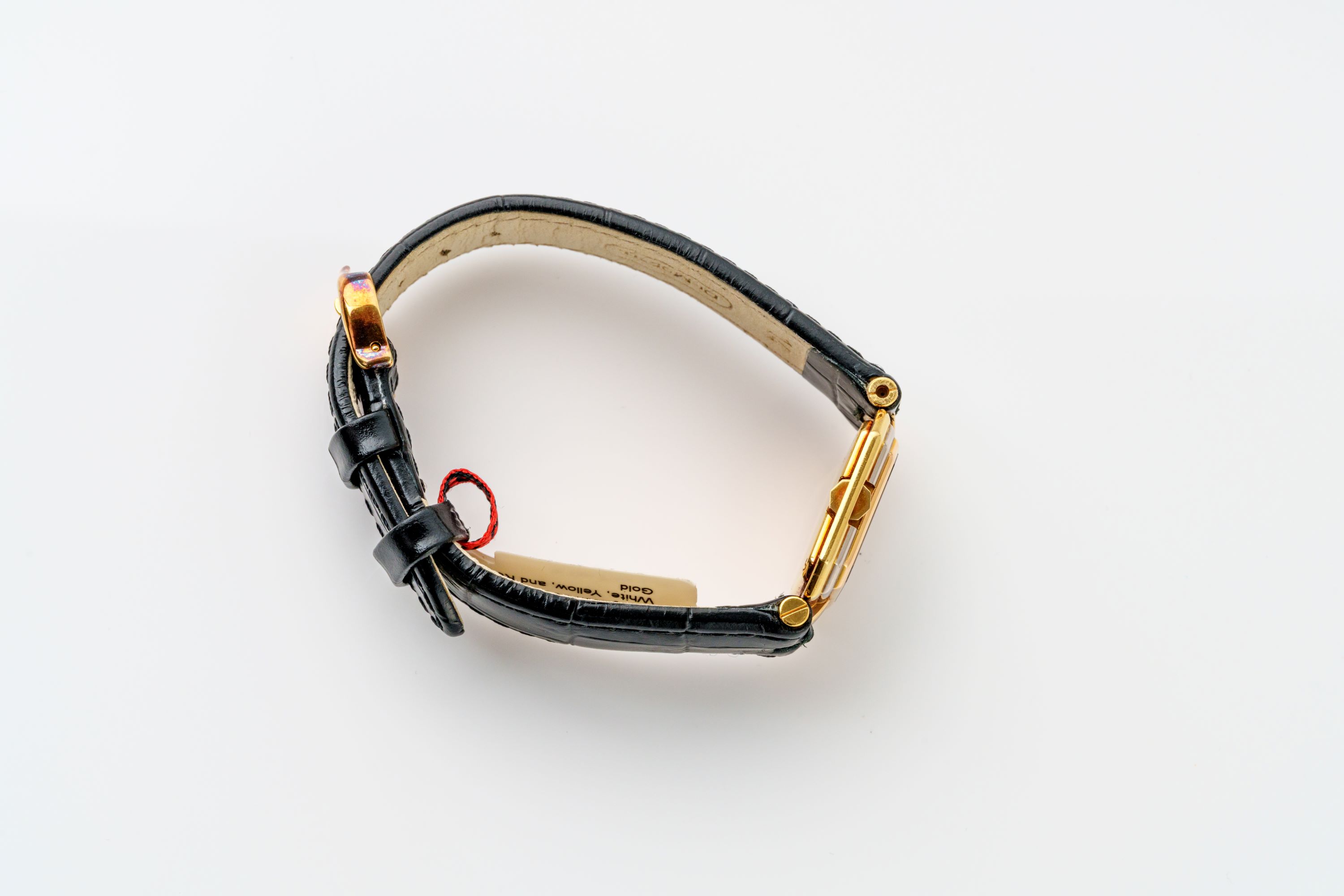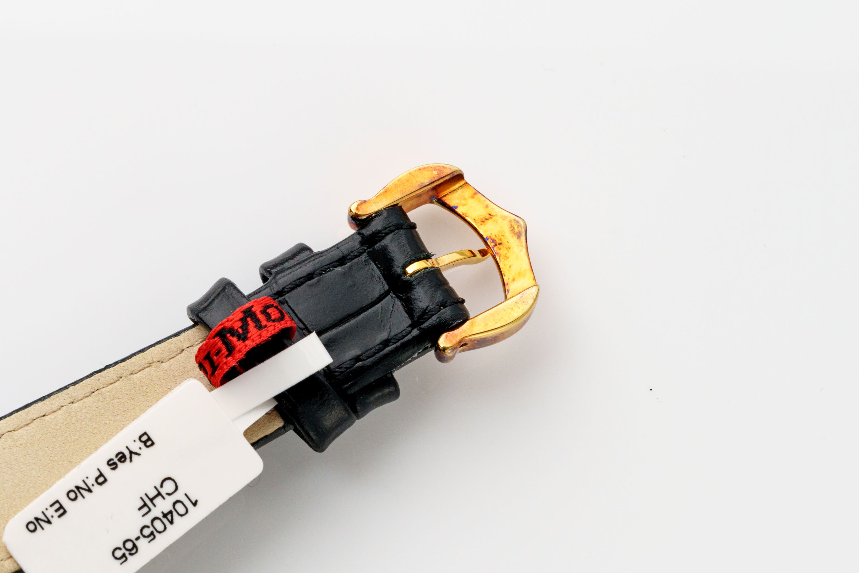 StrapBlack alligator embossed leather strap with gold-plated pin buckle