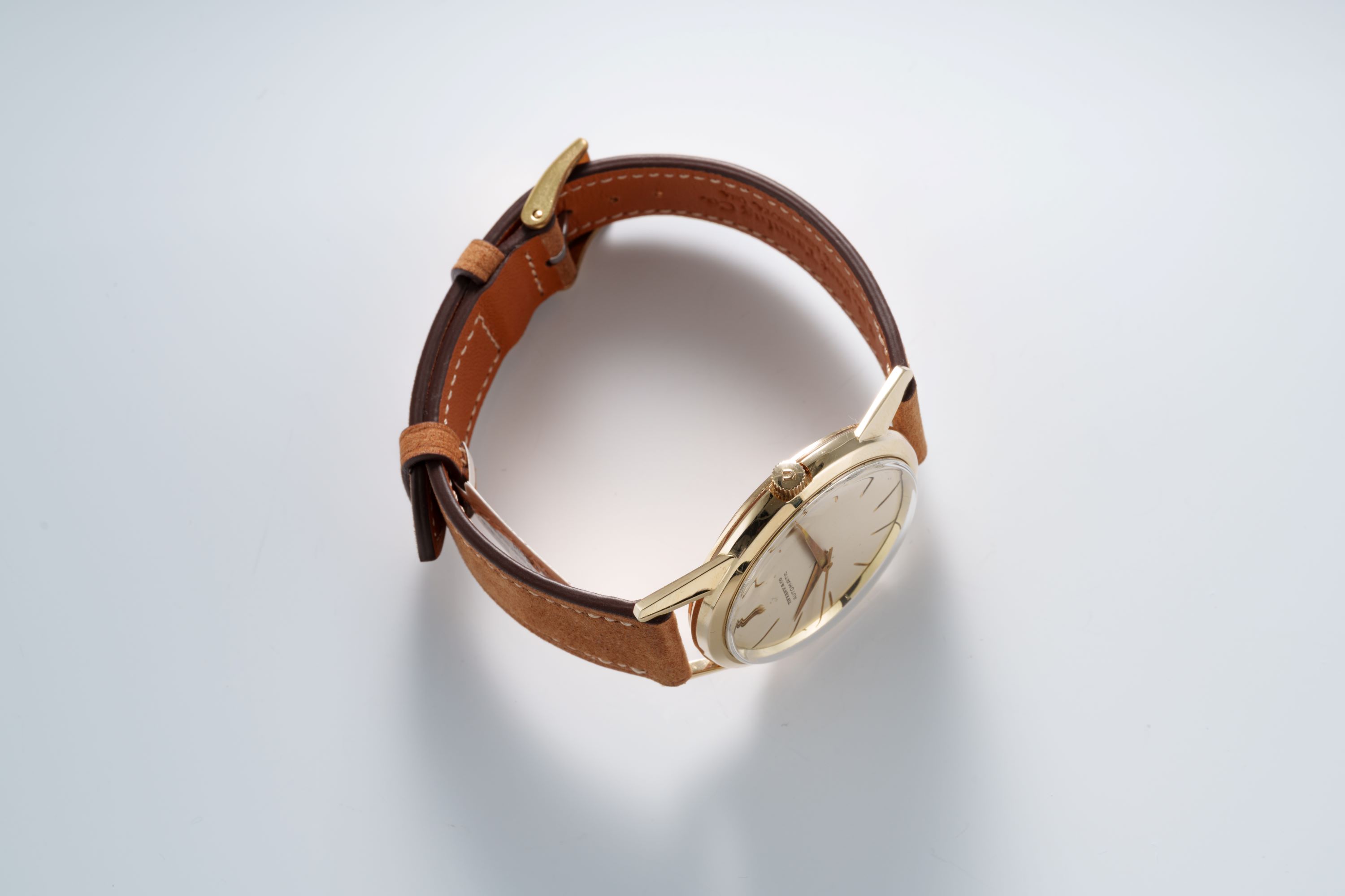 CaseRound case in 14k yellow gold with screw-down caseback, crown at 3 o'clock