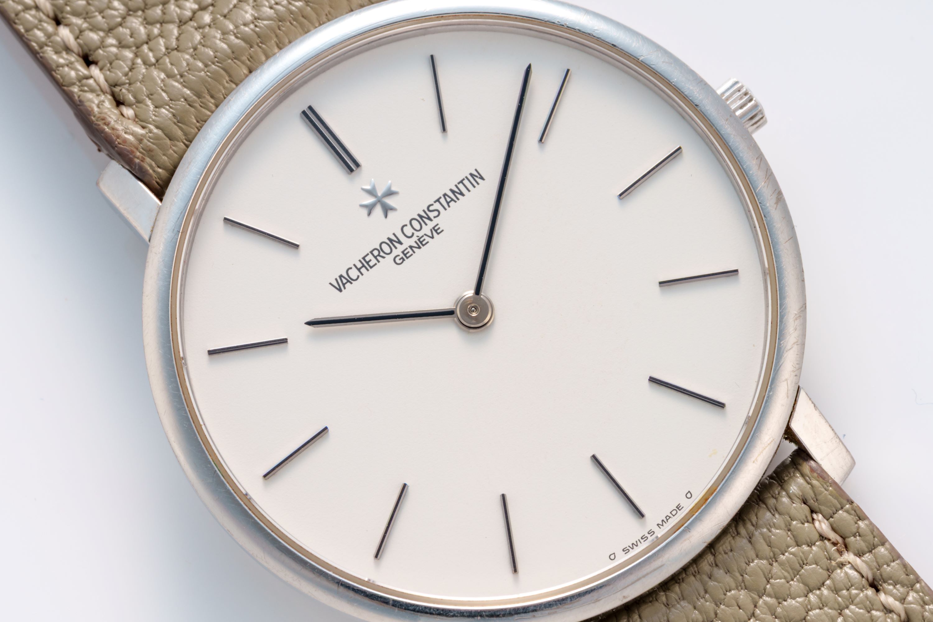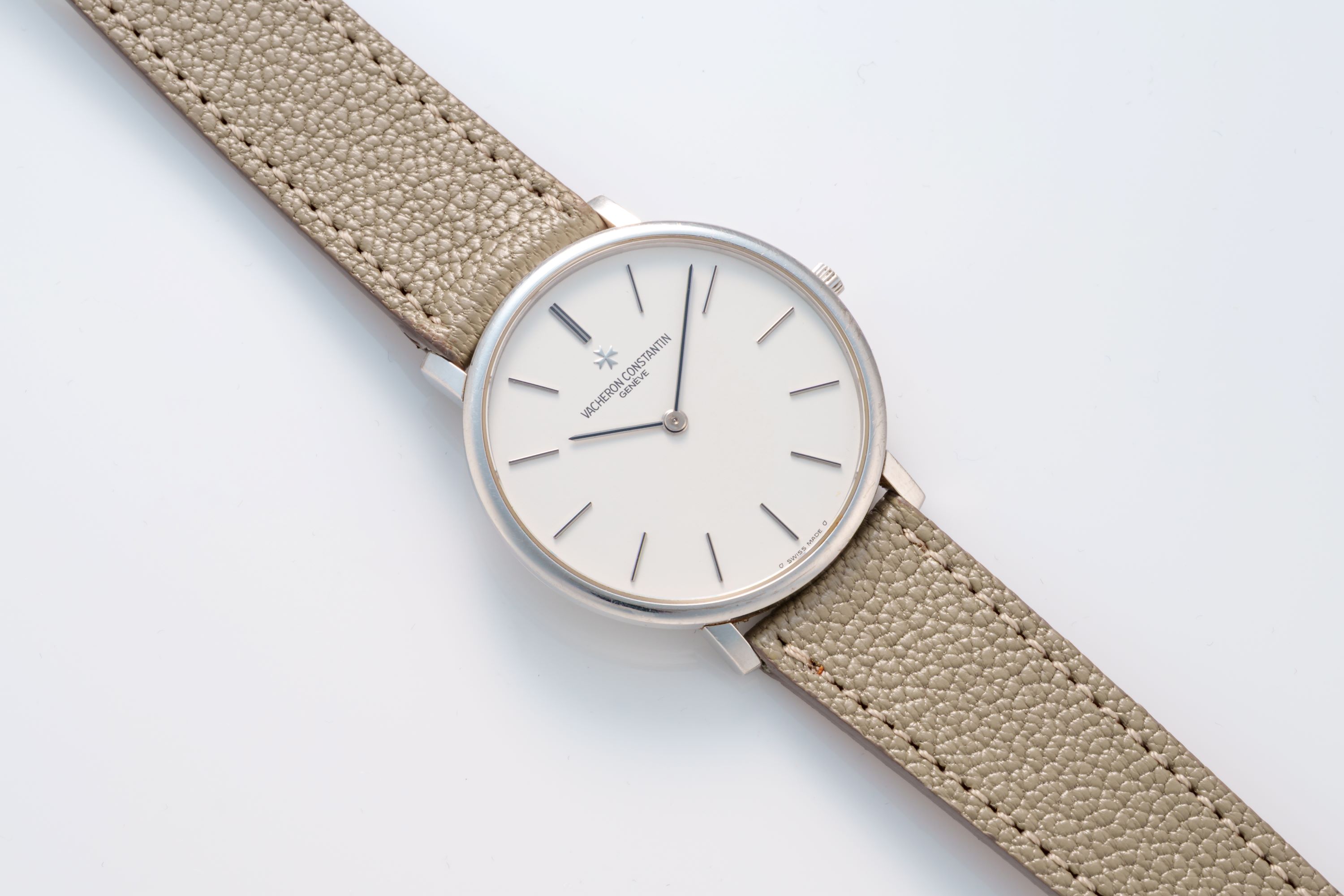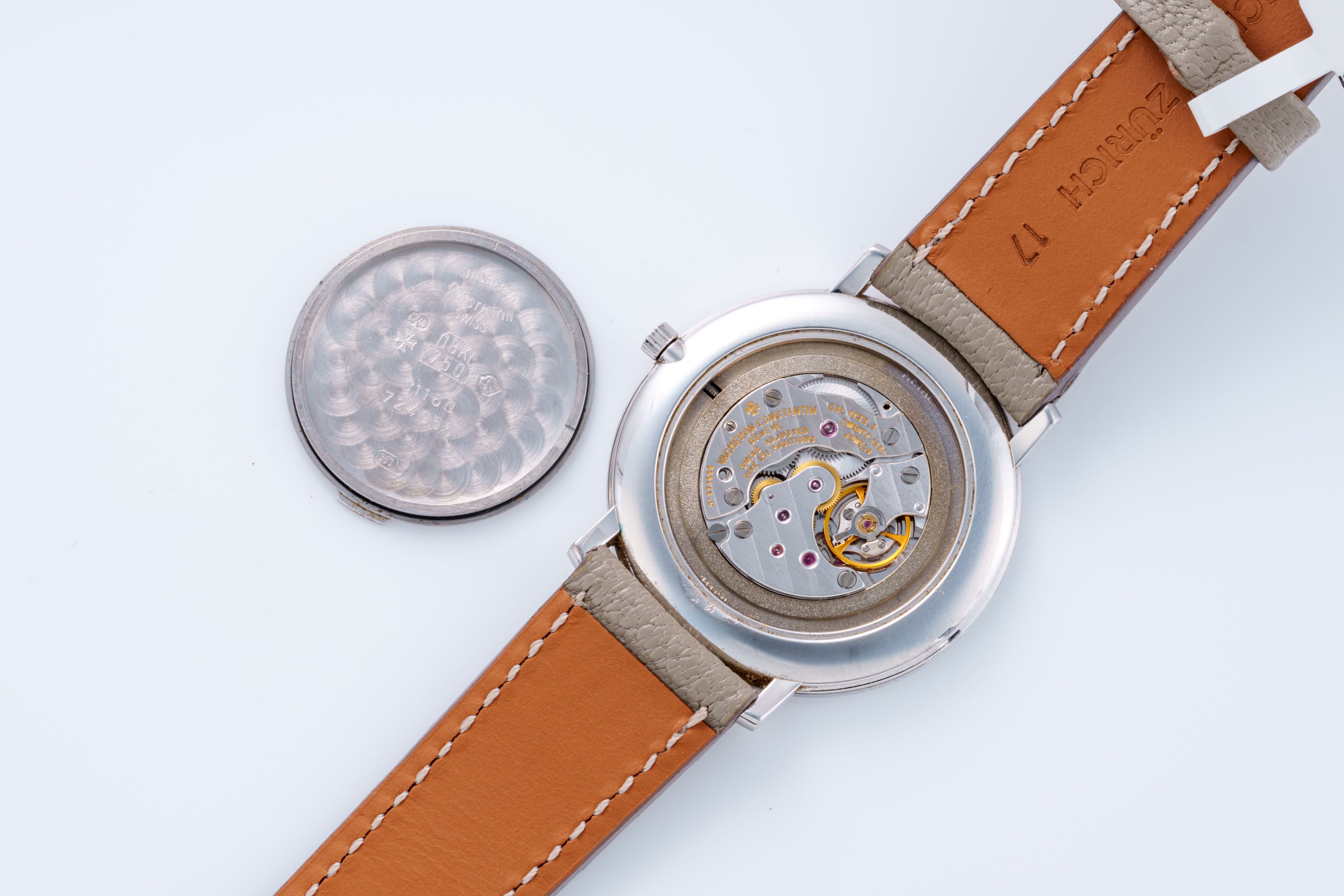 DialSilver-white dial with applied indices, black stick hands, signed 'Vacheron Constantin' at 12 o'clock