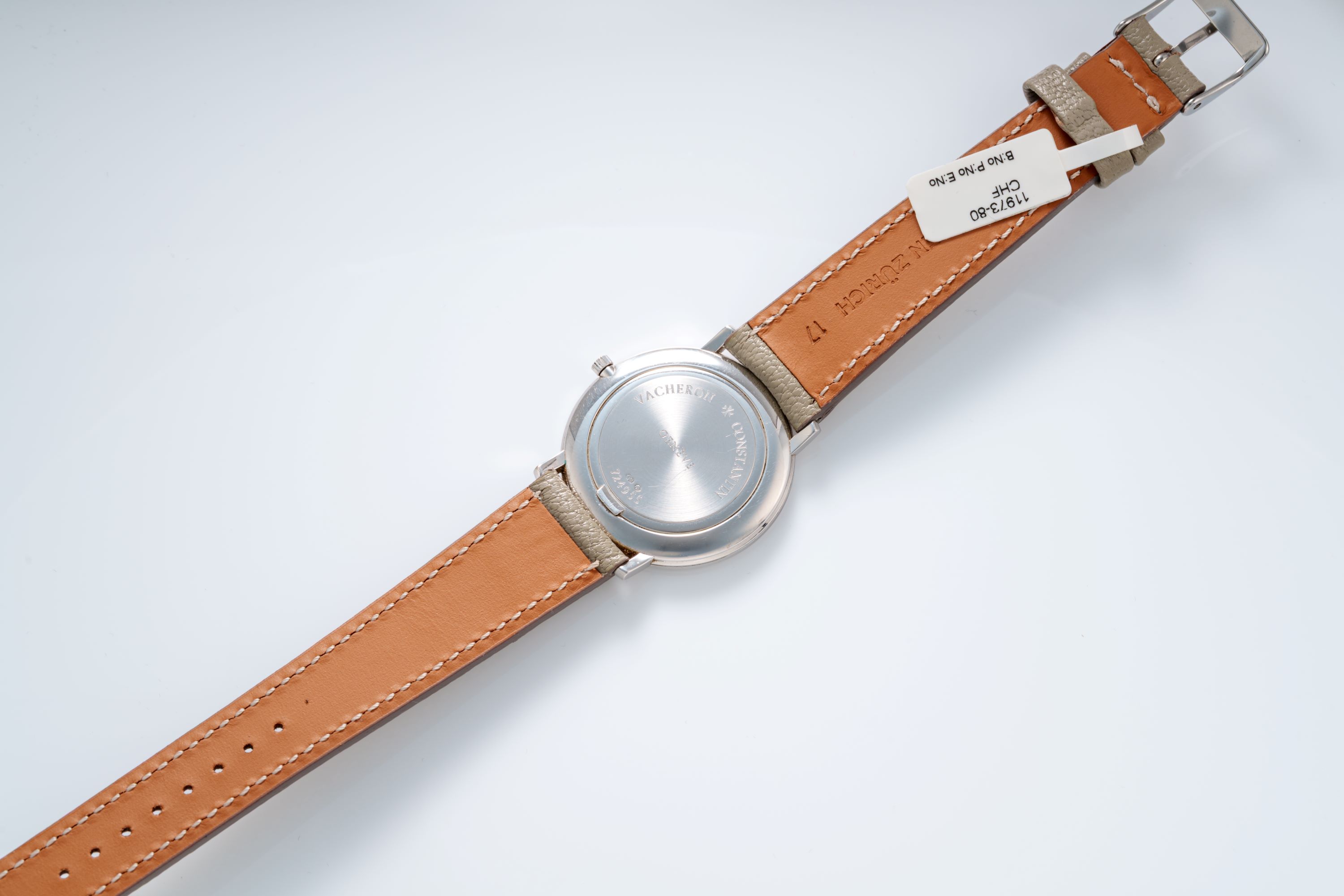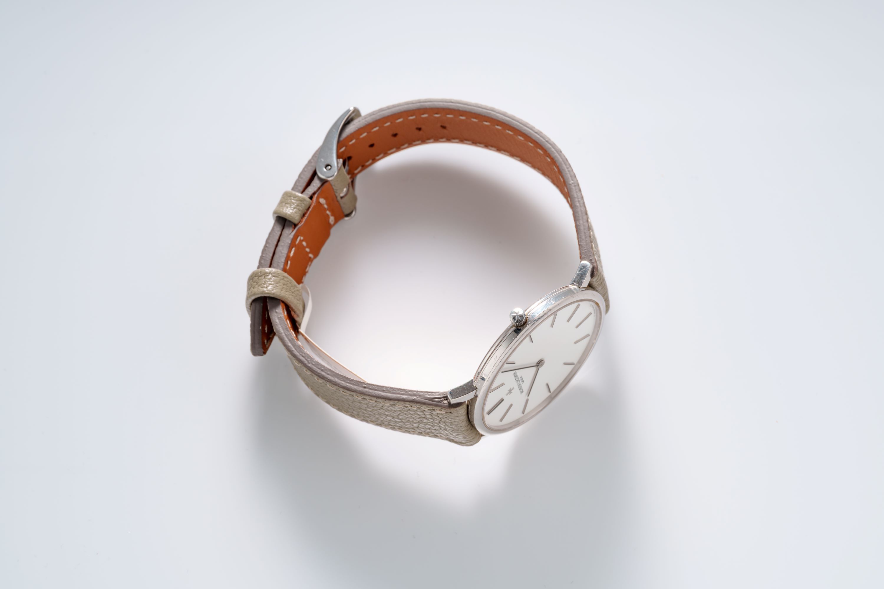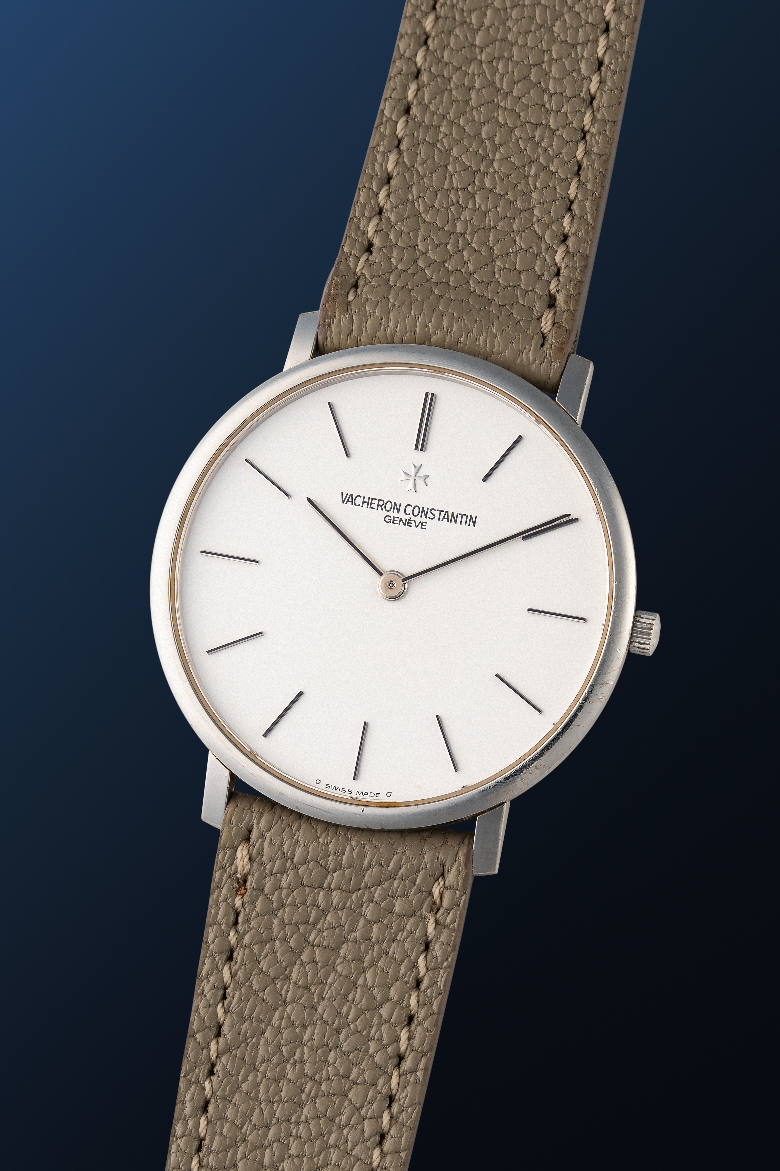 DialSilver-white dial with applied indices, black stick hands, signed 'Vacheron Constantin' at 12 o'clock