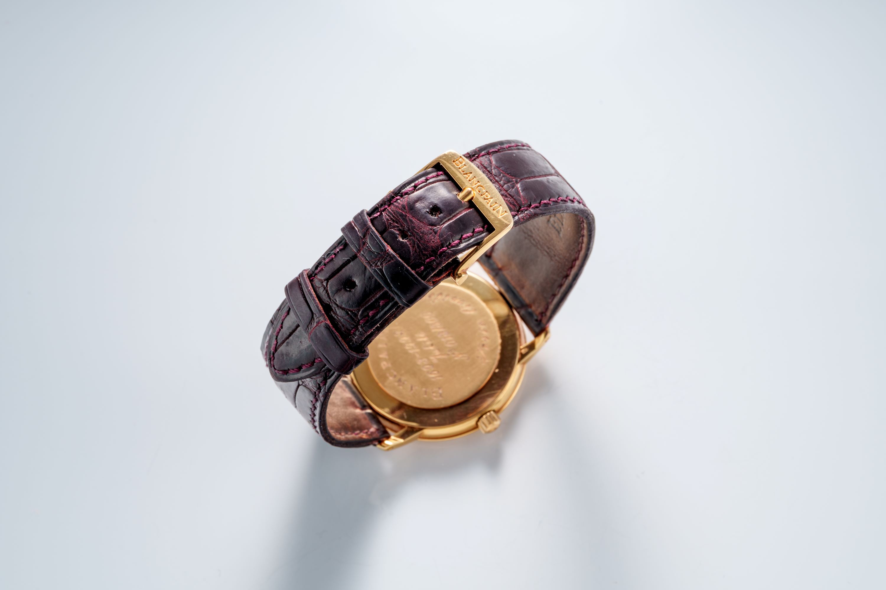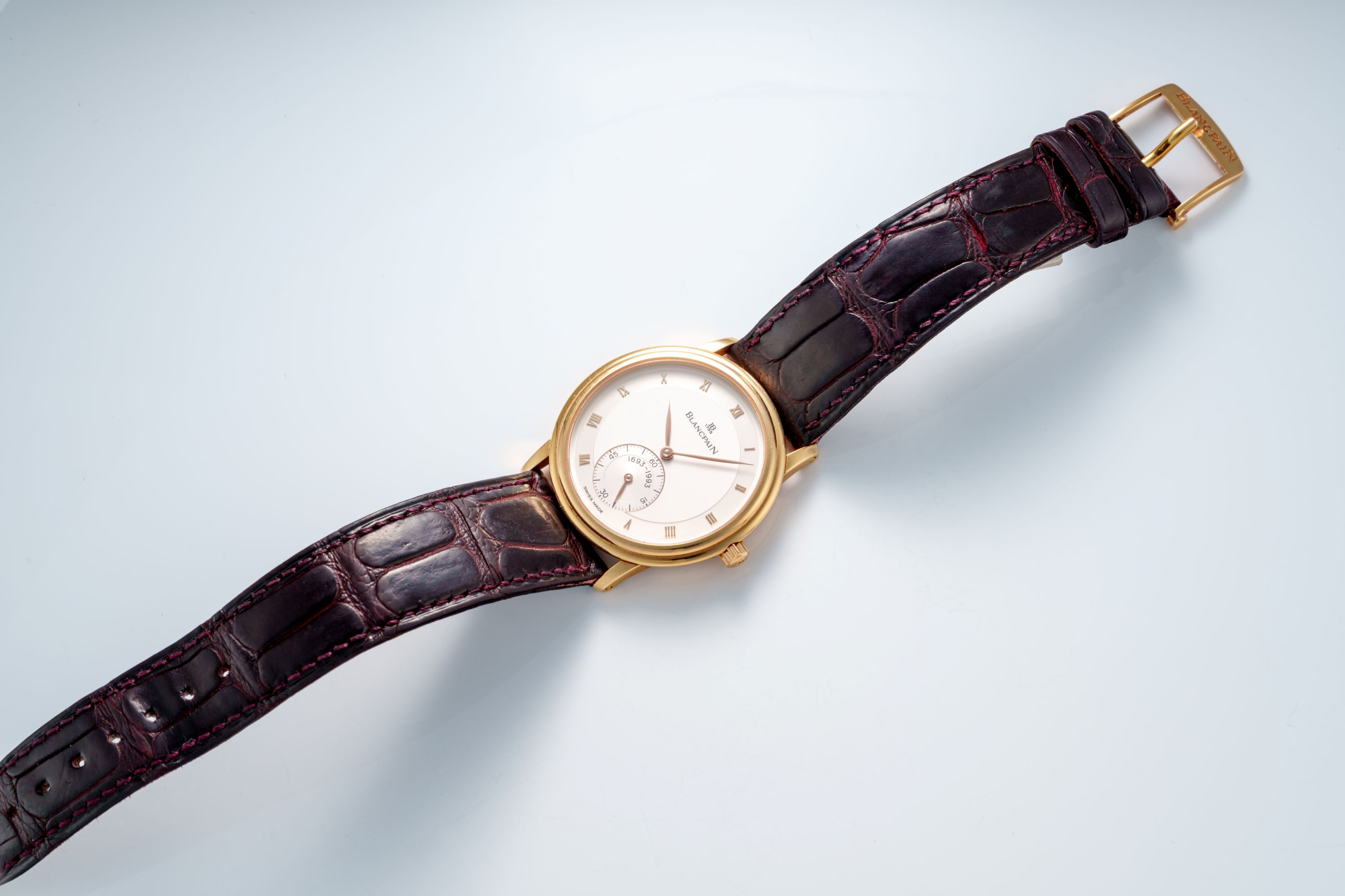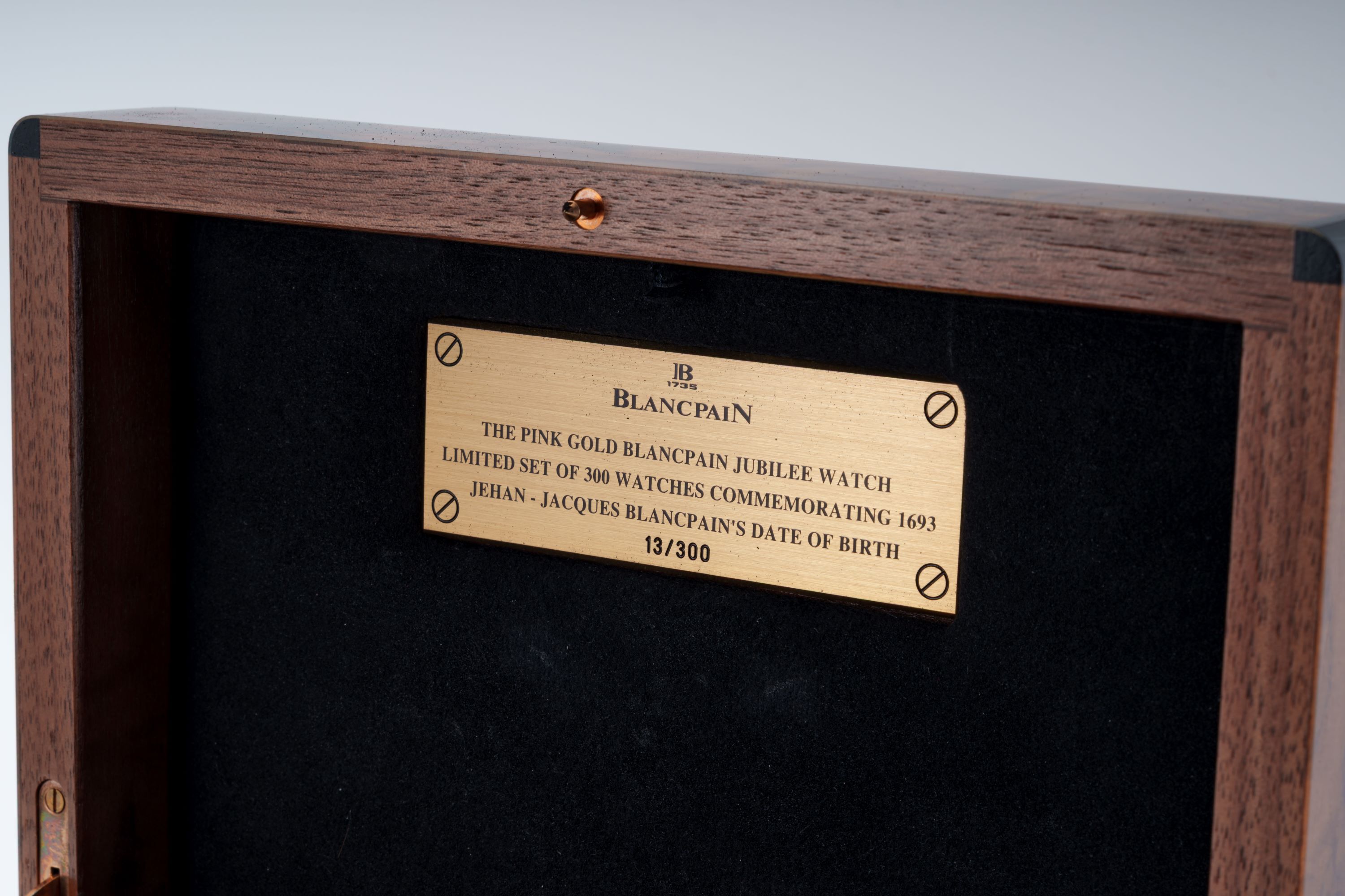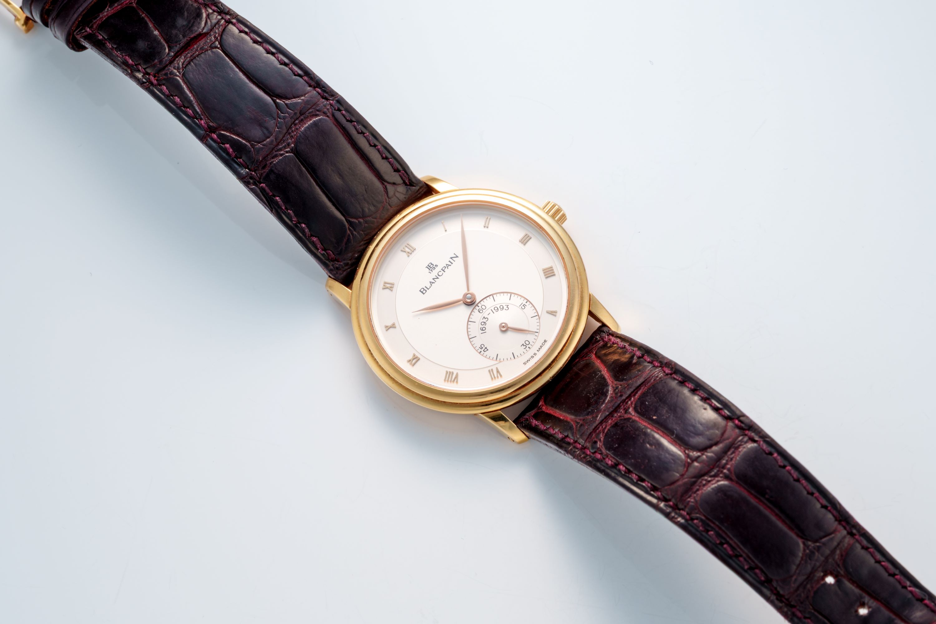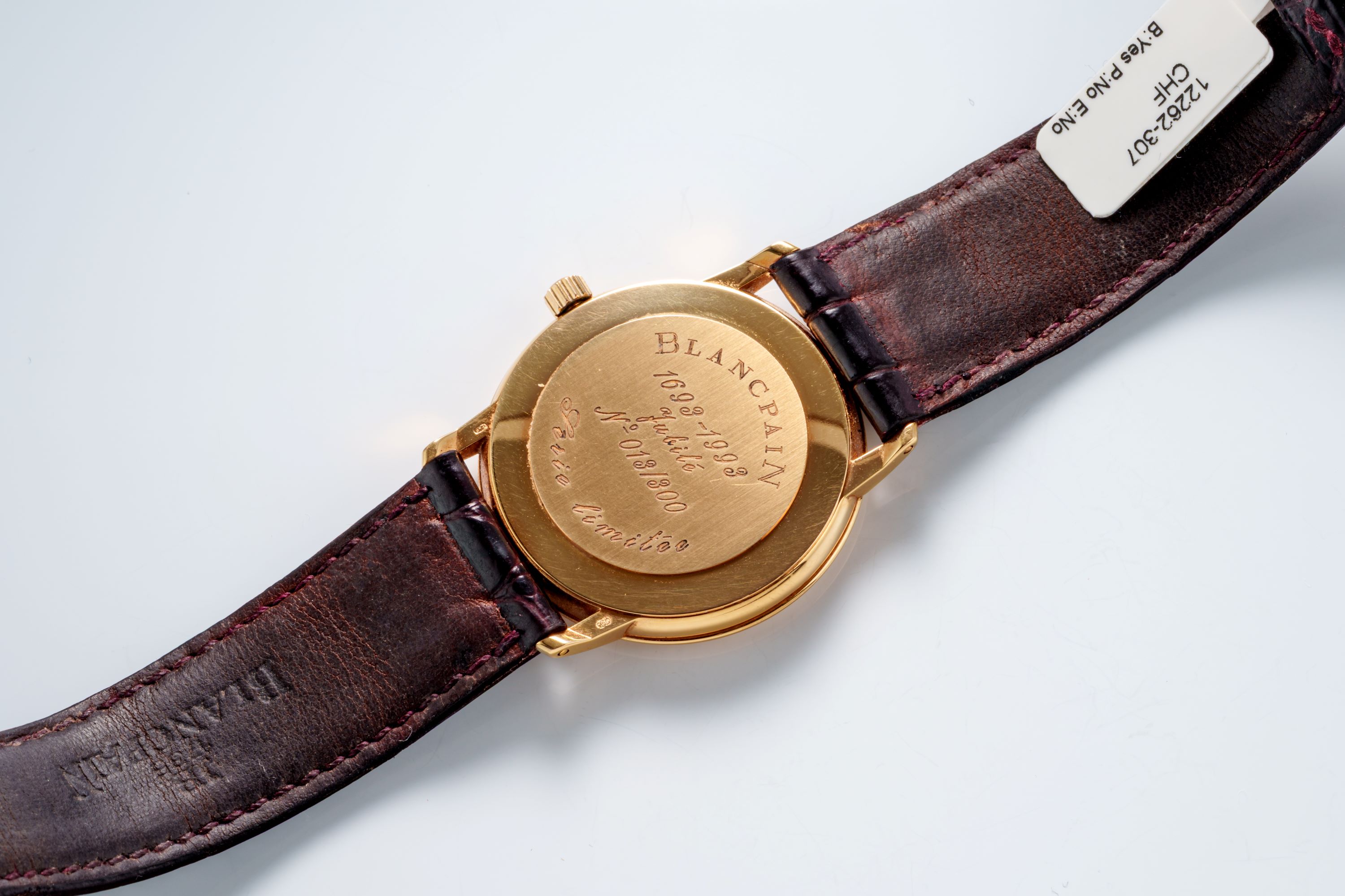 DialSilver dial with Roman numerals, leaf hands, small seconds at 6 o'clock, signed 'Blancpain' at 12 o'clock, '1693-1993' at 6 o'clock
