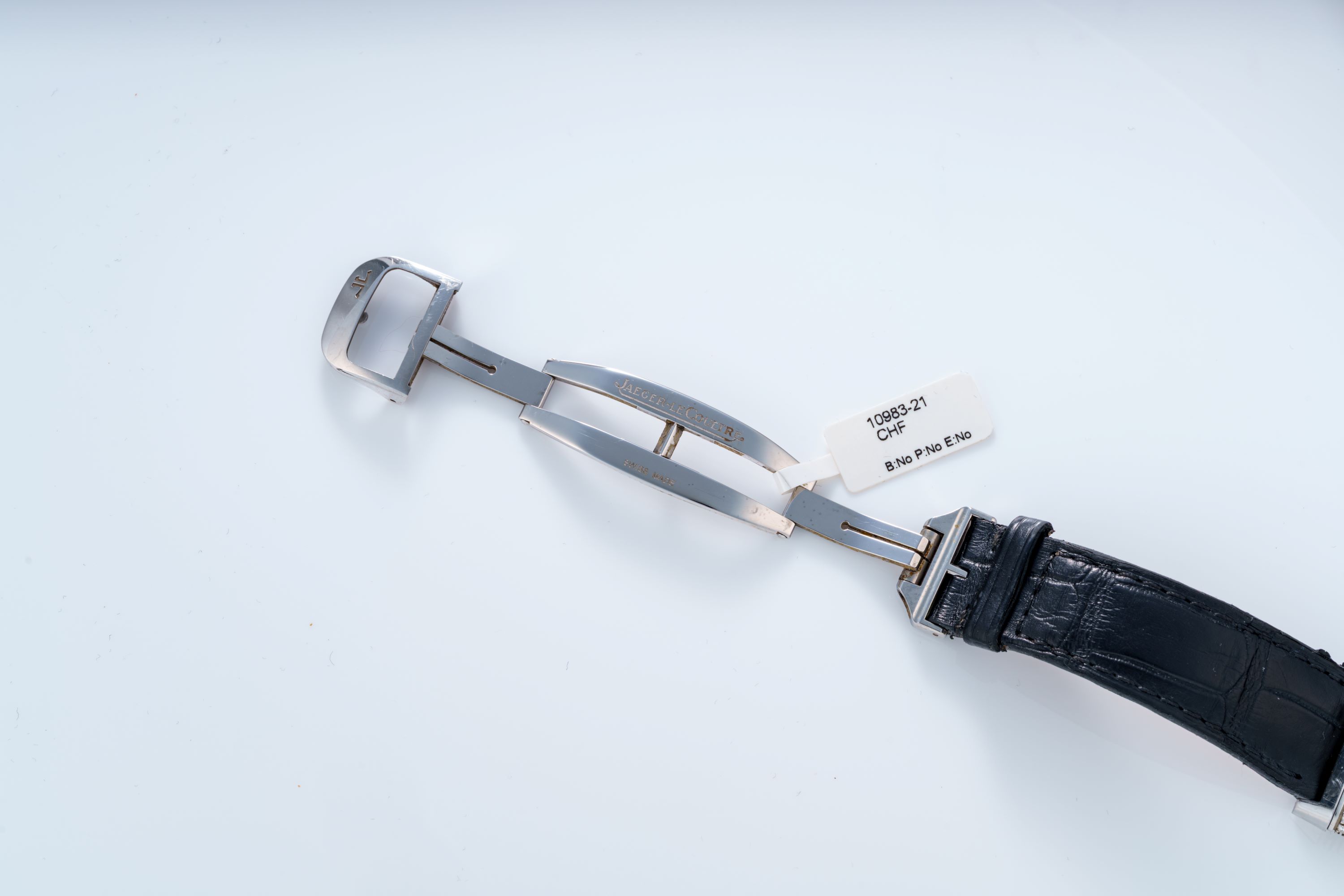 DialSilver guilloche dial with applied numerals, sword hands, signed 'Jaeger LeCoultre' at 12 o'clock