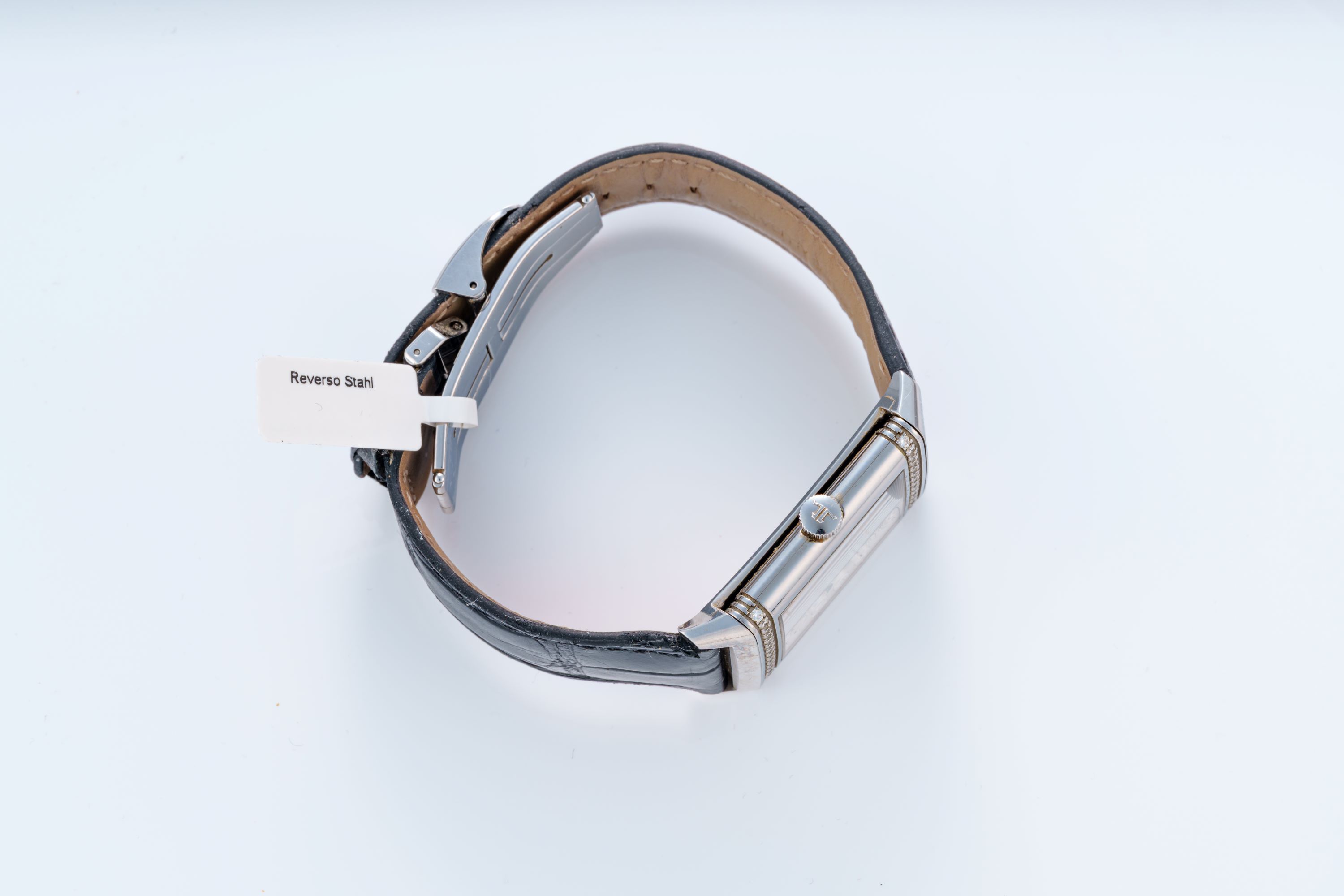 StrapBlack alligator leather strap with JLC butterfly deployant clasp in stainless steel