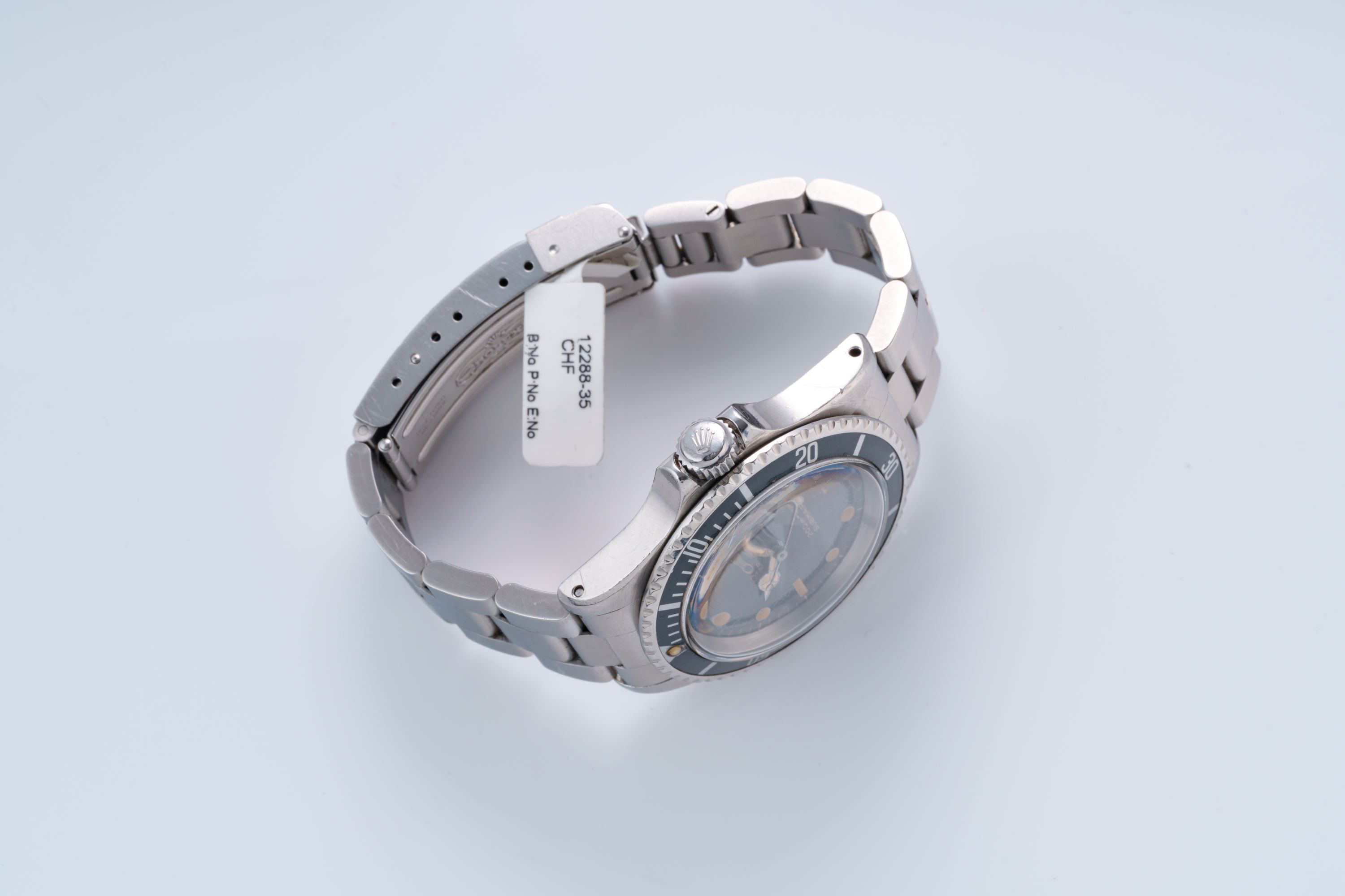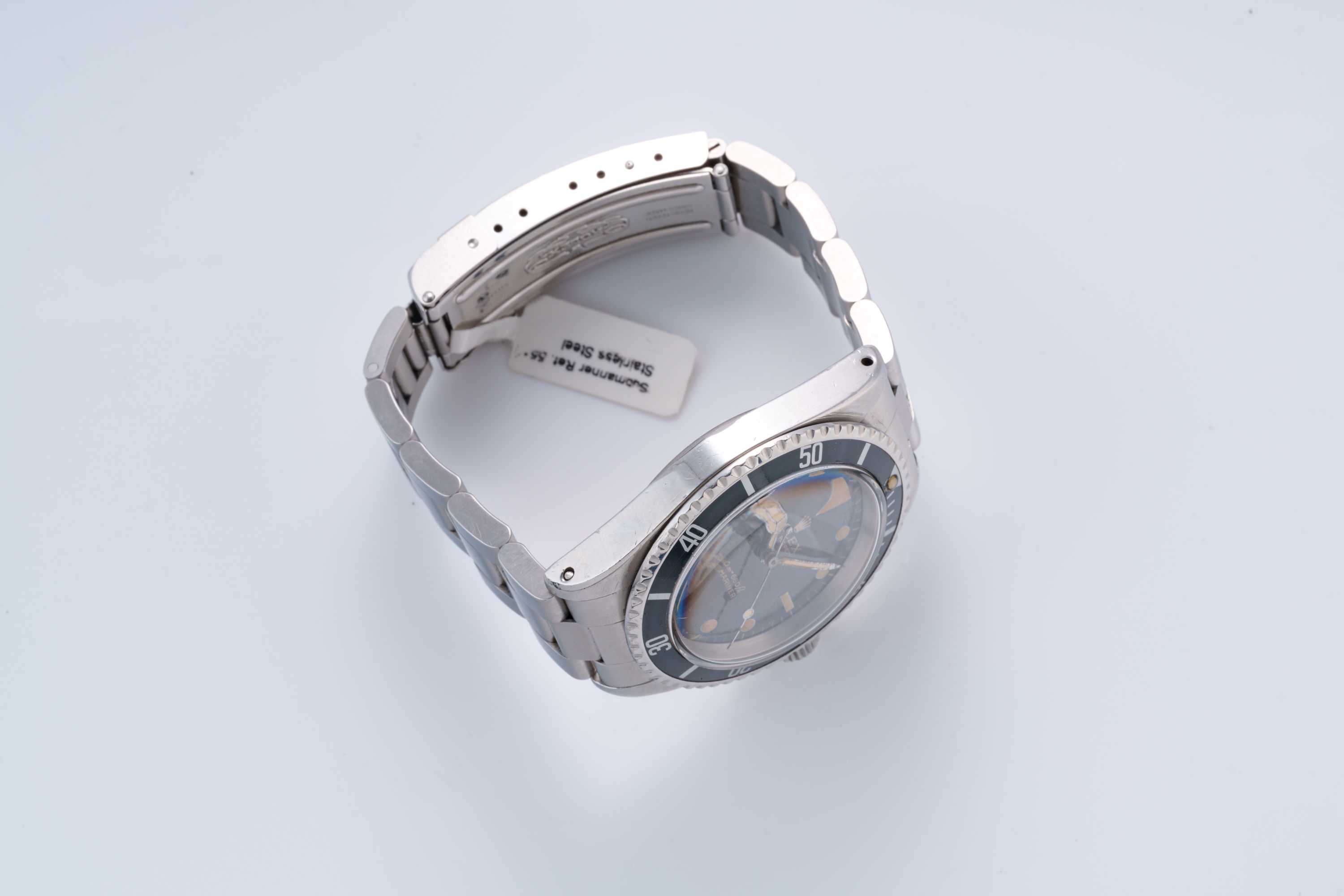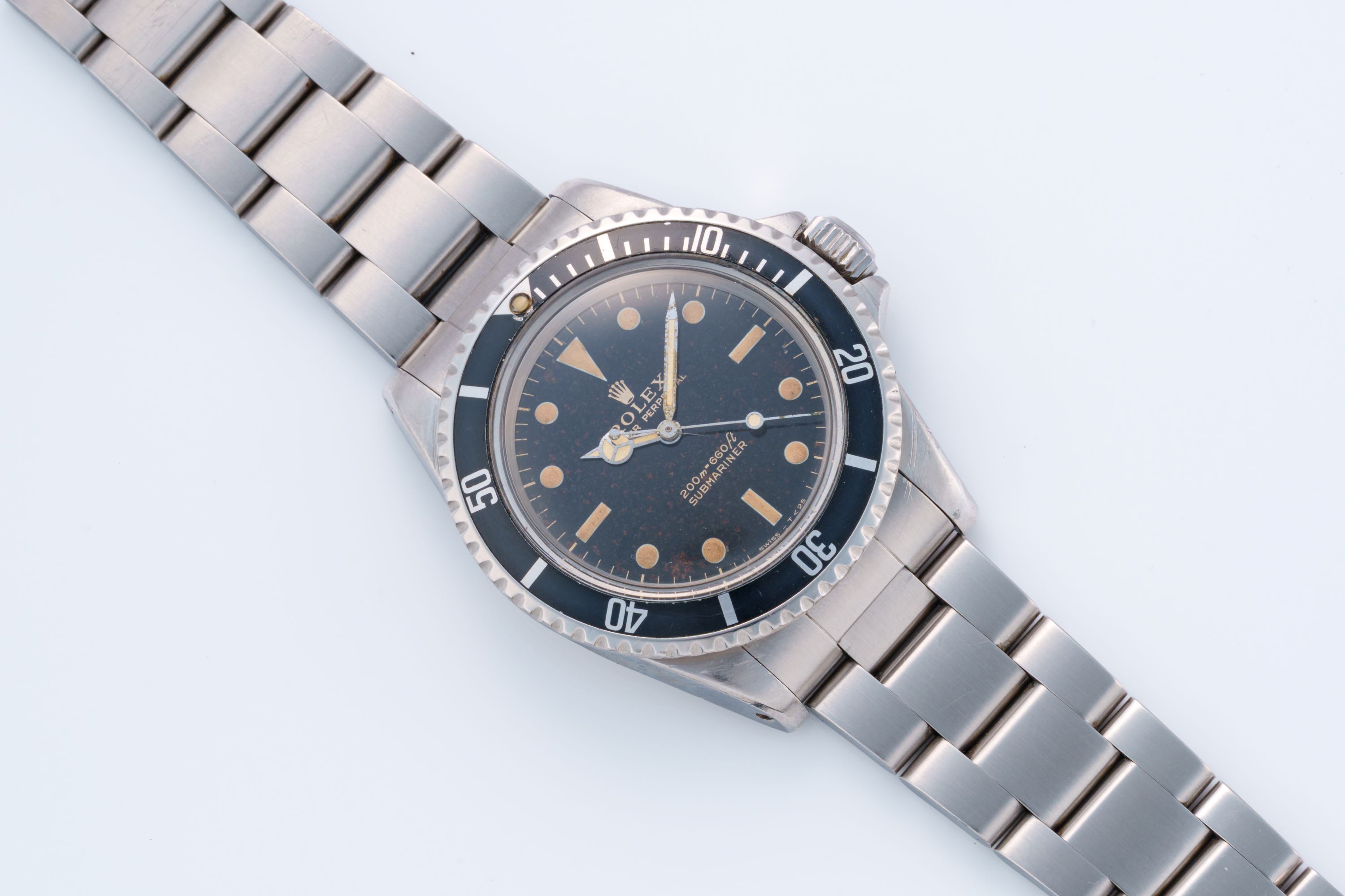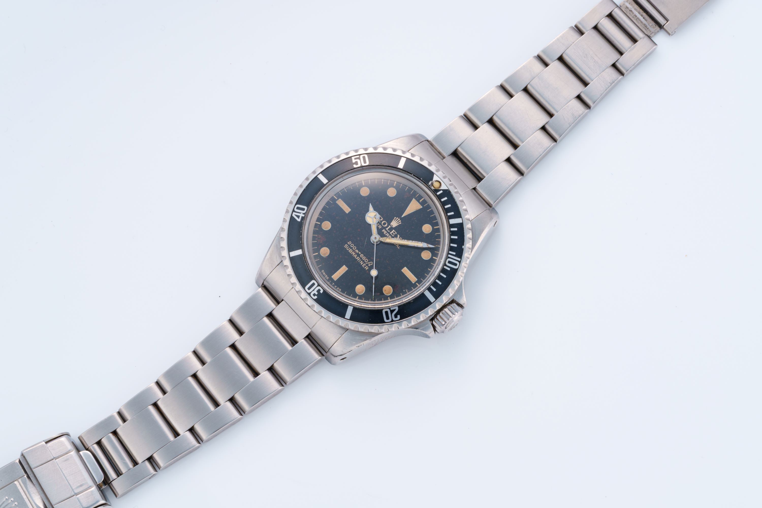 DialBlack dial with luminous indices, luminous mercedes hands, even patination on the dial, signed 'Rolex' at 12 o'clock