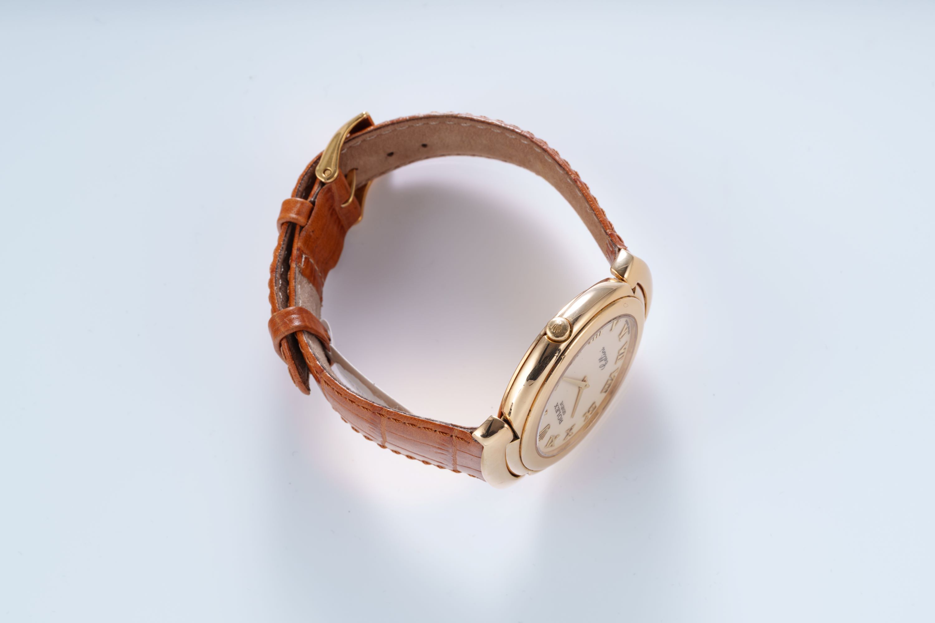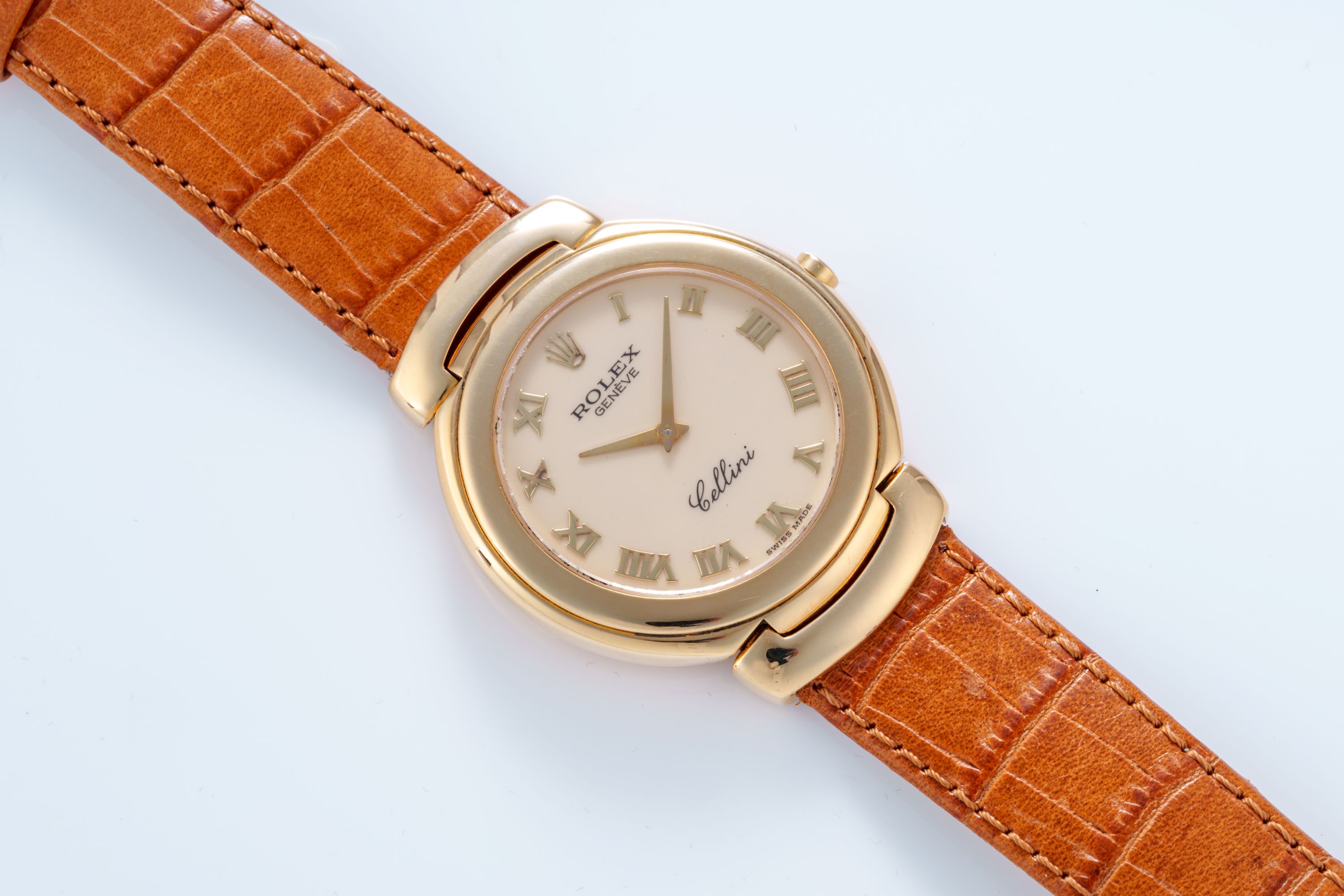 DialCream dial with applied Roman numerals, gold hands, signed 'Rolex' at 12 o'clock