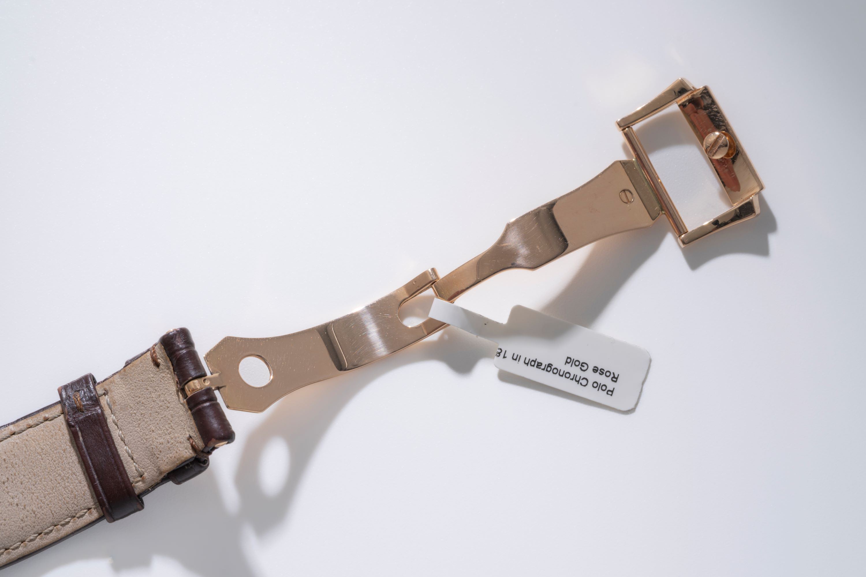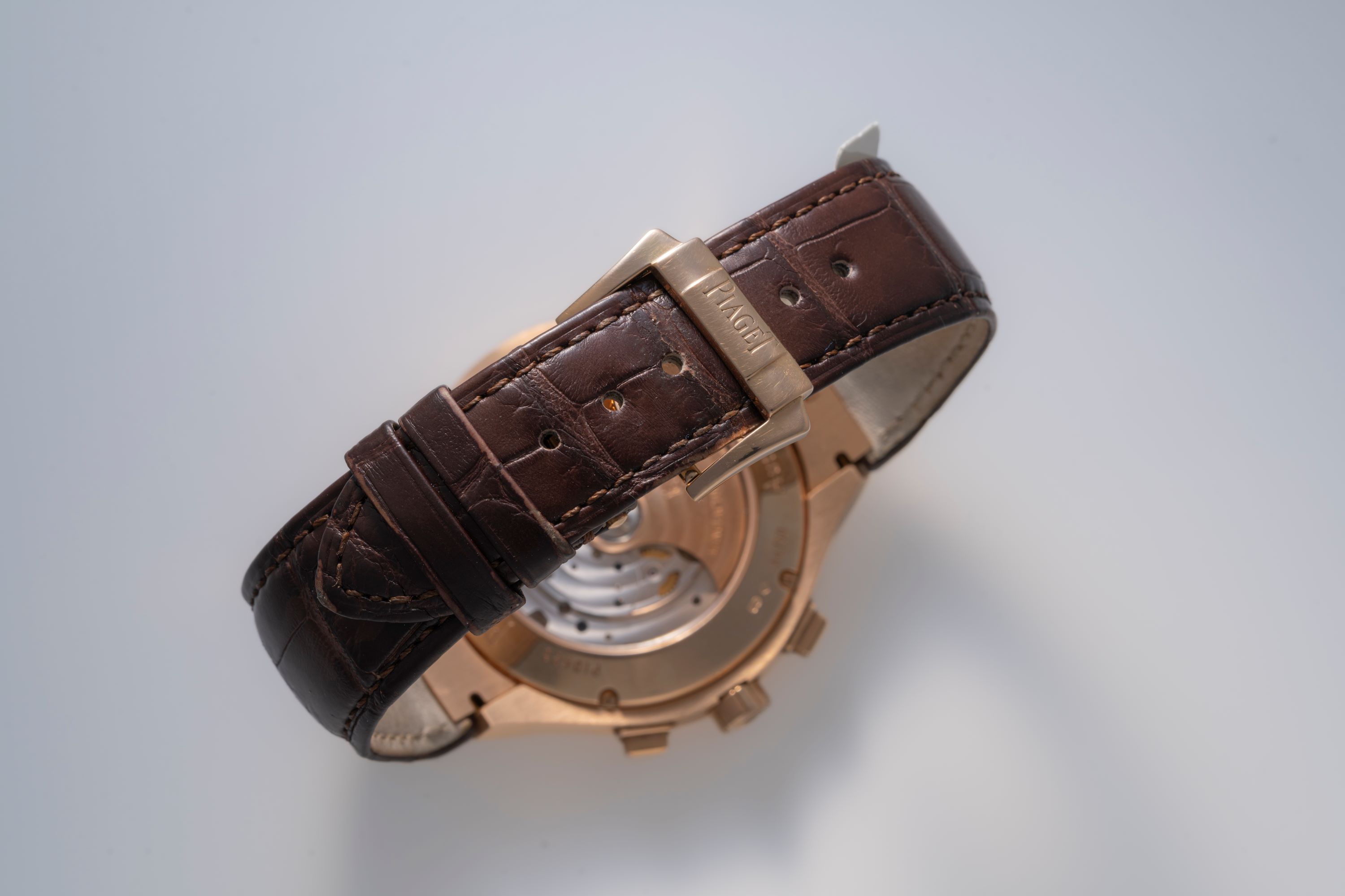 StrapBrown alligator leather strap with Piaget deployant clasp in 18k rose gold