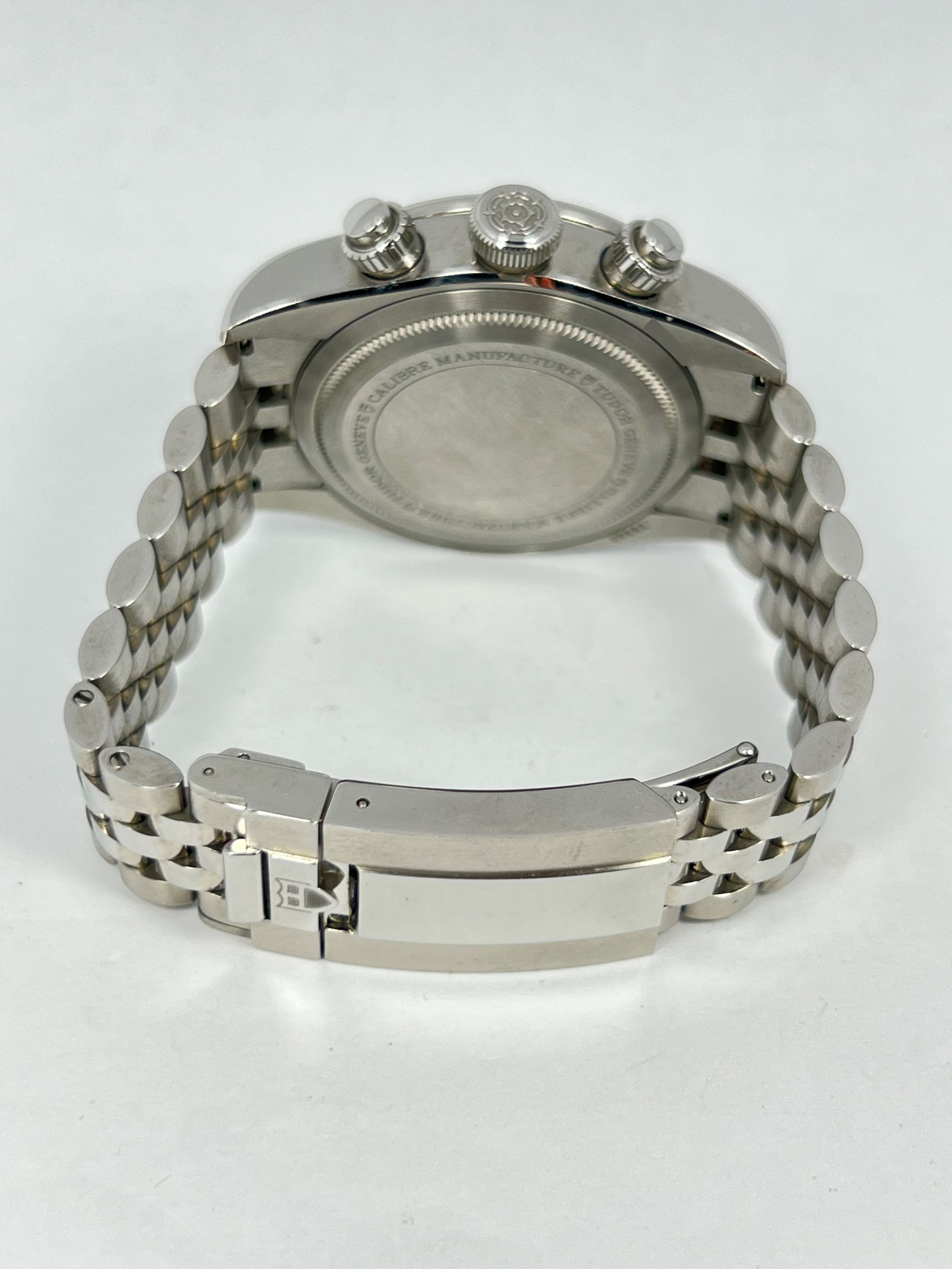 MovementSelf-winding mechanical movement, column-wheel operated chronograph mechanism with vertical clutch, functions: hours, minutes, seconds, date, chronograph with central seconds and 45-minute counters, officially certified COSC chronometer
