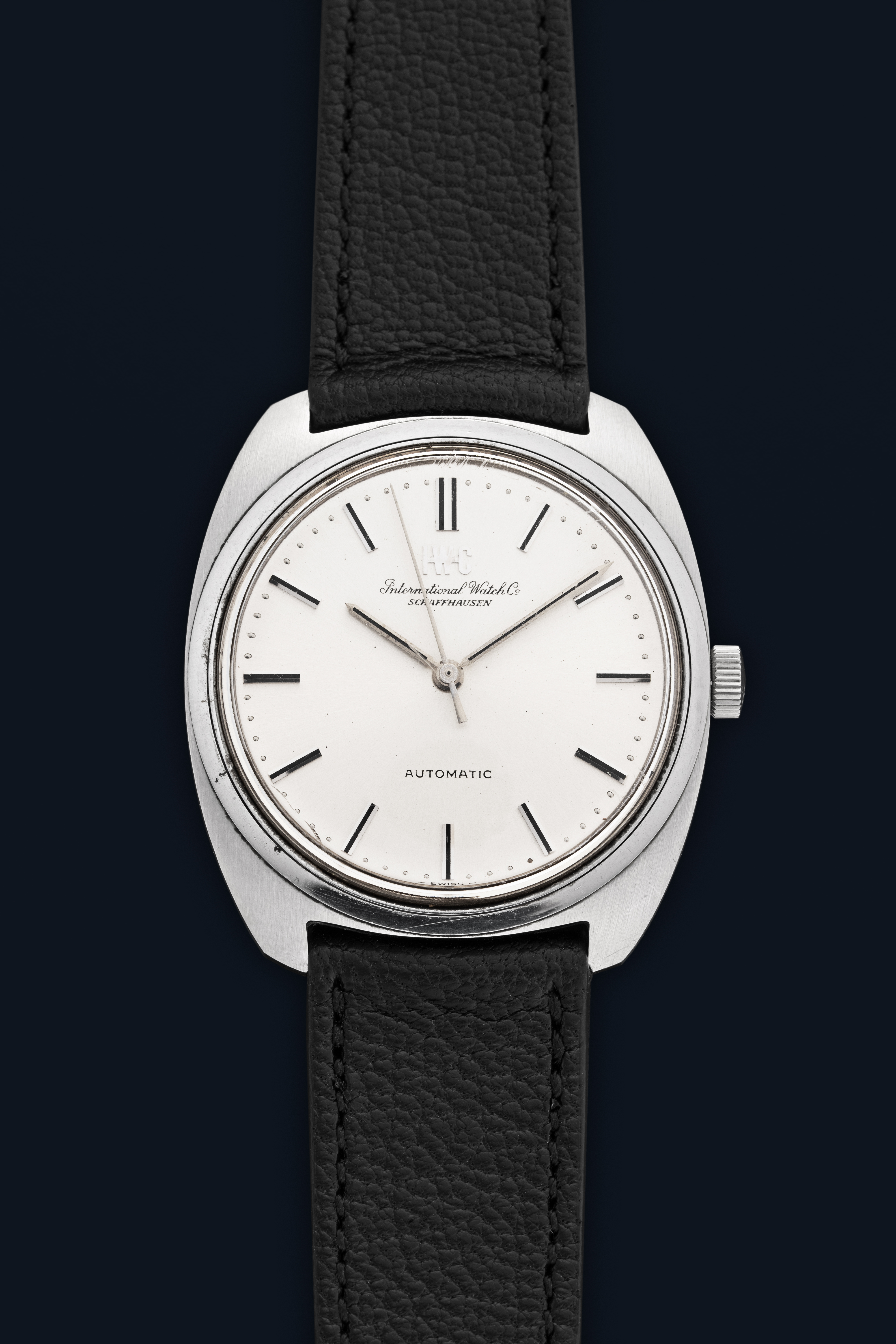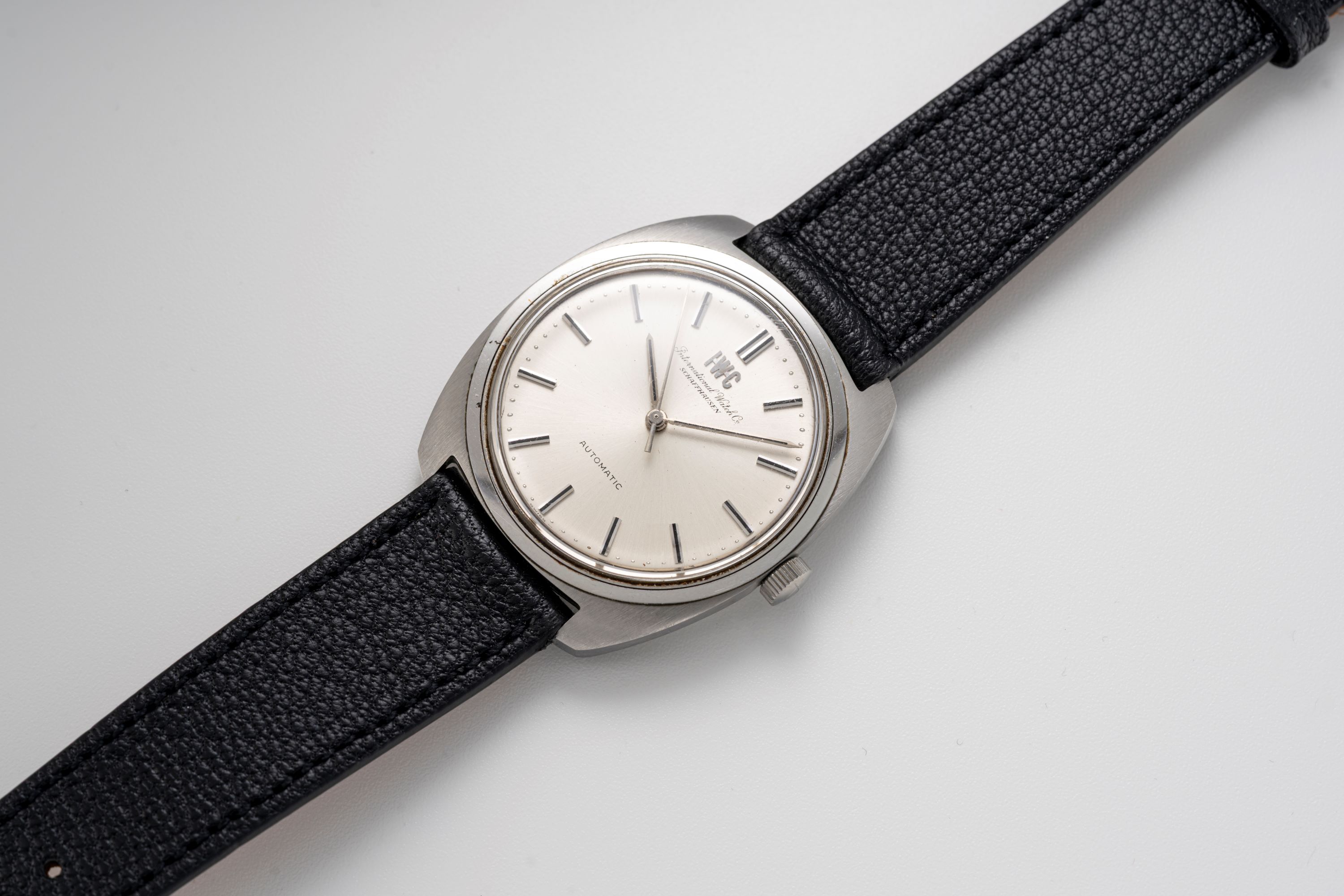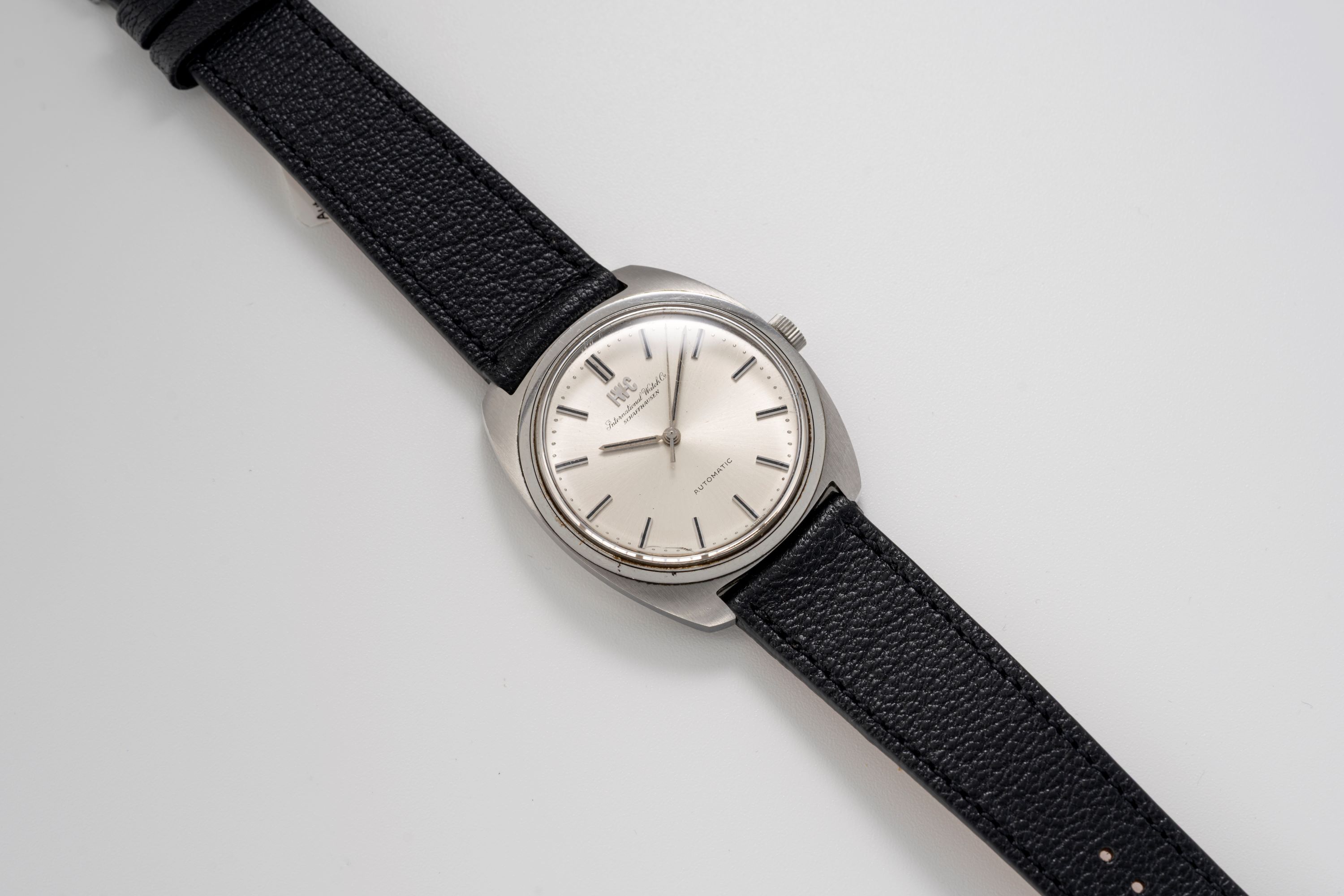 DialSilver sunburst dial with applied indices with black inlays, central seconds, applied IWC logo and signed 'International Watch Co. Schaffhausen' at 12 o'clock