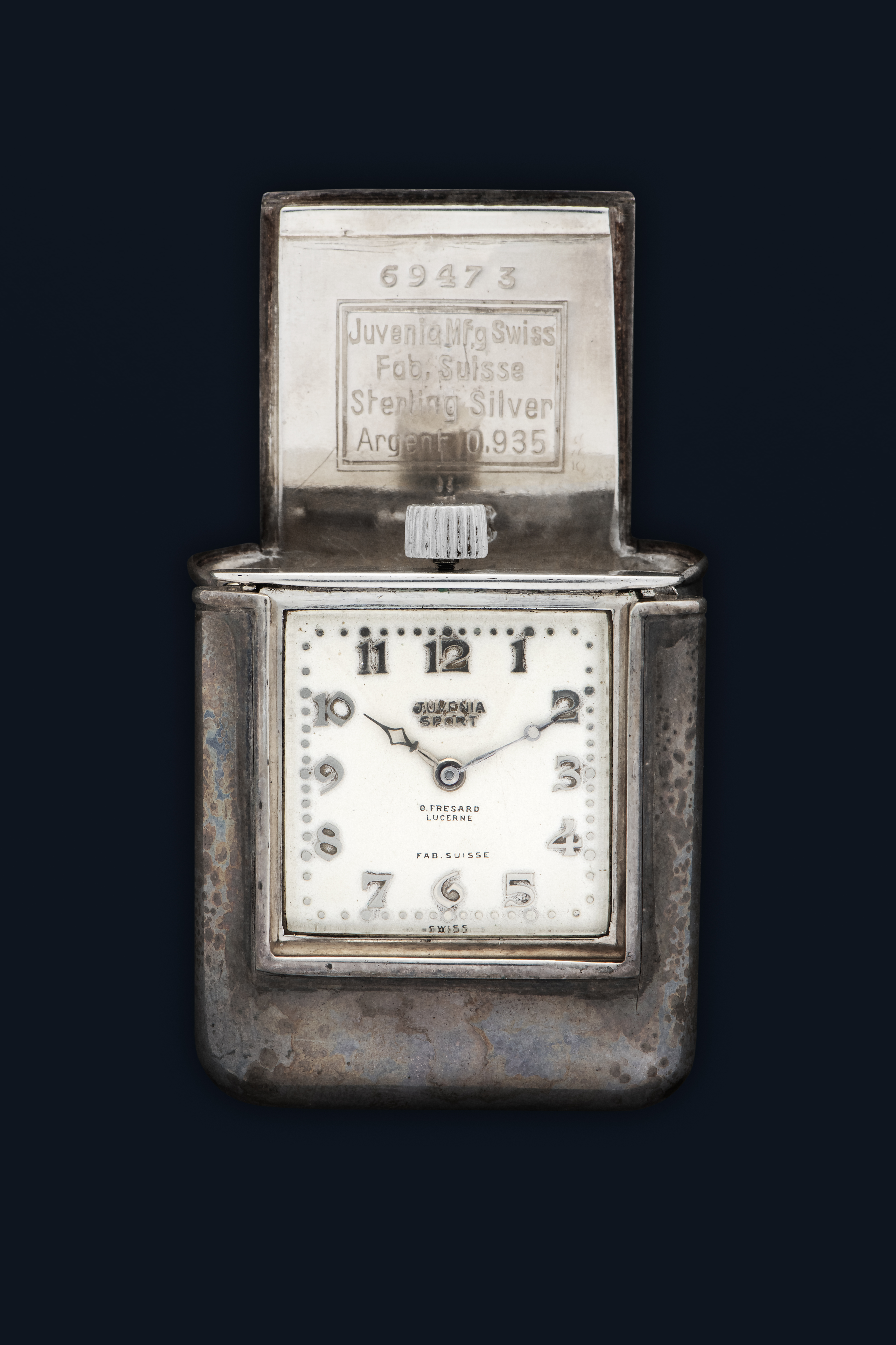 DialSilver-cream dial with applied numerals, ornate hands, signed 'Juvenia' at 12 o'clock